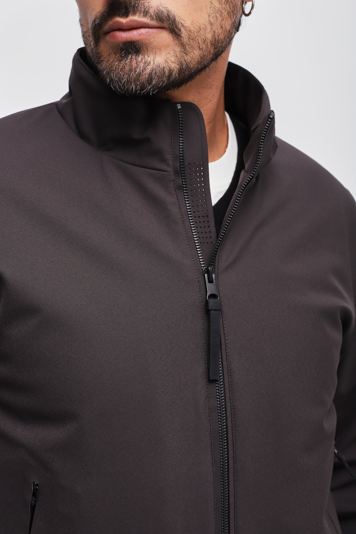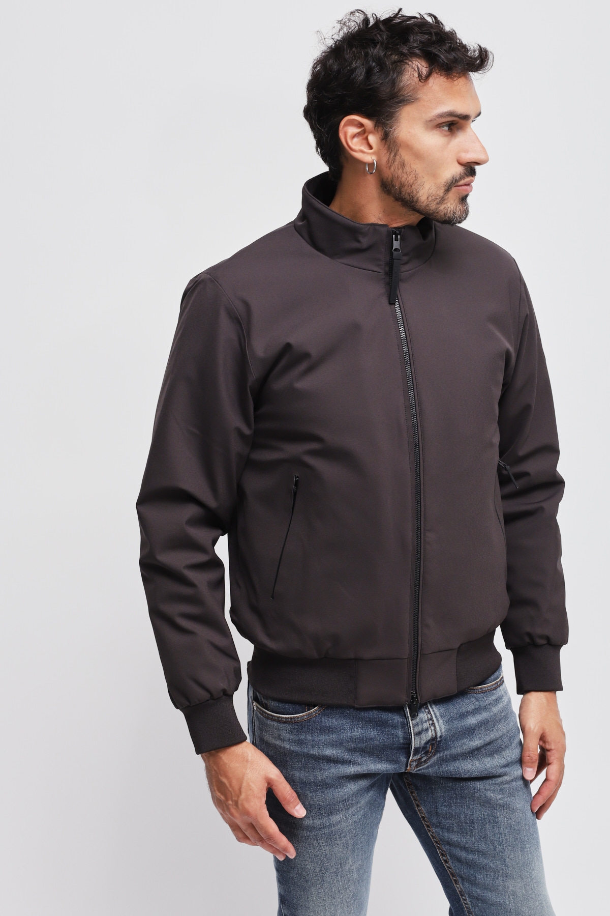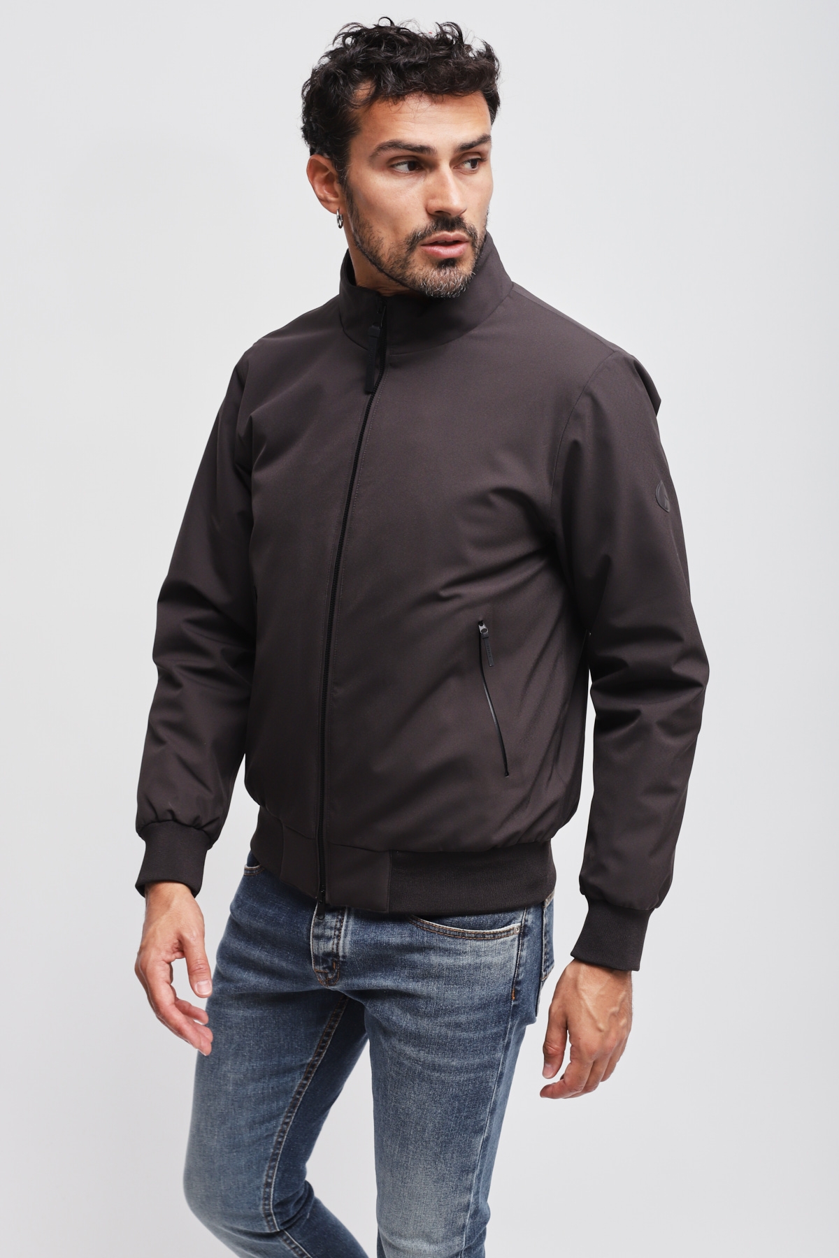 Giubbotto People of Shibuya in jersey stretch marrone scuro. Tessuto idrorepellente. Collo alto. Tasche con zip. Tasca interna. Chiusura con zip doppio cursore. Polsi e fondo in maglia a nido d'ape. Sfoderato.