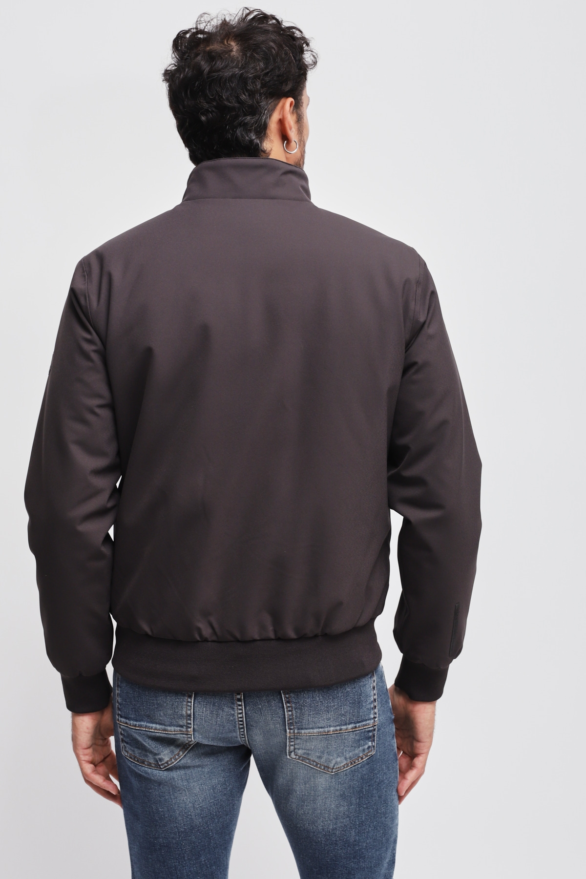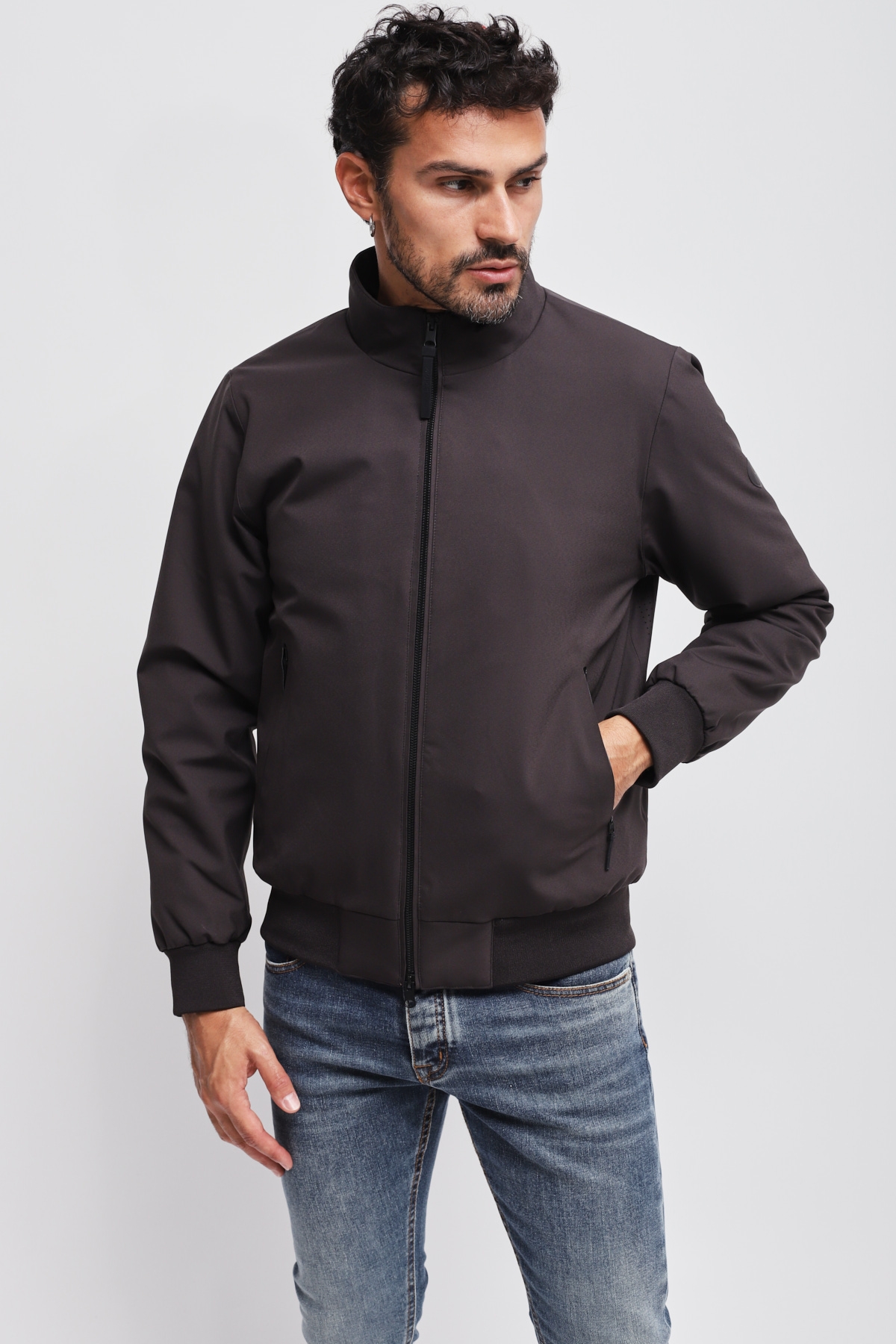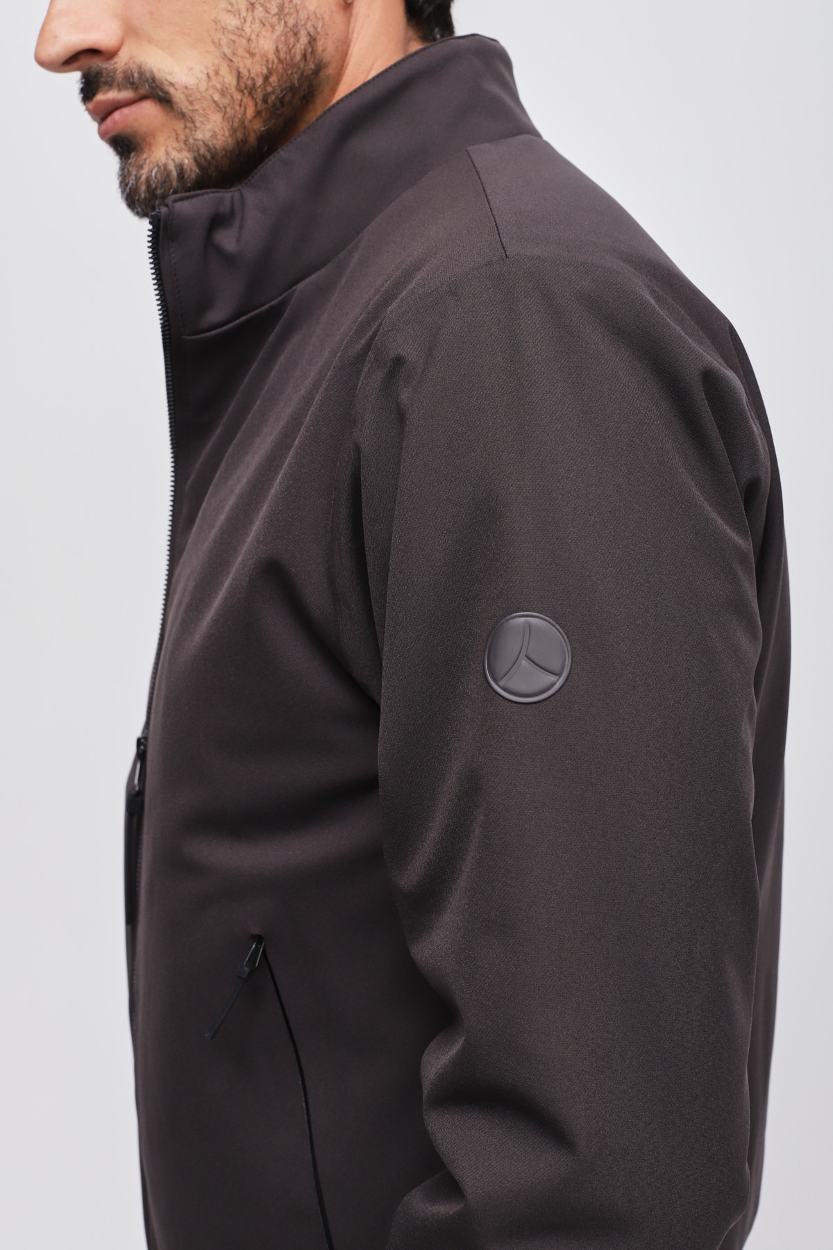 Giubbotto People of Shibuya in jersey stretch marrone scuro. Tessuto idrorepellente. Collo alto. Tasche con zip. Tasca interna. Chiusura con zip doppio cursore. Polsi e fondo in maglia a nido d'ape. Sfoderato.