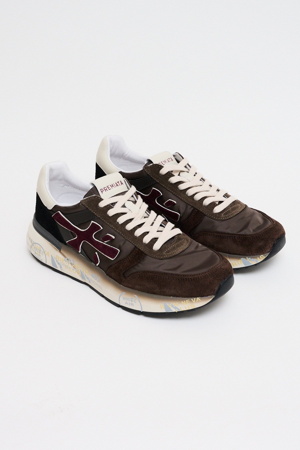 Sneakers Mick realizzate con un mix di materiali e pelli di qualità. La scarpa è realizzata nella tonalità del marrone per uno stile casual. L'iconica silhouette è impreziosita dal logo Premiata.