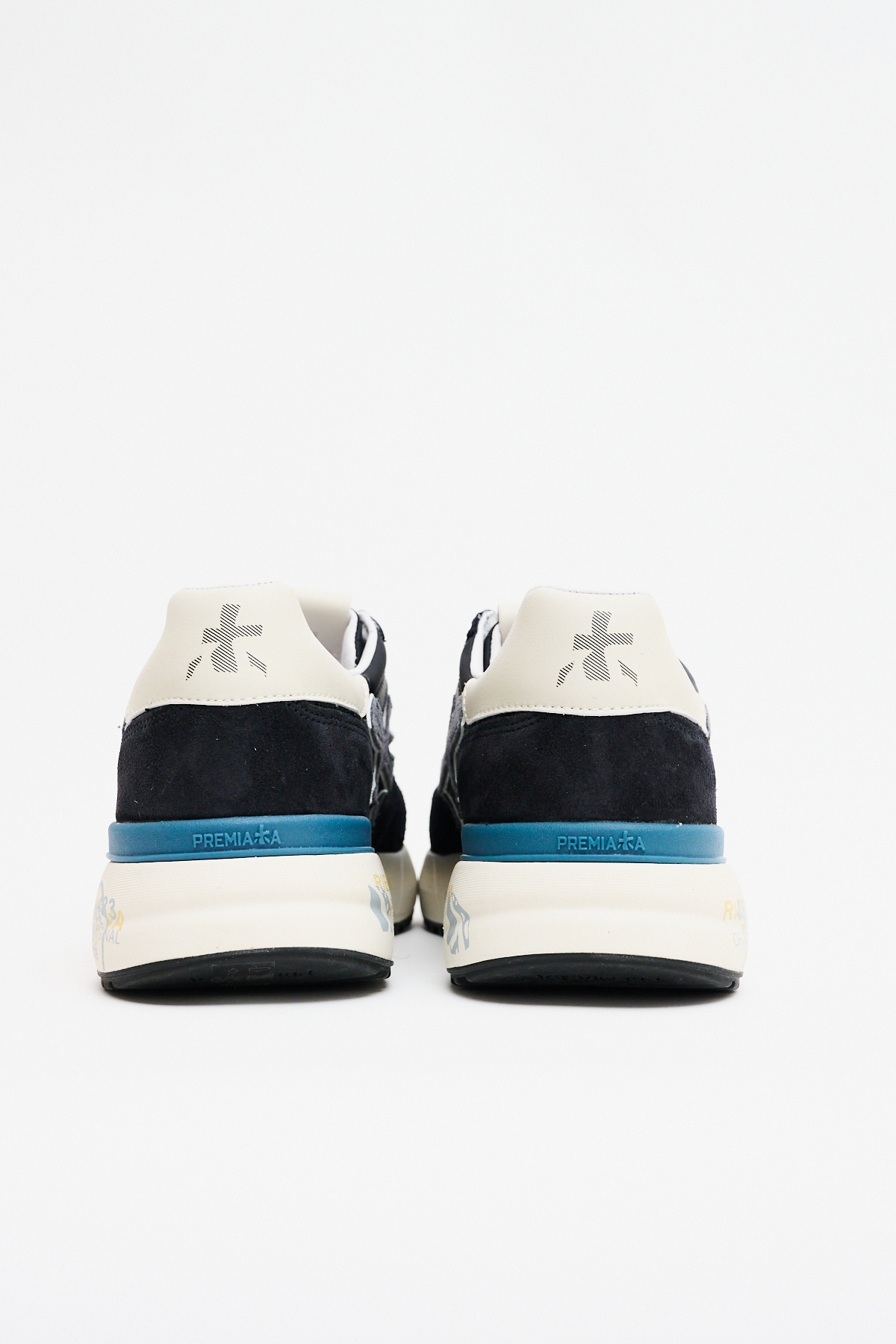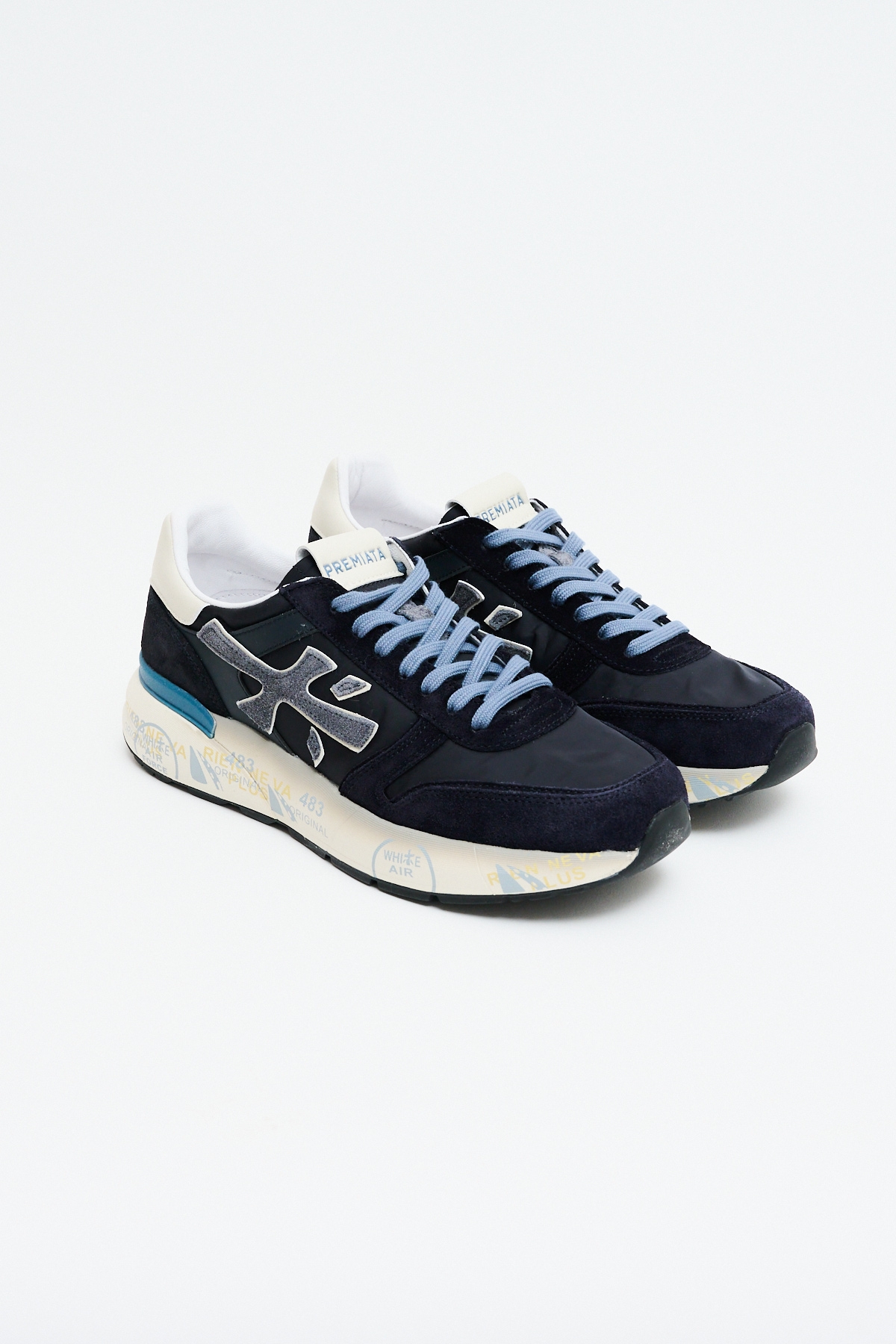 Le sneakers Mick sono realizzate con un raffinato mix di materiali e pellami di alta qualità, nelle eleganti tonalità del nero con dettagli ton sur ton. Questo modello, dal design casual e sofisticato, è arricchito dall'iconico logo Premiata e da uno spoiler sulla suola che aggiunge carattere. La suola, alta 4,2 cm, e il fusbet interno da 28,5 cm offrono un comfort ideale e un look moderno e versatile.