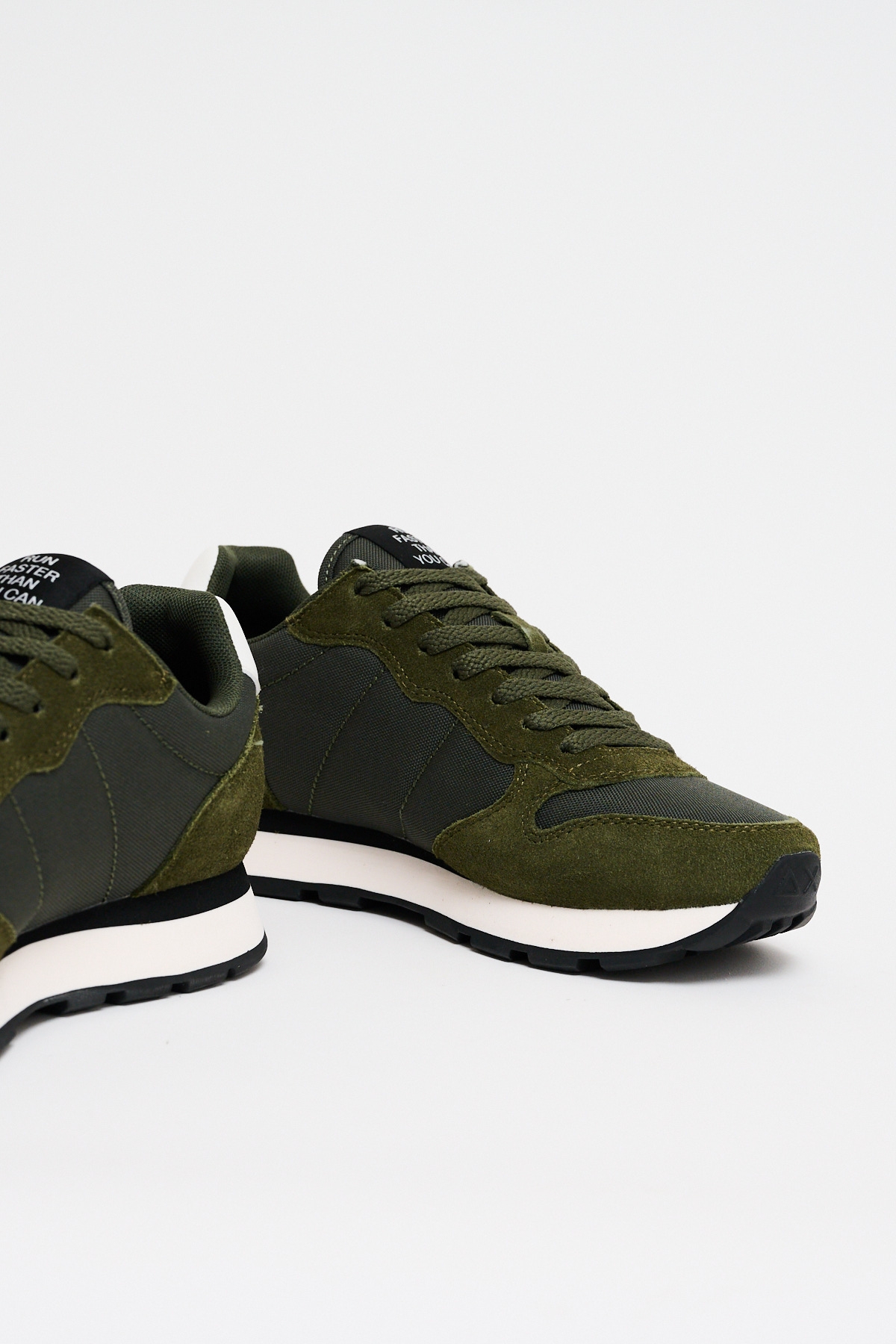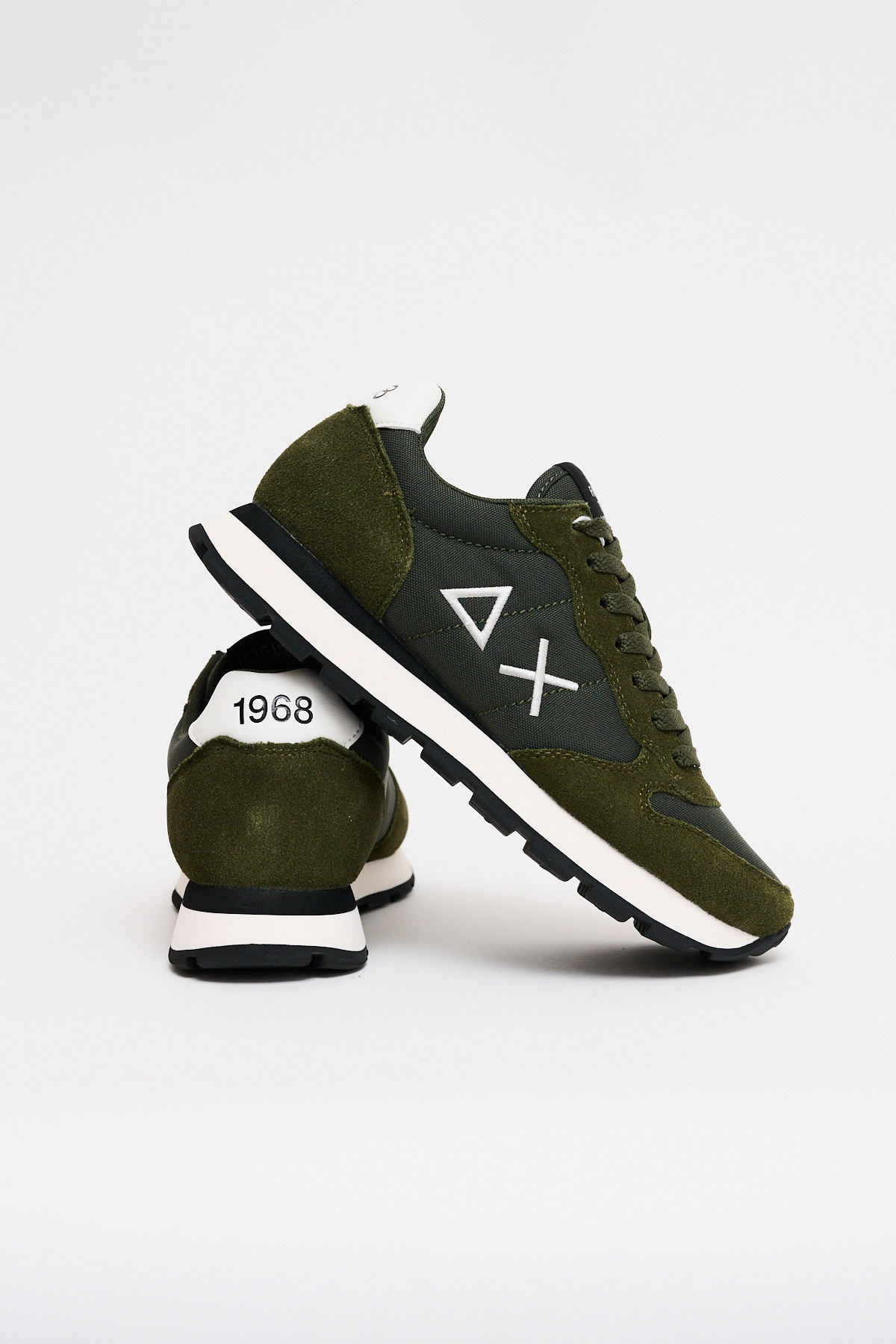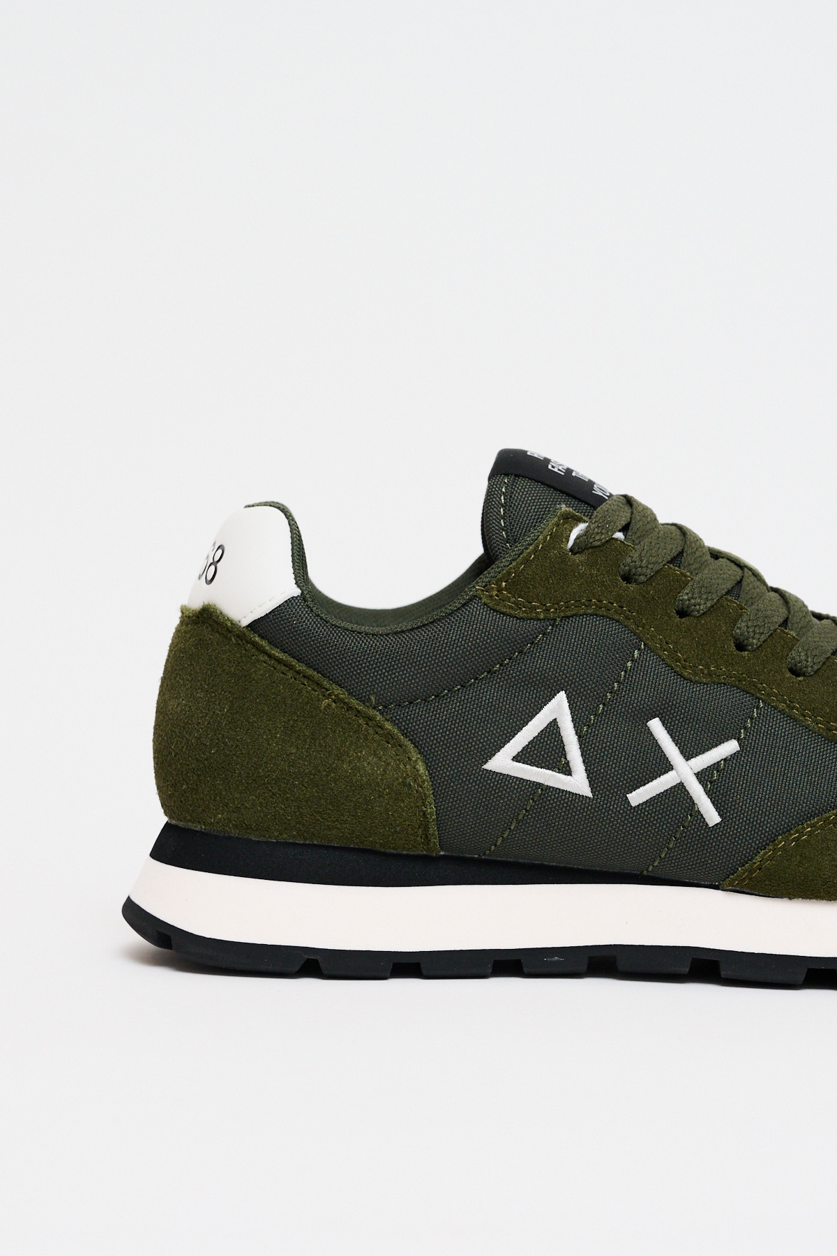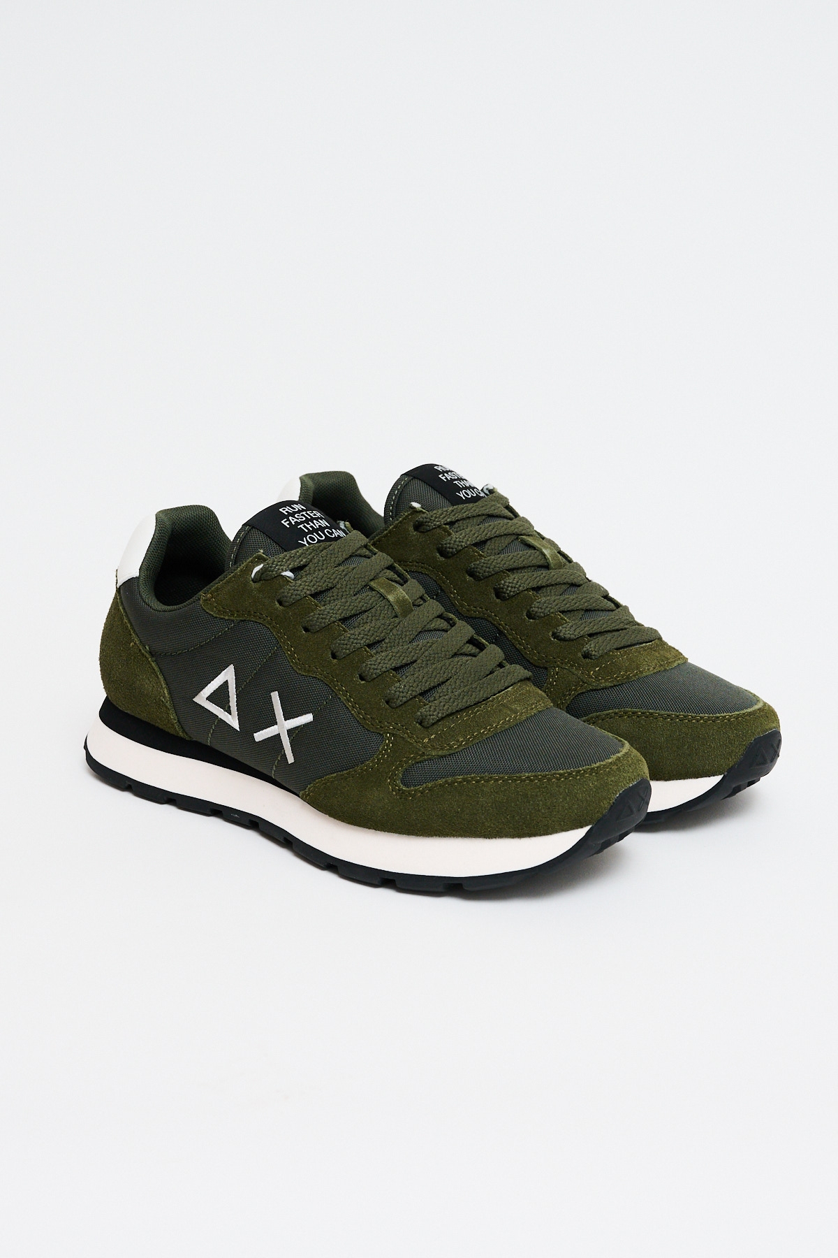 La Sneakers Tom Solid Militare Scuro è una sneakers stile running realizzata in nylon e suede, con chiusura con lacci in cotone, logo ricamato sul lato, fodera in micro mesh e suola in EVA fresata a mano e battistrada in gomma.