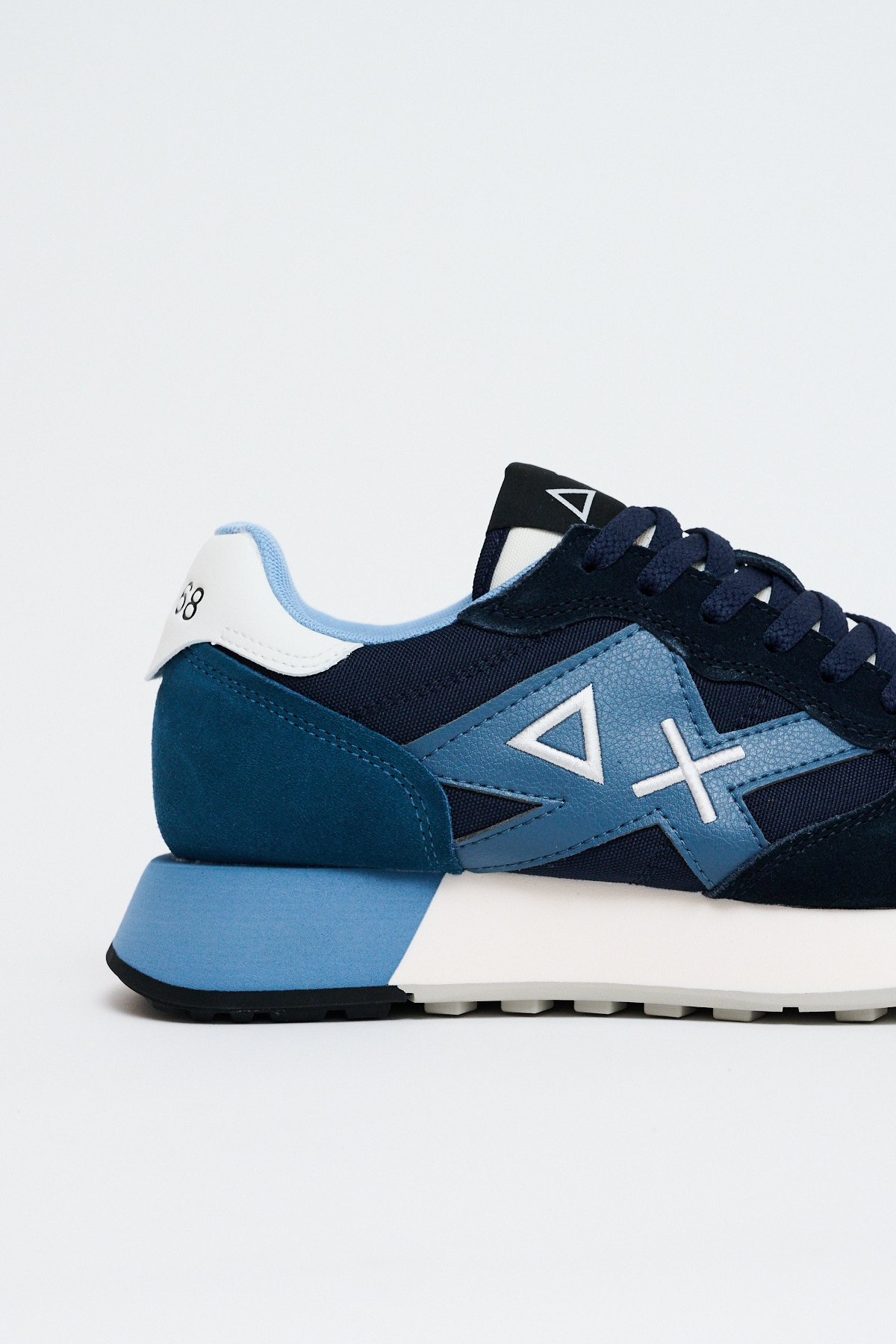 La Sneaker Jaki è un best seller SUN68 sempre al passo con la contemporaneità. Si caratterizza per la maxi patch sul lato con il logo iconico ricamato a contrasto.