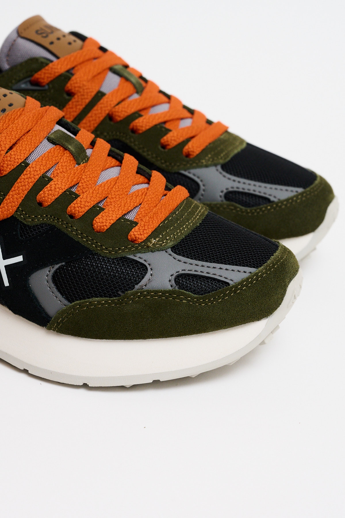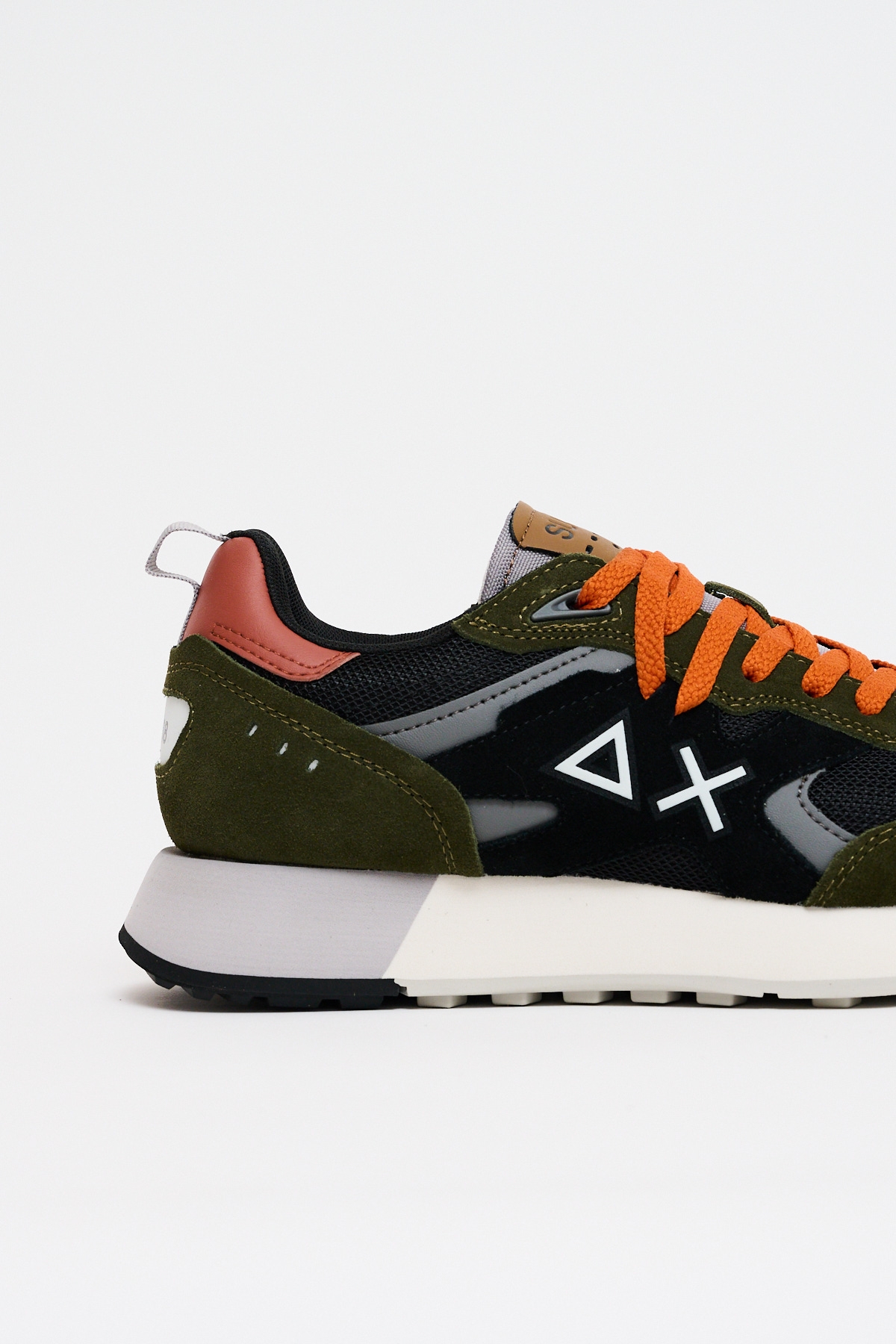 La Sneakers Jaki Outdoor è realizzata con tomaia in pelle scamosciata e nylon, con logo ricamato, fodera in tessuto, plantare estraibile, intersuola in EVA bicolore, suola in gomma. Calzata regolare.