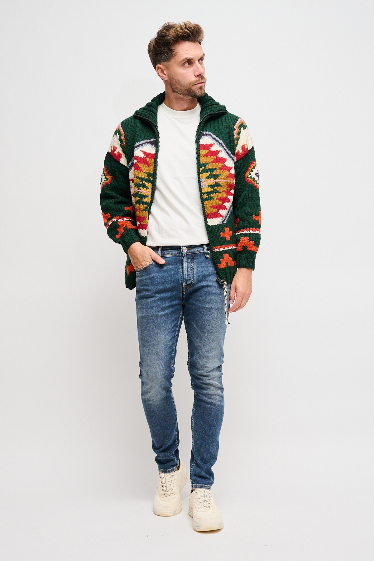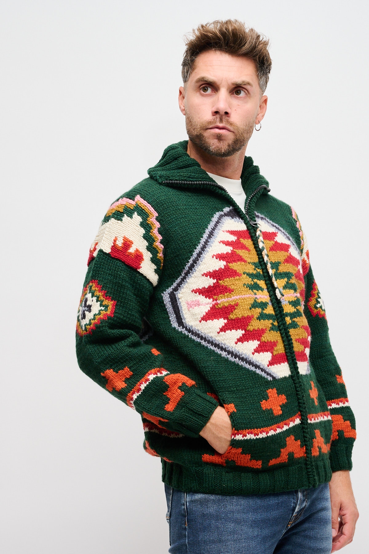 Questo cardigan casual di Frantic presenta un sorprendente motivo geometrico continuo. Ha una pratica cerniera frontale e due tasche applicate. Realizzato in un materiale a maglia di alta qualità, offre una vestibilità comoda e una vestibilità ampia. Un capo versatile, Made in Ecuador, perfetto per i giorni di relax.