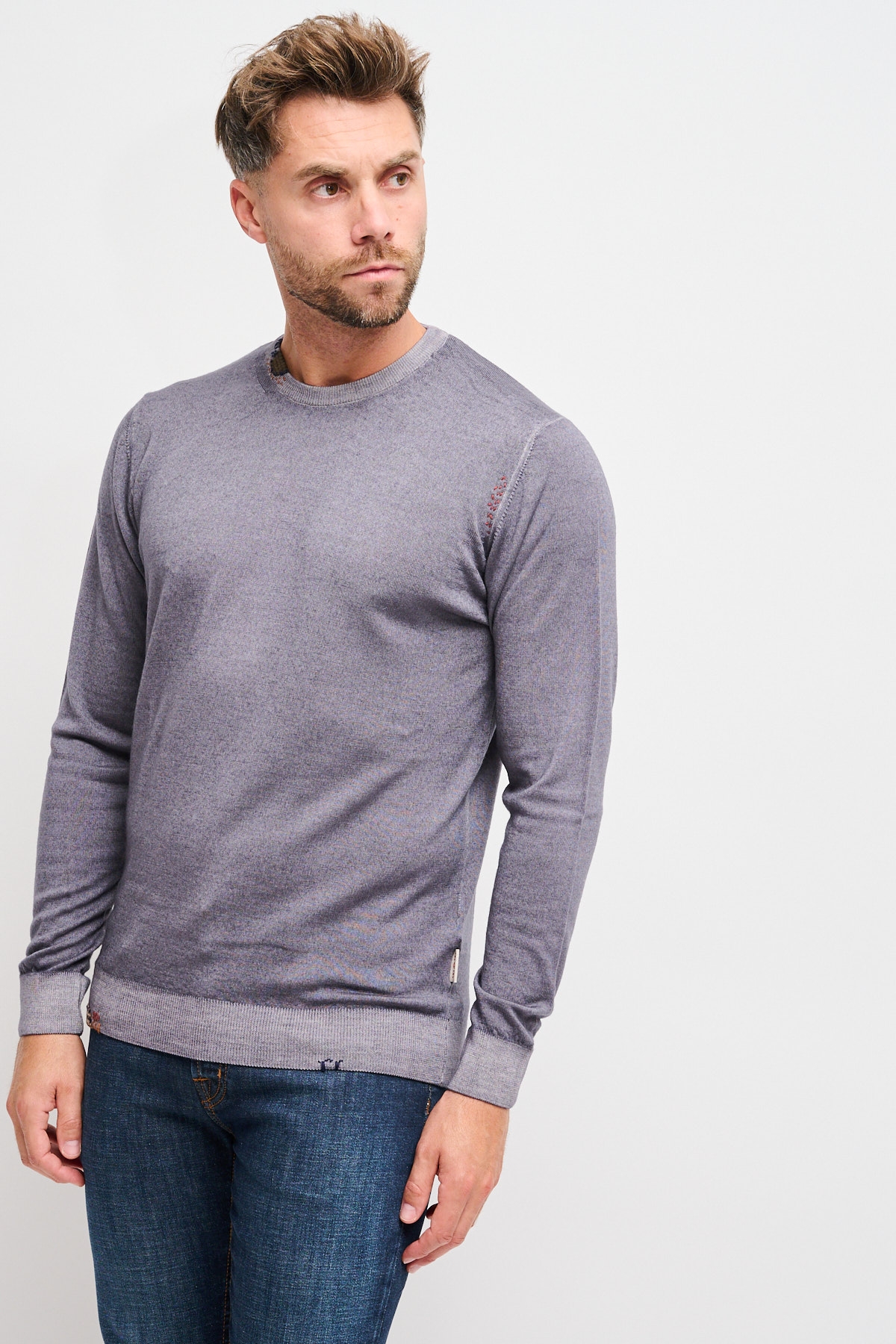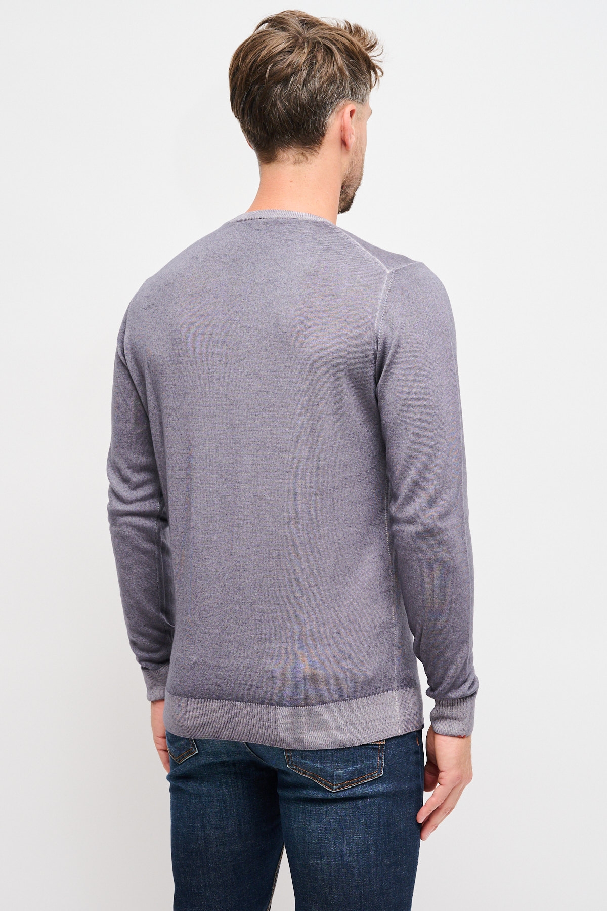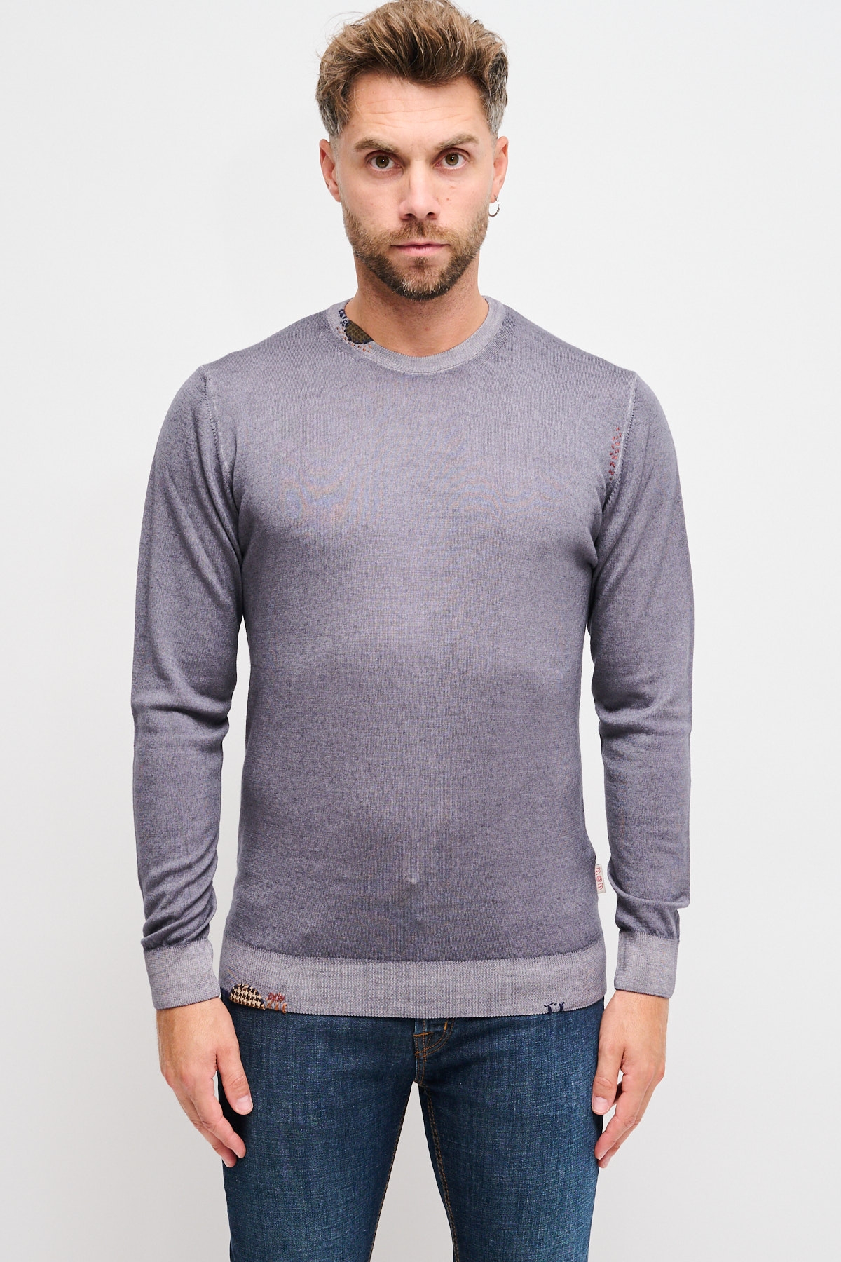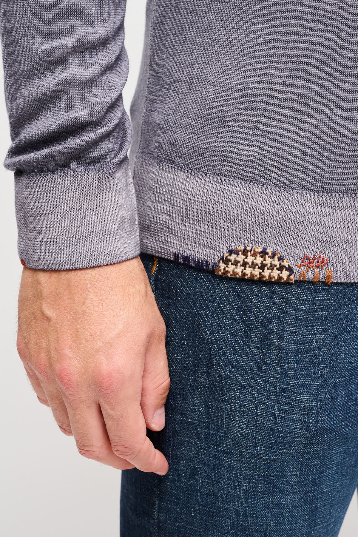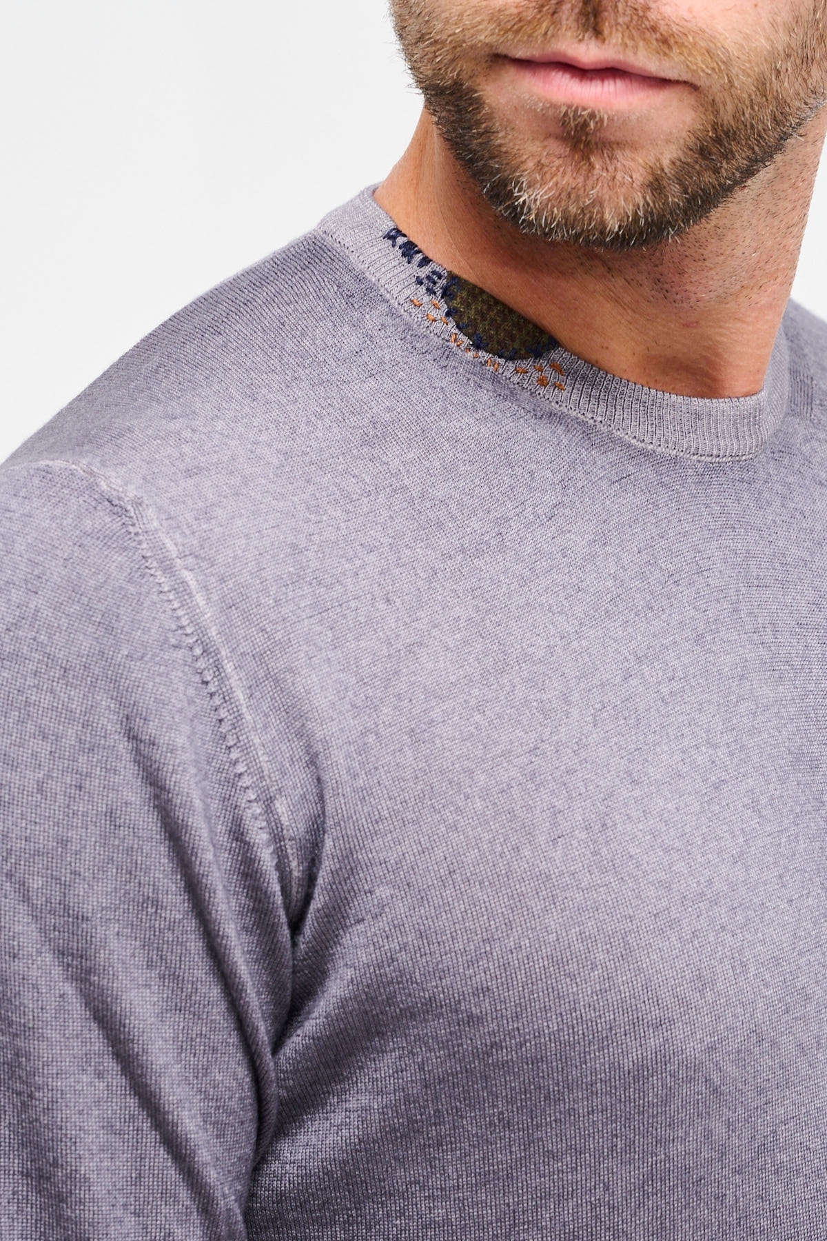 Maglia in lana sottile, tinta unita con girocollo tondo e dettaglio ricamato in contrasto applicato sui bordi a costine del capo. vestibilità regular.