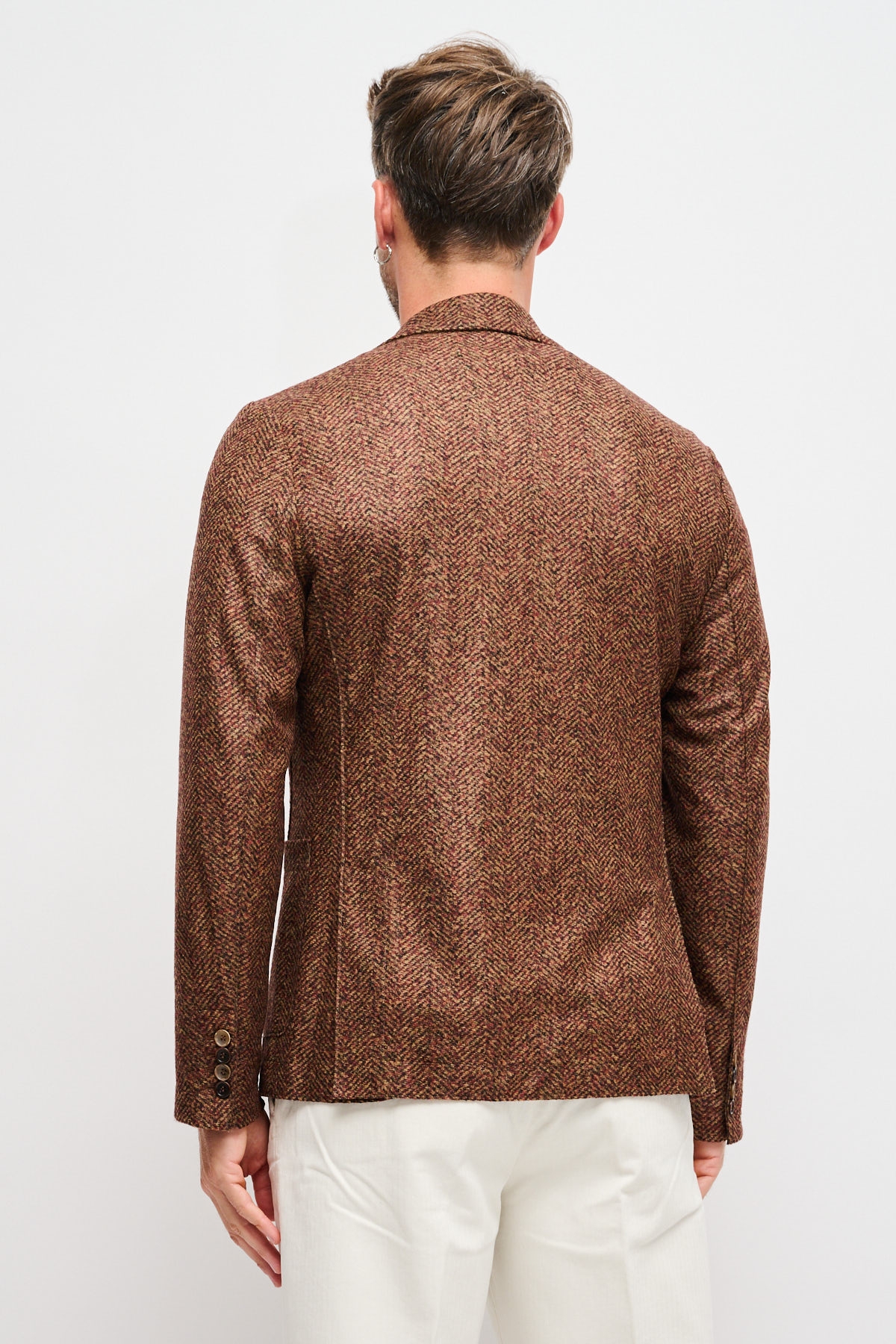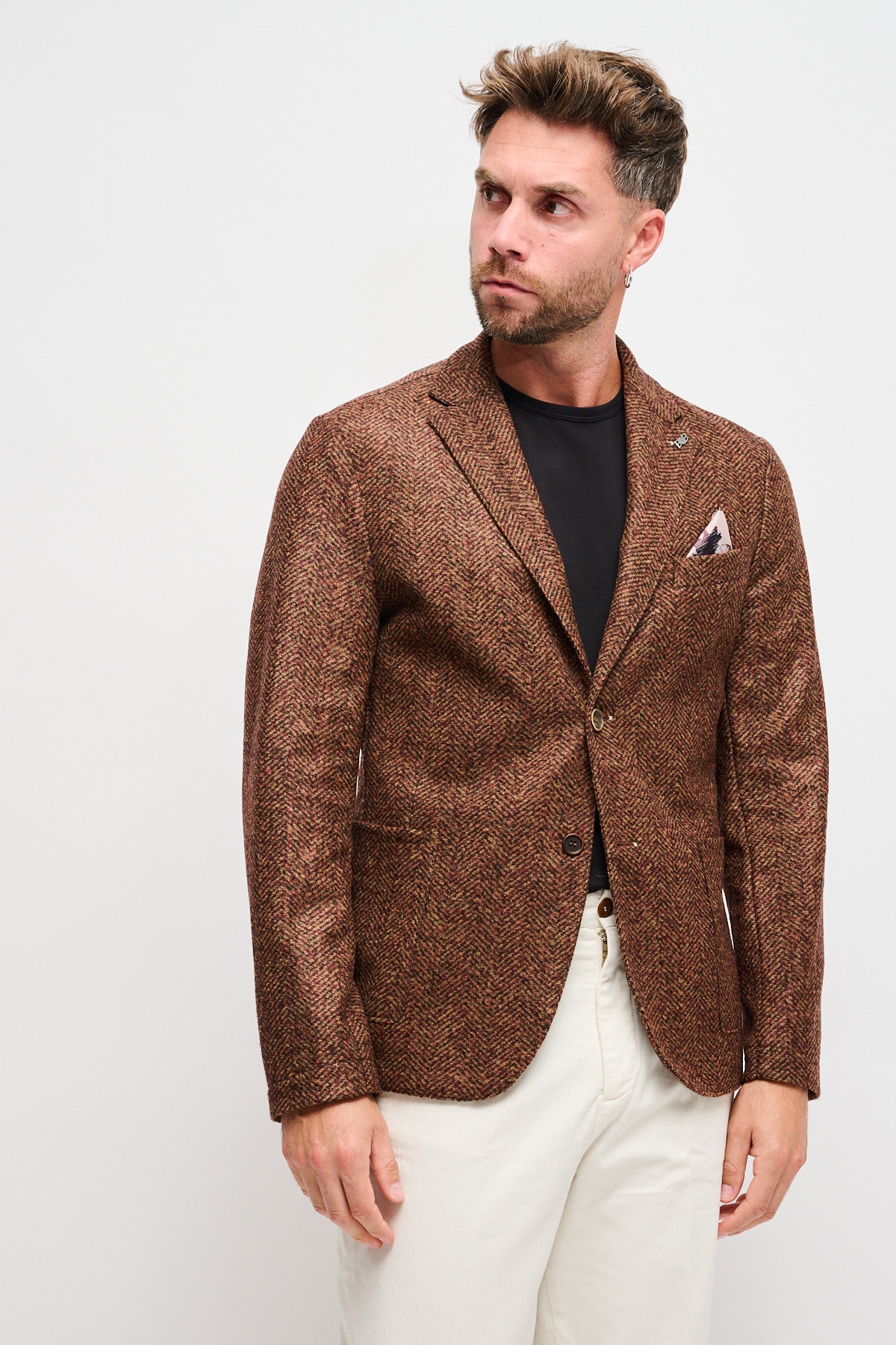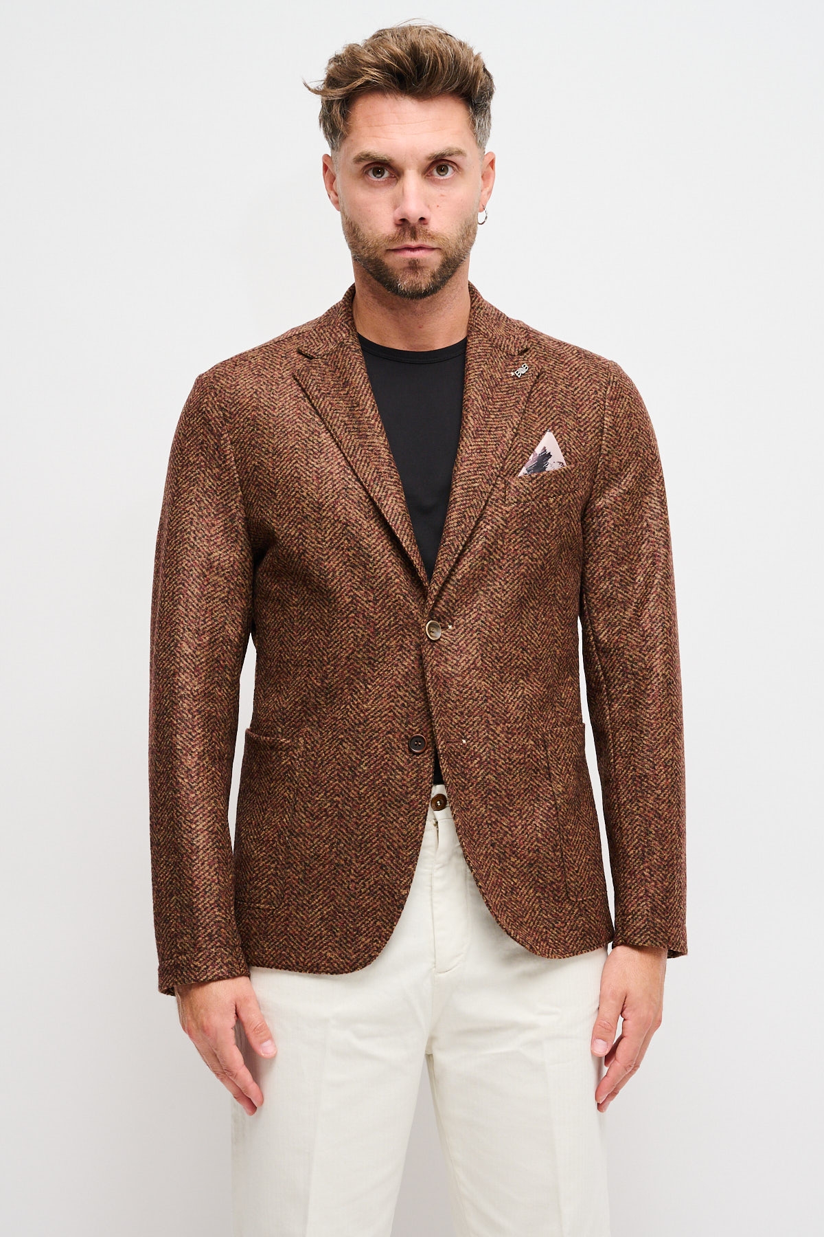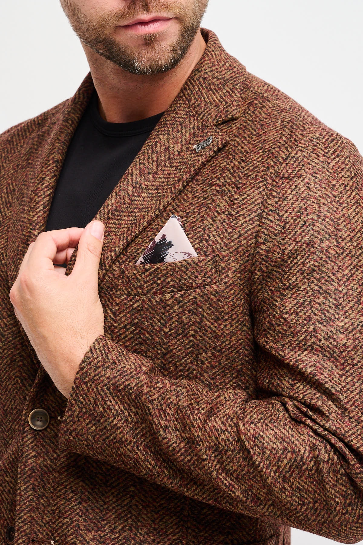Giacca monopetto in misto lana a fantasia check sui toni del blu.