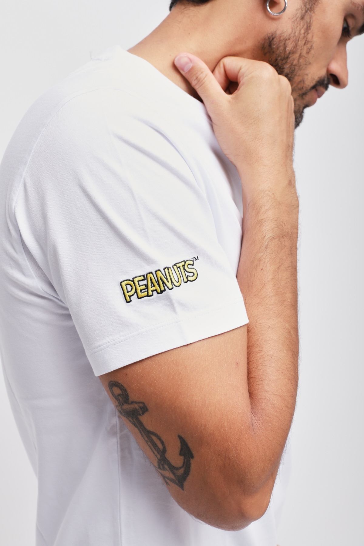 La t-shirt "Peanuts x SUN68" celebra l’ironia senza tempo del fumetto di Charles Schulz. Con grafiche uniche e colori pop, è una dichiarazione di stile giocosa.