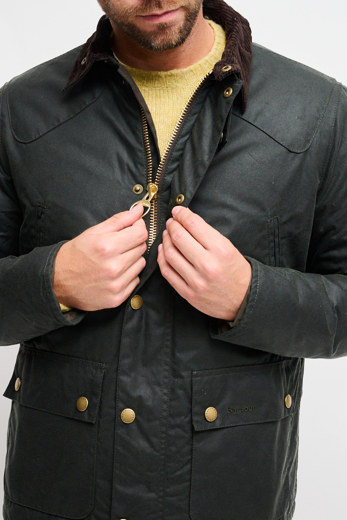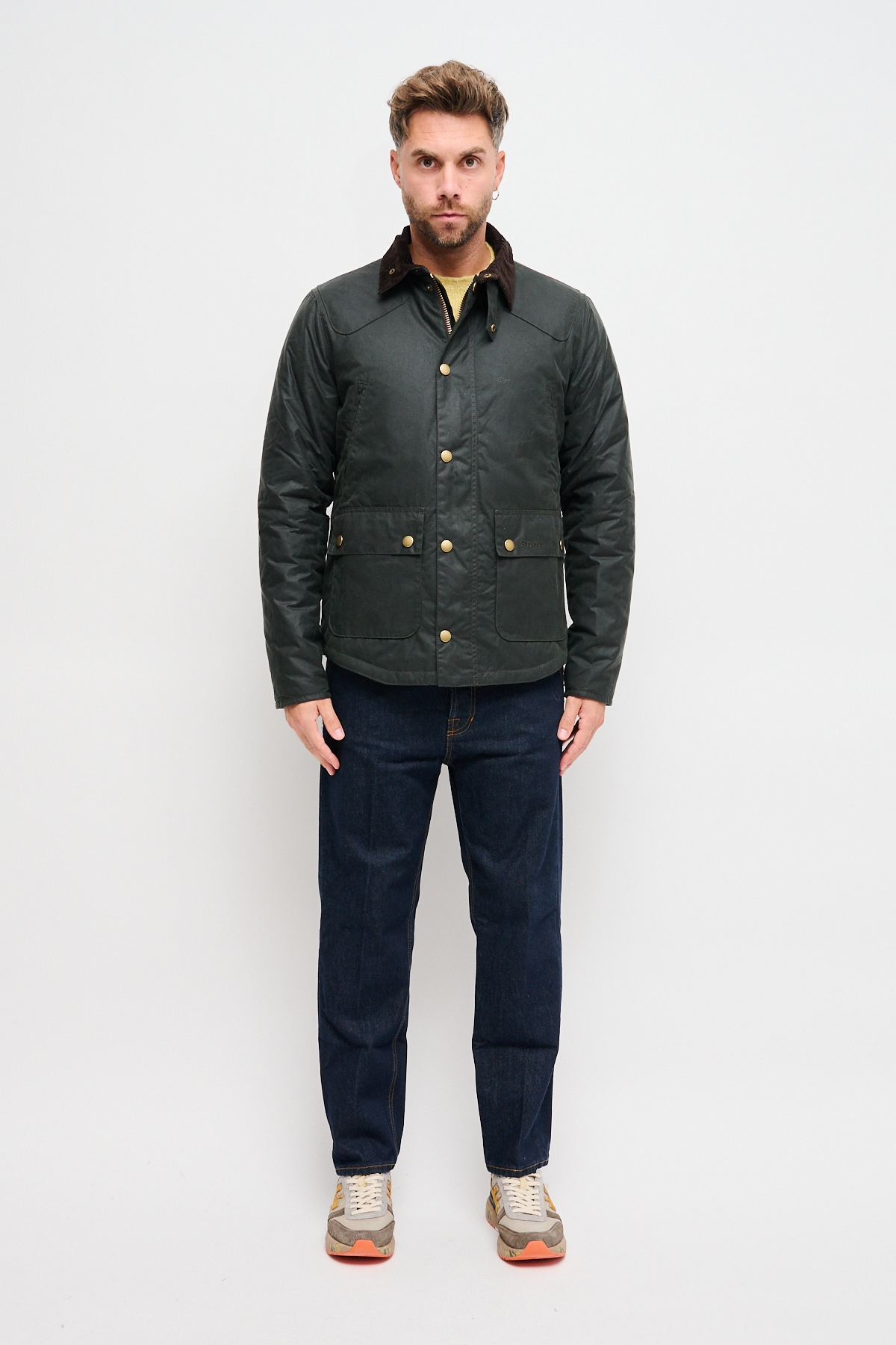 La giacca Reelin, rivisitazione invernale dell'iconica formula Barbour, è realizzata in cotone cerato e presenta una fodera trapuntata con il nostro caratteristico disegno tartan antico. Dotata di toppe sulle spalle, colletto in velluto a coste pesante e tasche scaldamani con zip, la giacca è rifinita con il logo ricamato sulla patta della tasca sinistra.