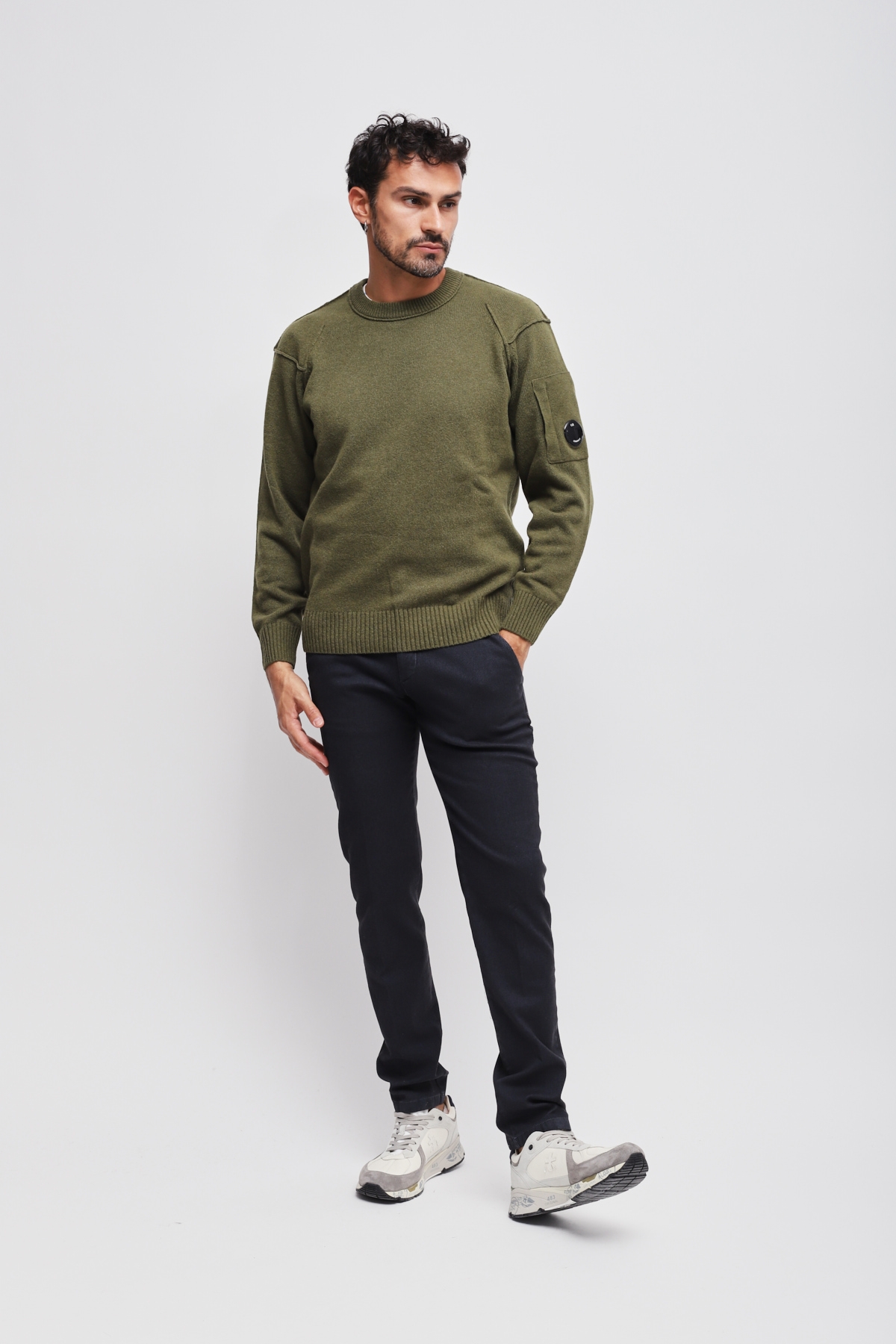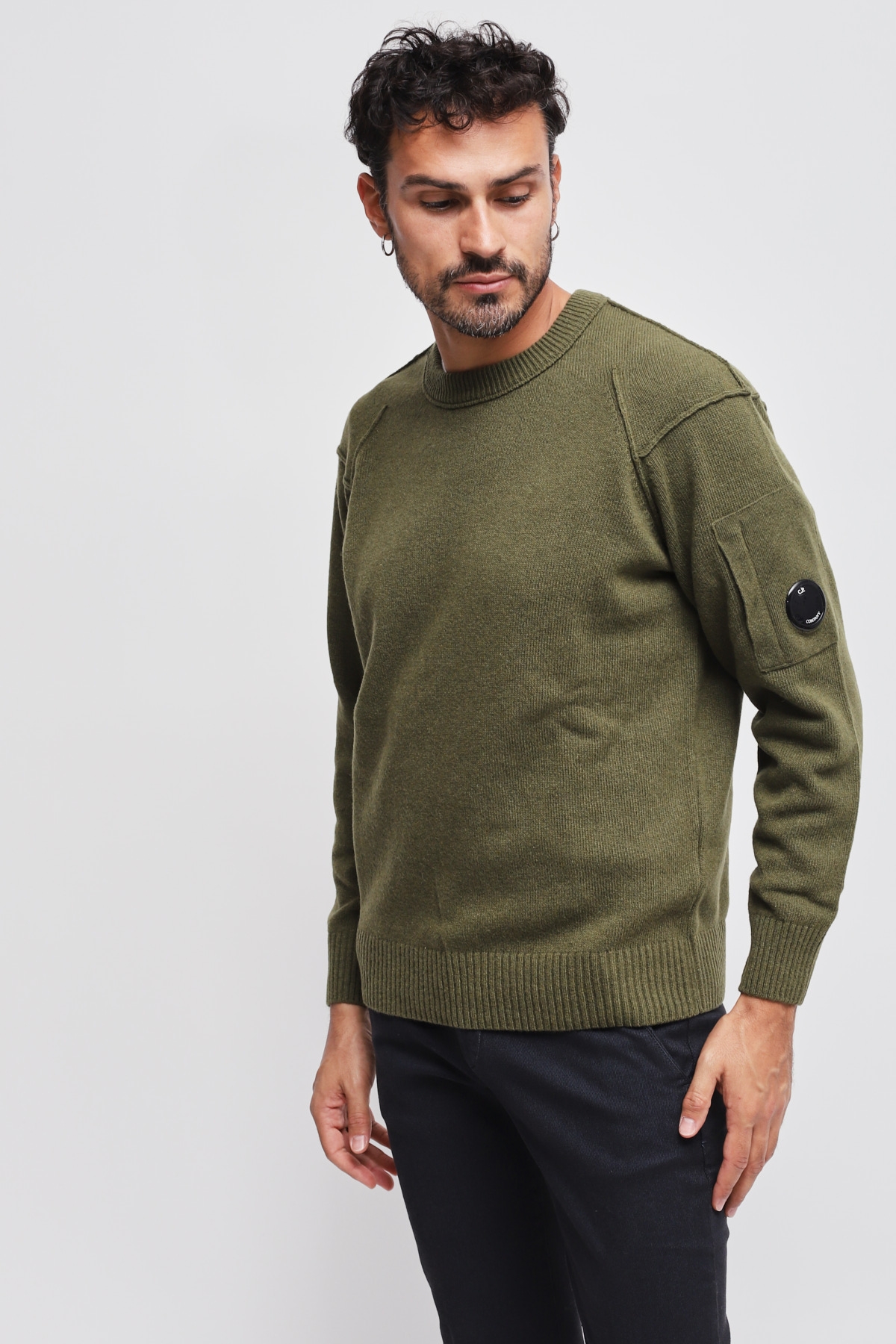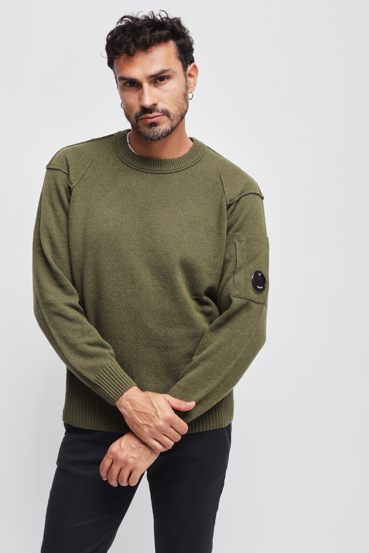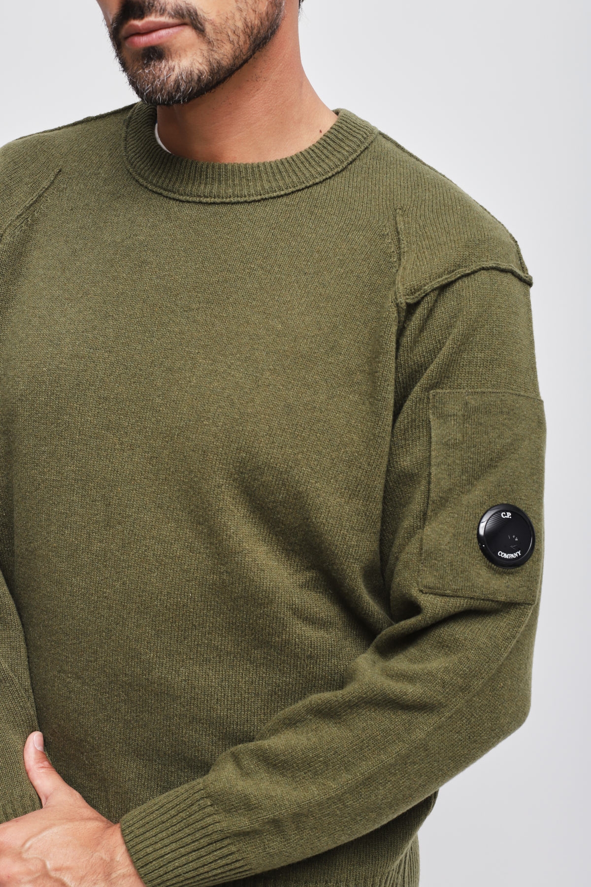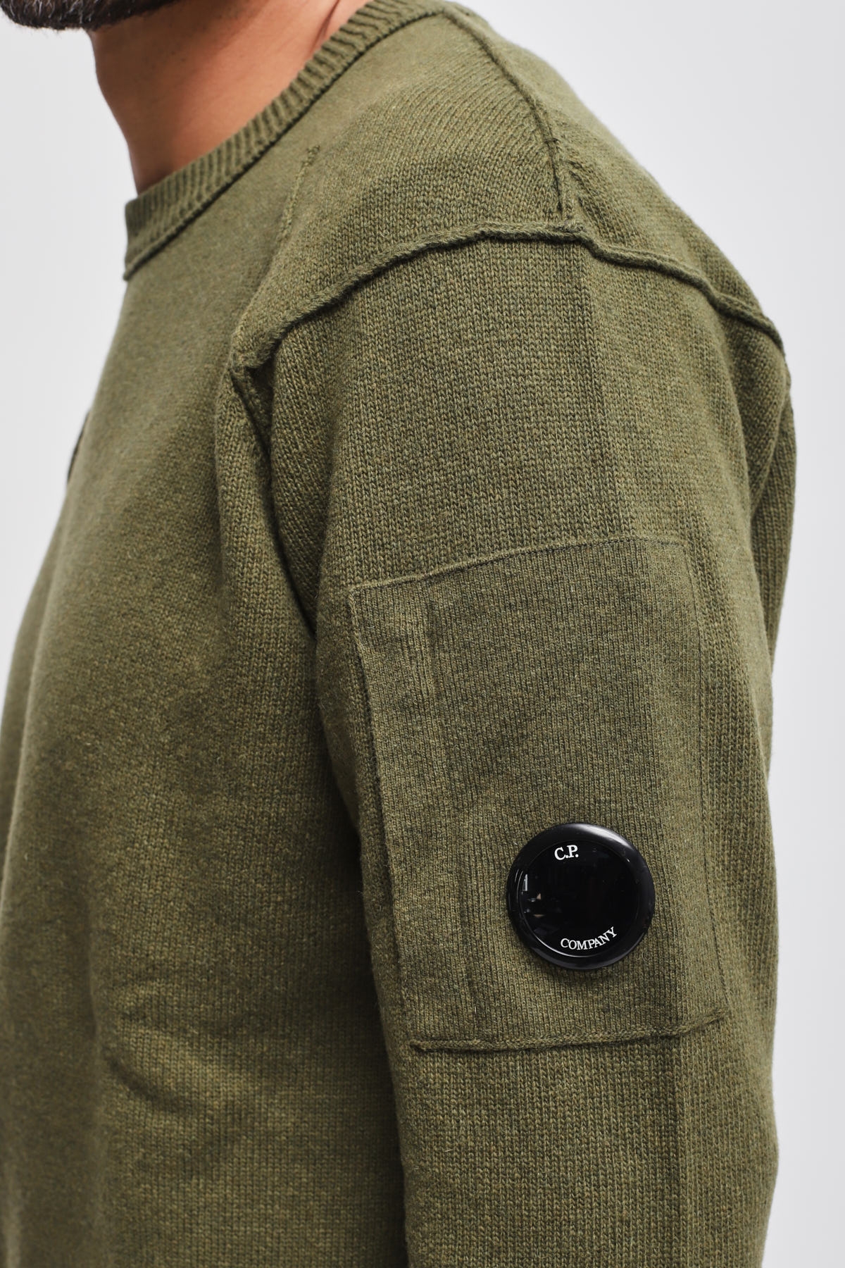 Maglione girocollo realizzato in Lambswool GRS. La certificazione Global Recycled Standard garantisce il rispetto di criteri ambientali e sociali in tutte le fasi della filiera. Il capo presenta l’iconica Lente di C.P. Company, cuciture a contrasto, polsini e orlo a costine. Finezza 7. Regular fit.
