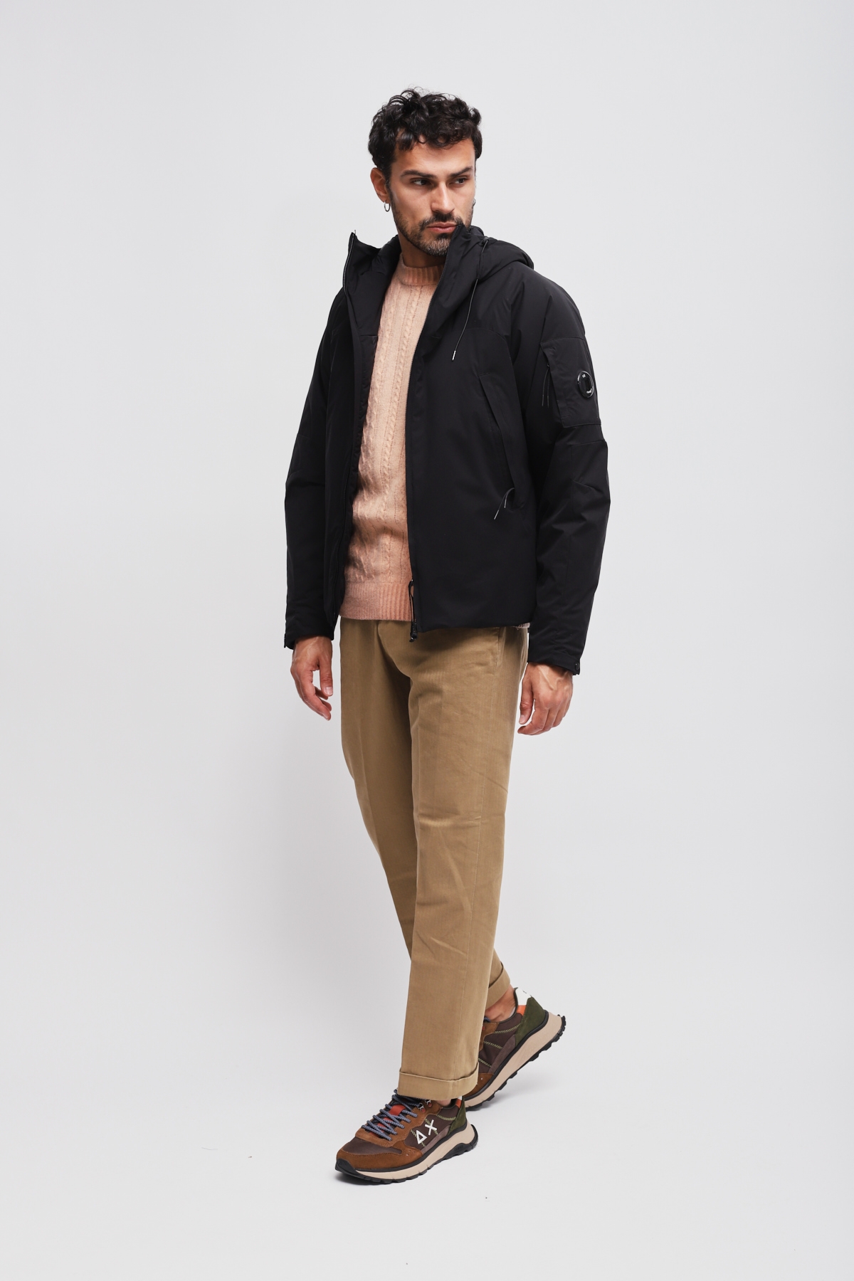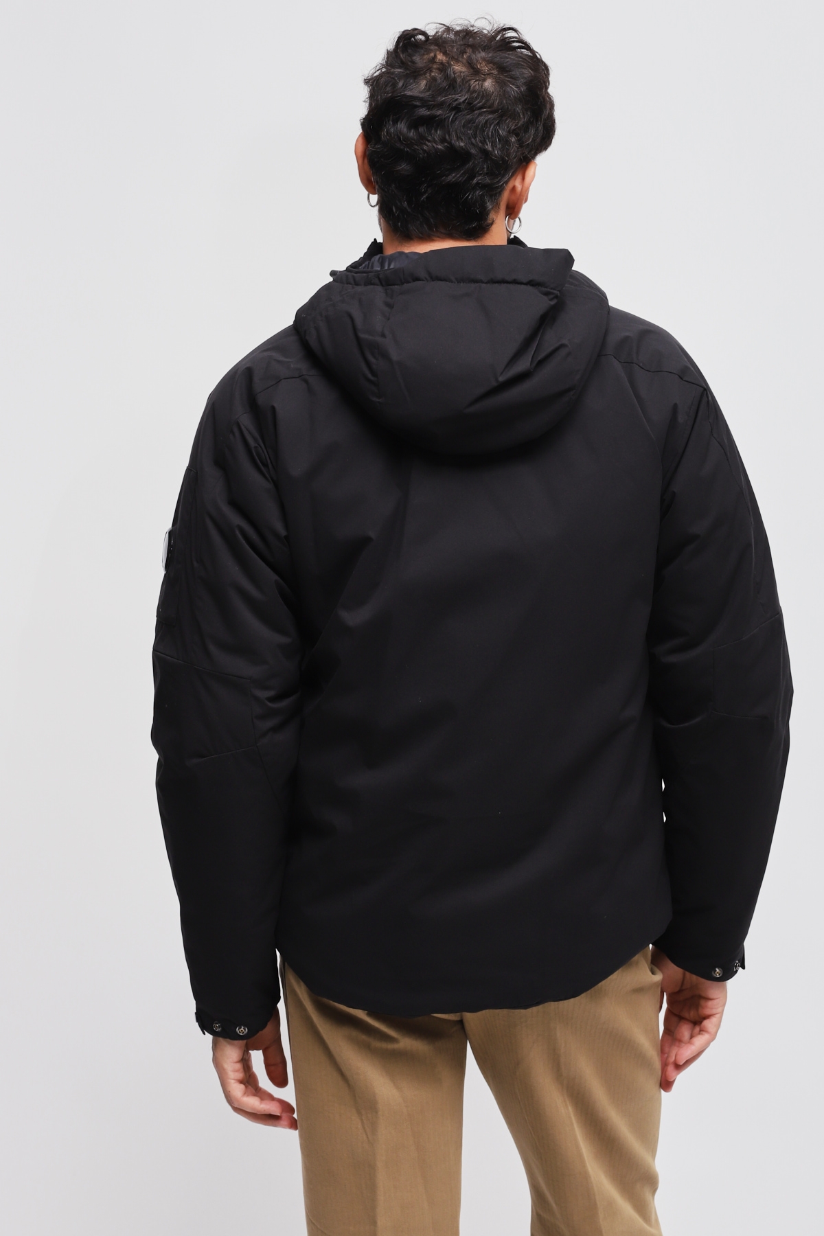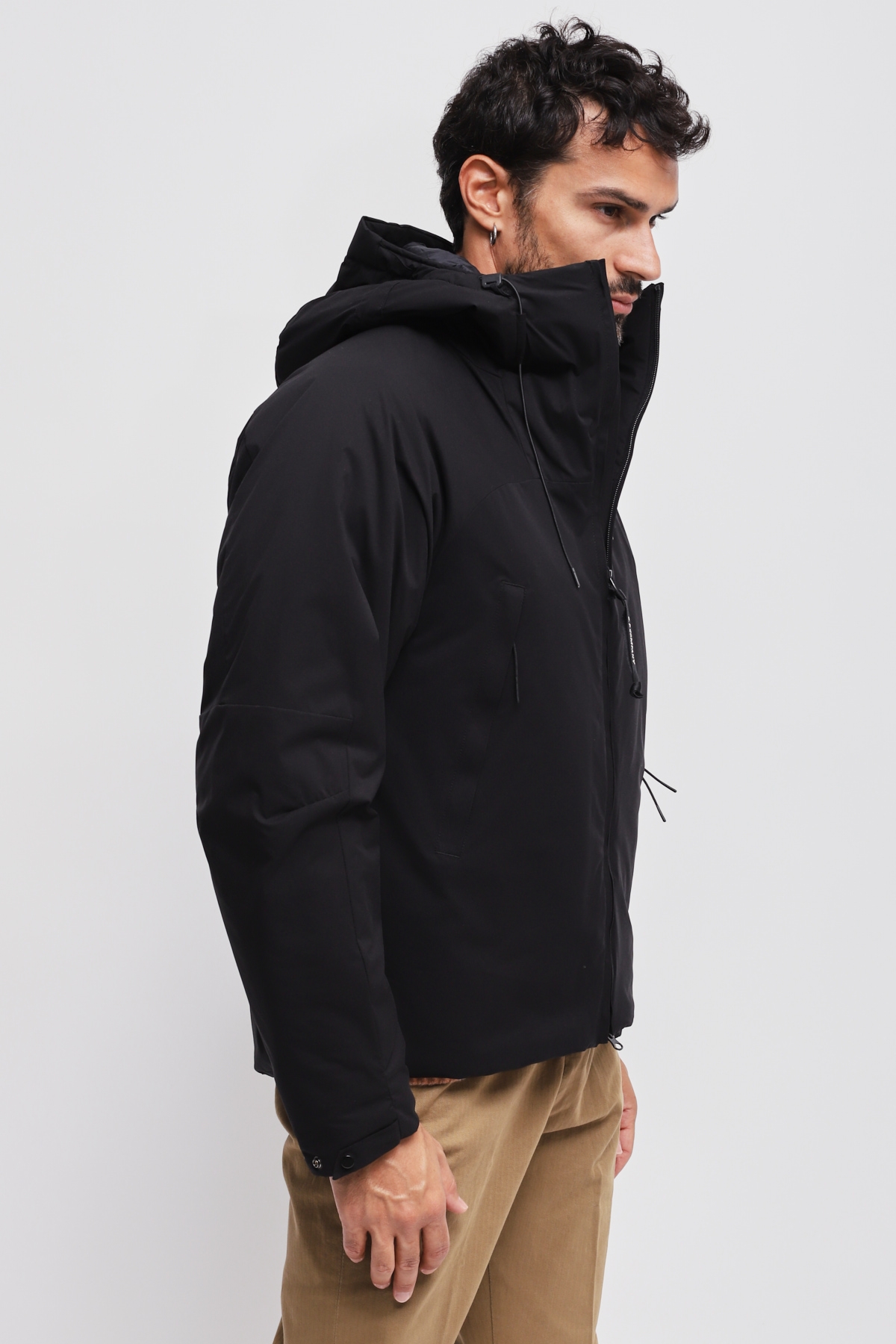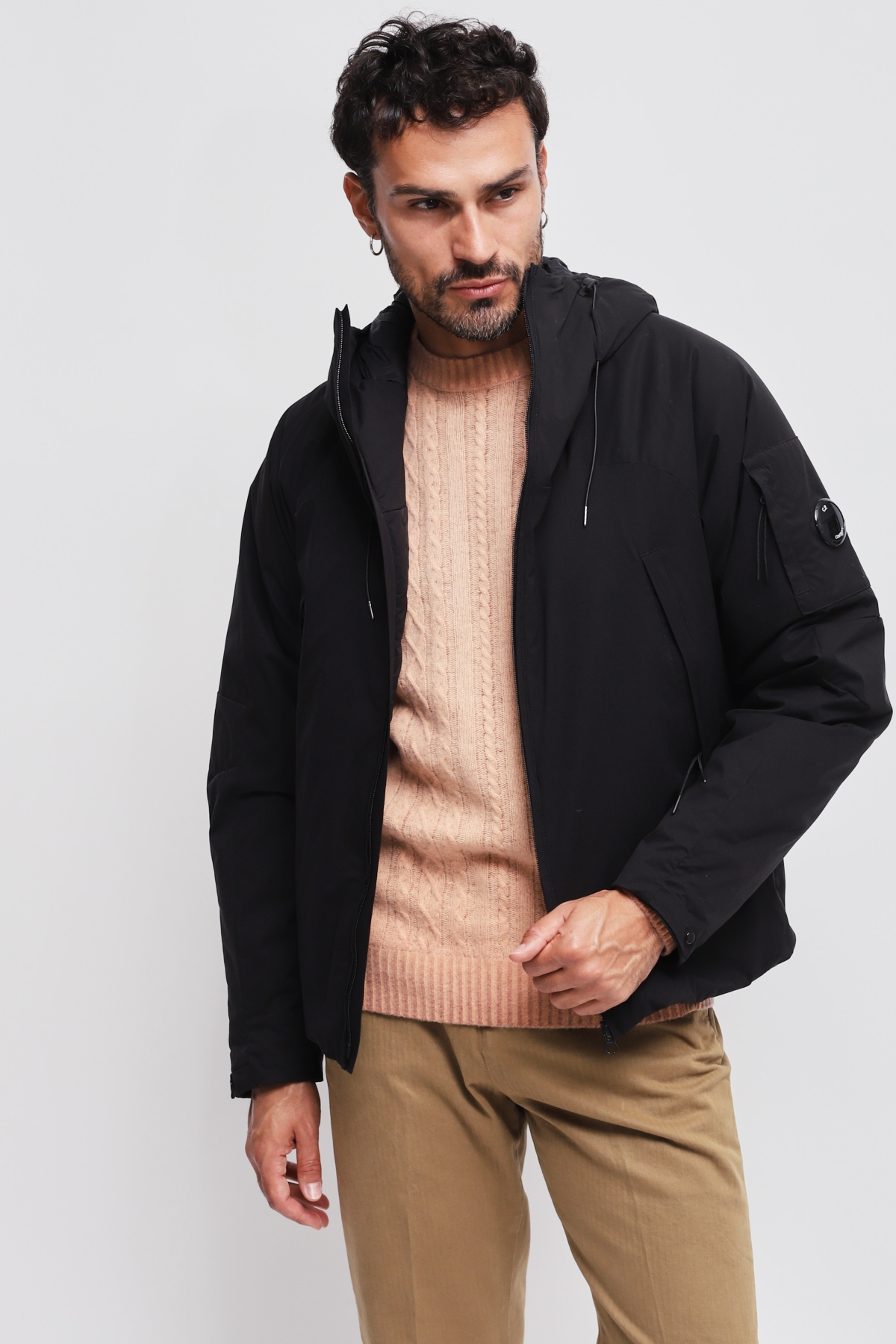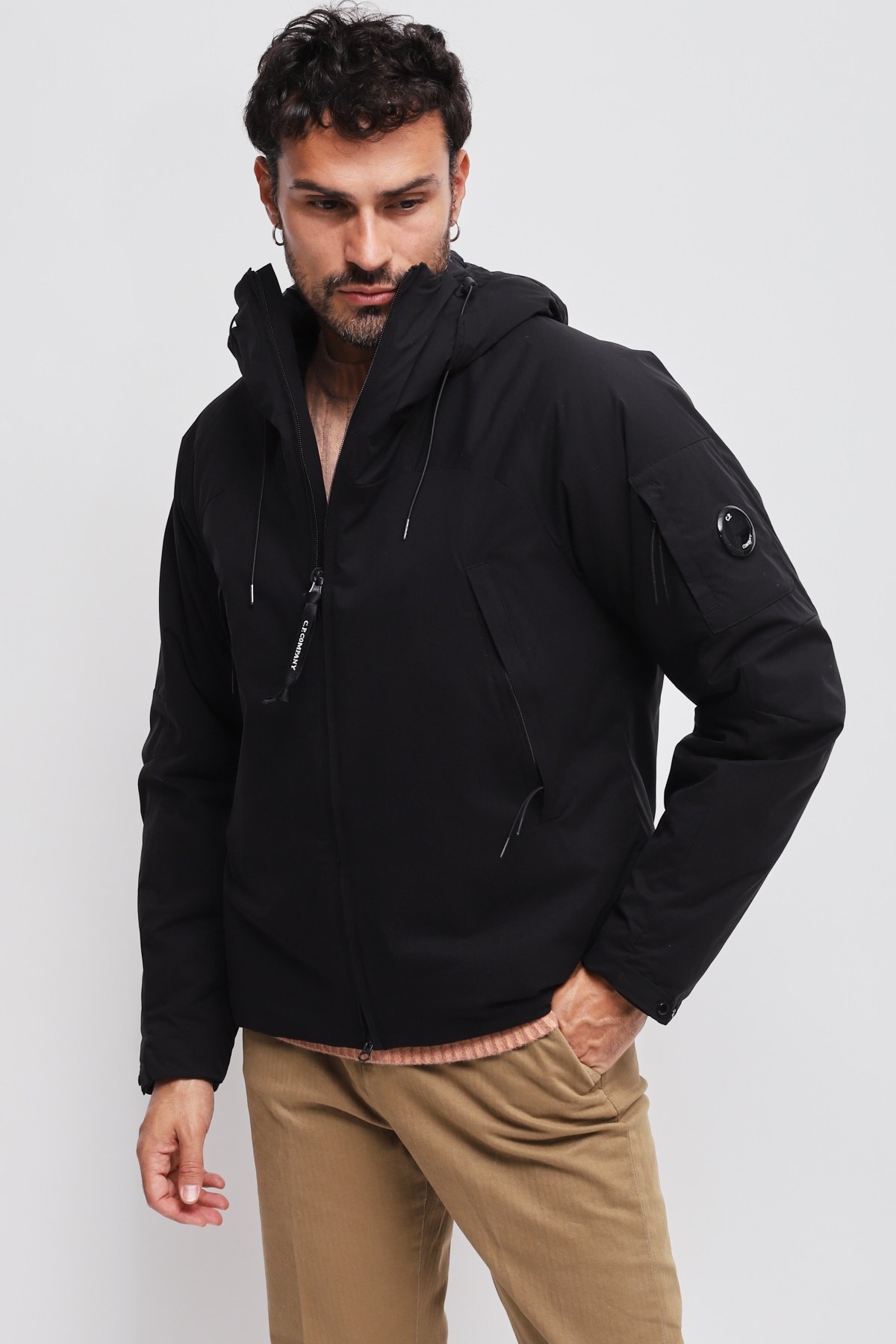 Giacca imbottita con cappuccio realizzata in Pro-Tek, un poliestere mechanical stretch, che combina il peso e il comfort di una maglia con la protezione di un capospalla. Il capo presenta l’iconica Lente di C.P. Company, una chiusura full zip a doppio cursore e tasche laterali con zip. Imbottita con ovatta Primaloft® Silver, una soluzione isolante con elevate proprietà termiche e traspiranti. Trattata anti-goccia. Regular fit.