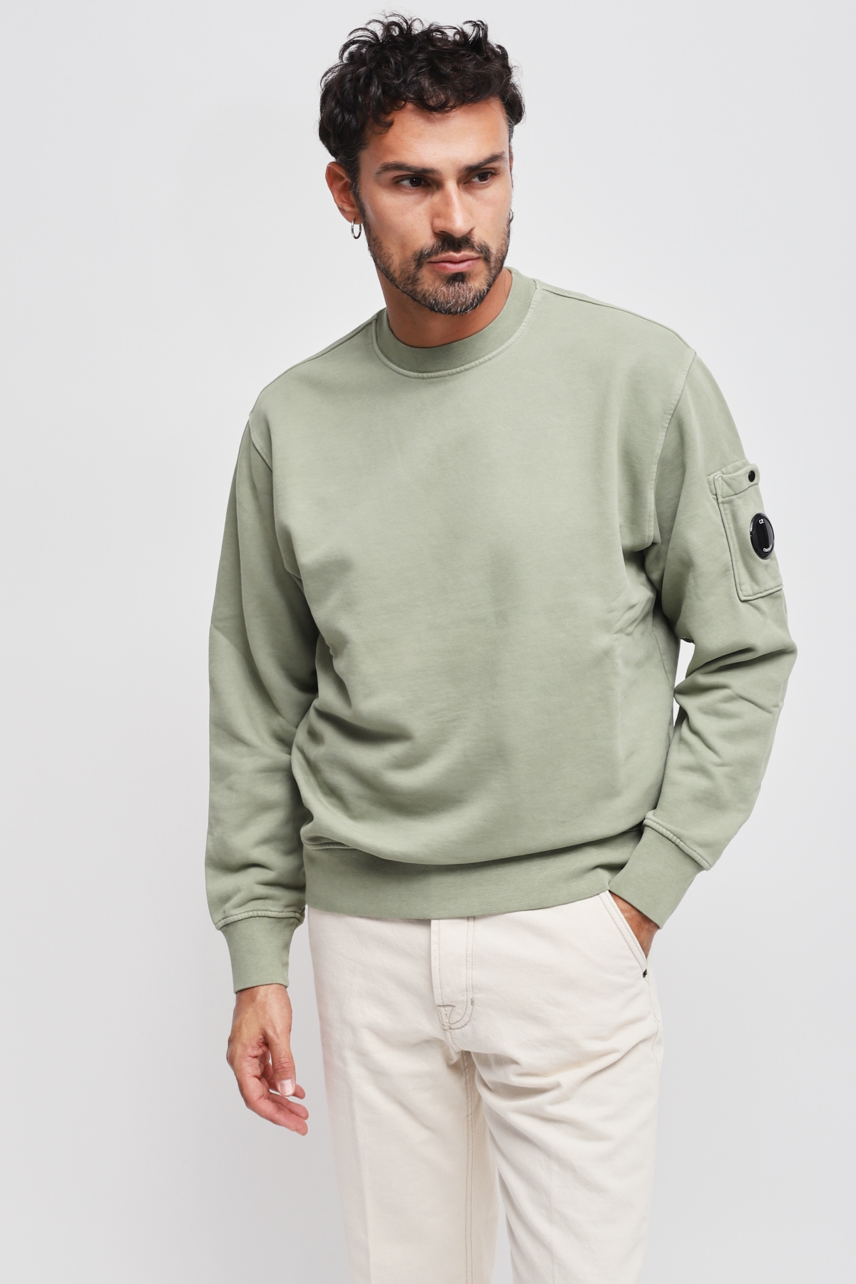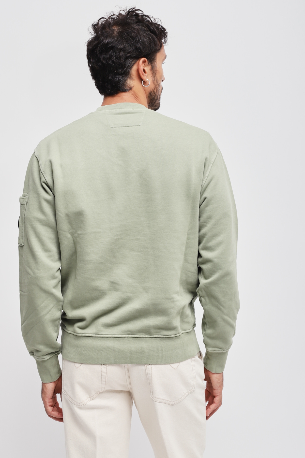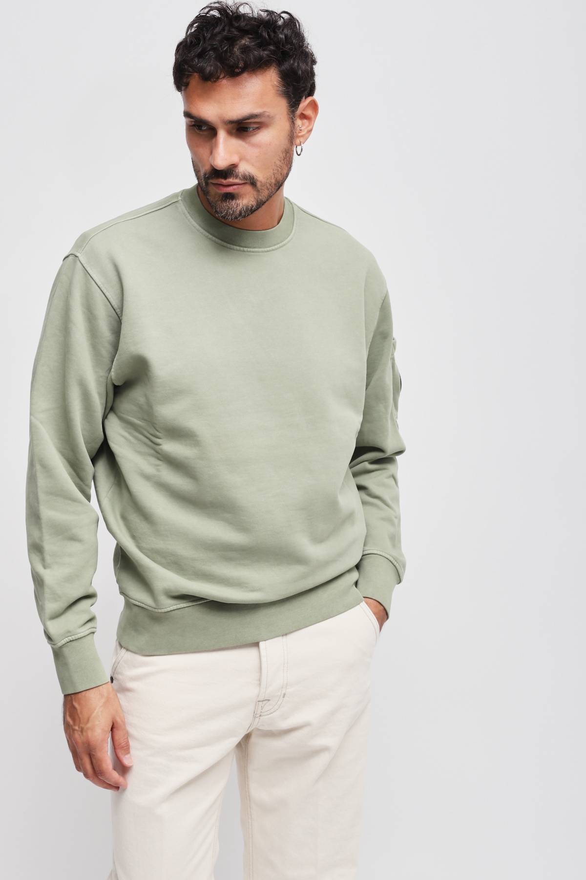 Maglia girocollo realizzata in 100% cotone con orlo e polsi a costine, taschino con bottone a pressione e dettaglio lente sulla manica sinistra. Old dyed. Vestibilità regolare.