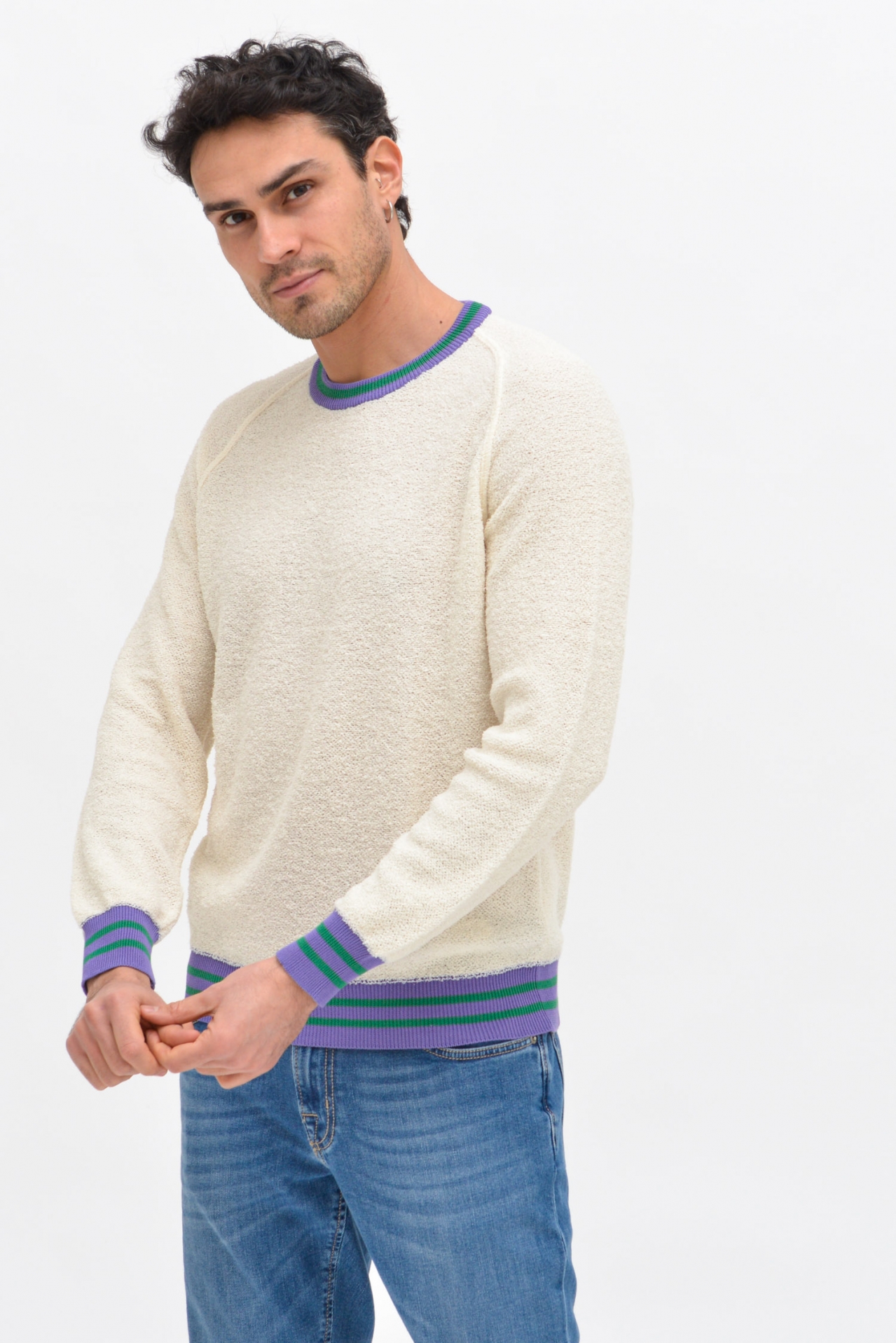 Collo, polsini e fondo a contrasto con lavorazione a costine.