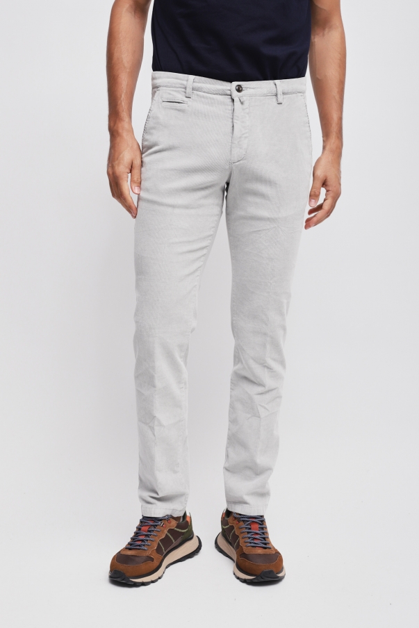 Pantalone Tasca America realizzato in Cotone elasticizzato Chiusura con Zip, due tasche posteriori a filo con bottone. Fondo cm 17,5 Questo capo “Made in Italy” fa parte della Linea Basic di Briglia 1949. Vestibilità: Slim BG05323127 Il modello indossa la taglia 49 ( altezza: 184cm / peso: 80kg)