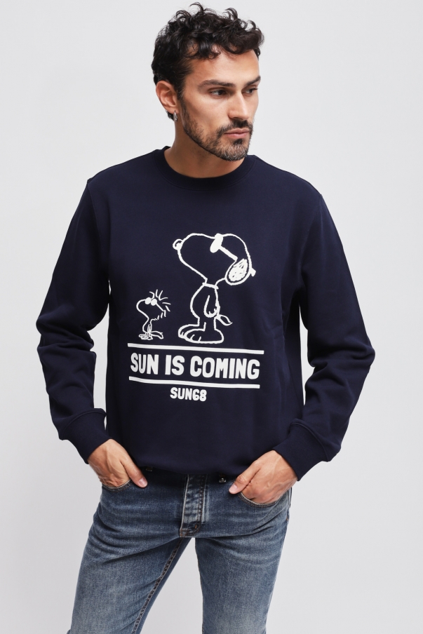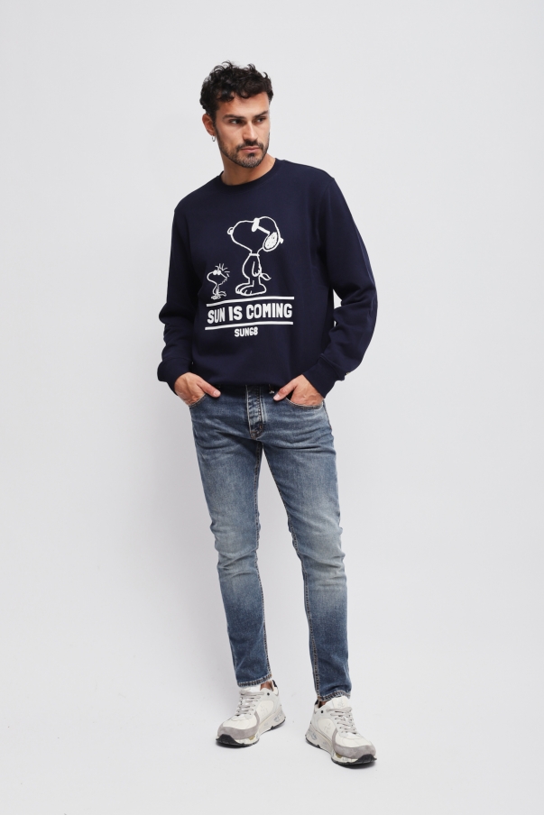 La Round Vintage Navy Blue è una maglia girocollo in cotone, colore blu navy, maniche lunghe, girocollo, trama nido d'ape, logo iconico a ricamo sul petto tono su tono, orli a costine, regular fit.
