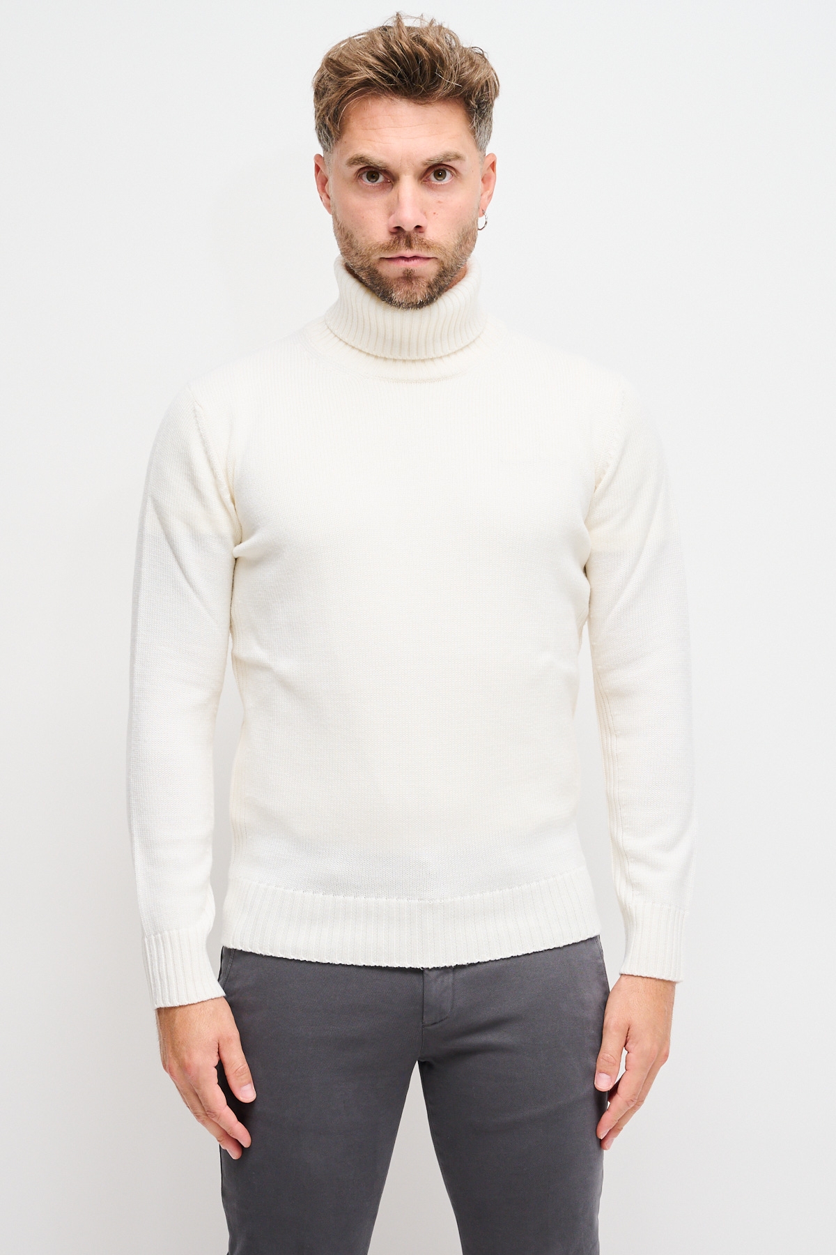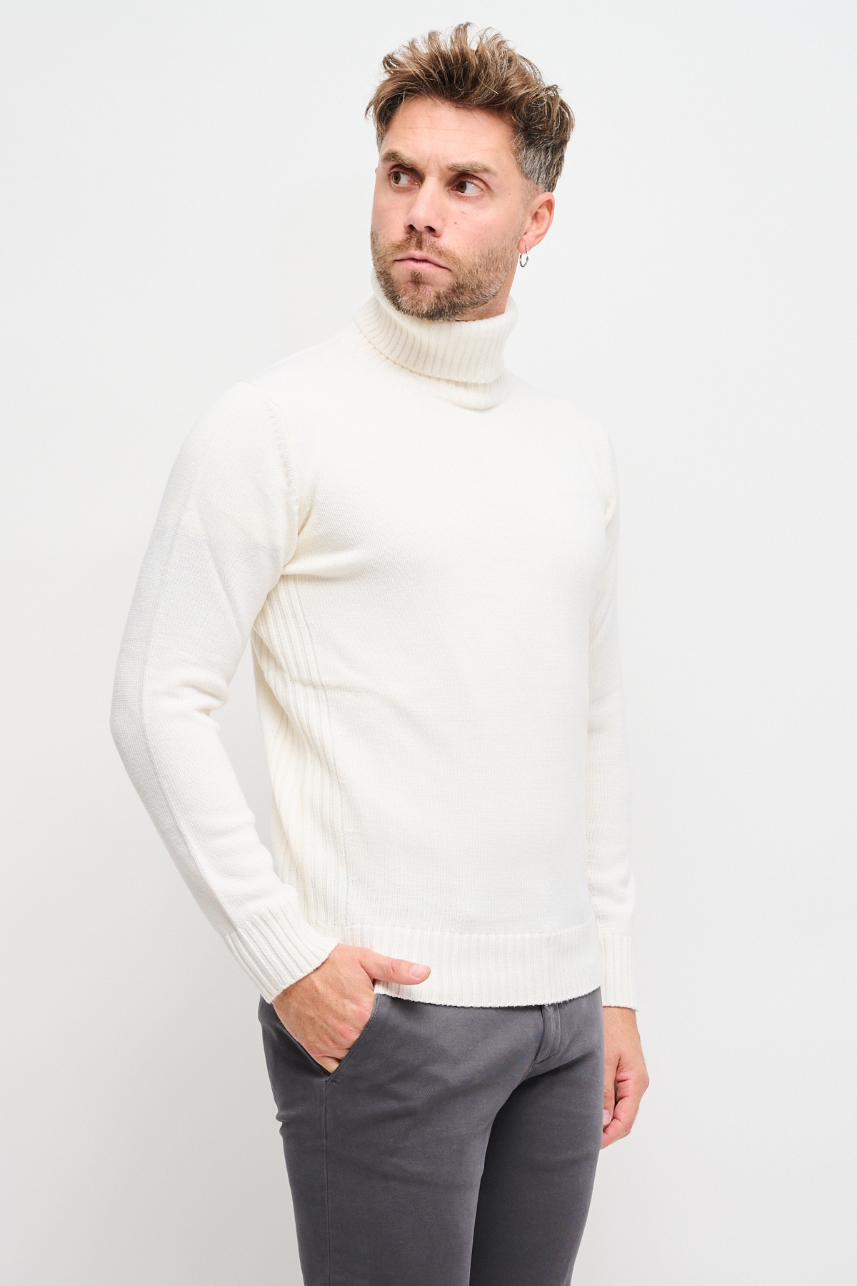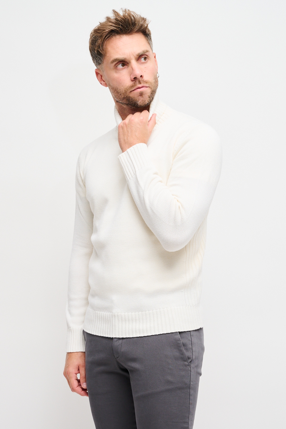 Maglia in lana; Collo Alto; Maniche lunghe; Polsini e fondo a costine; Made in Italy; Composizione: 100% Lana