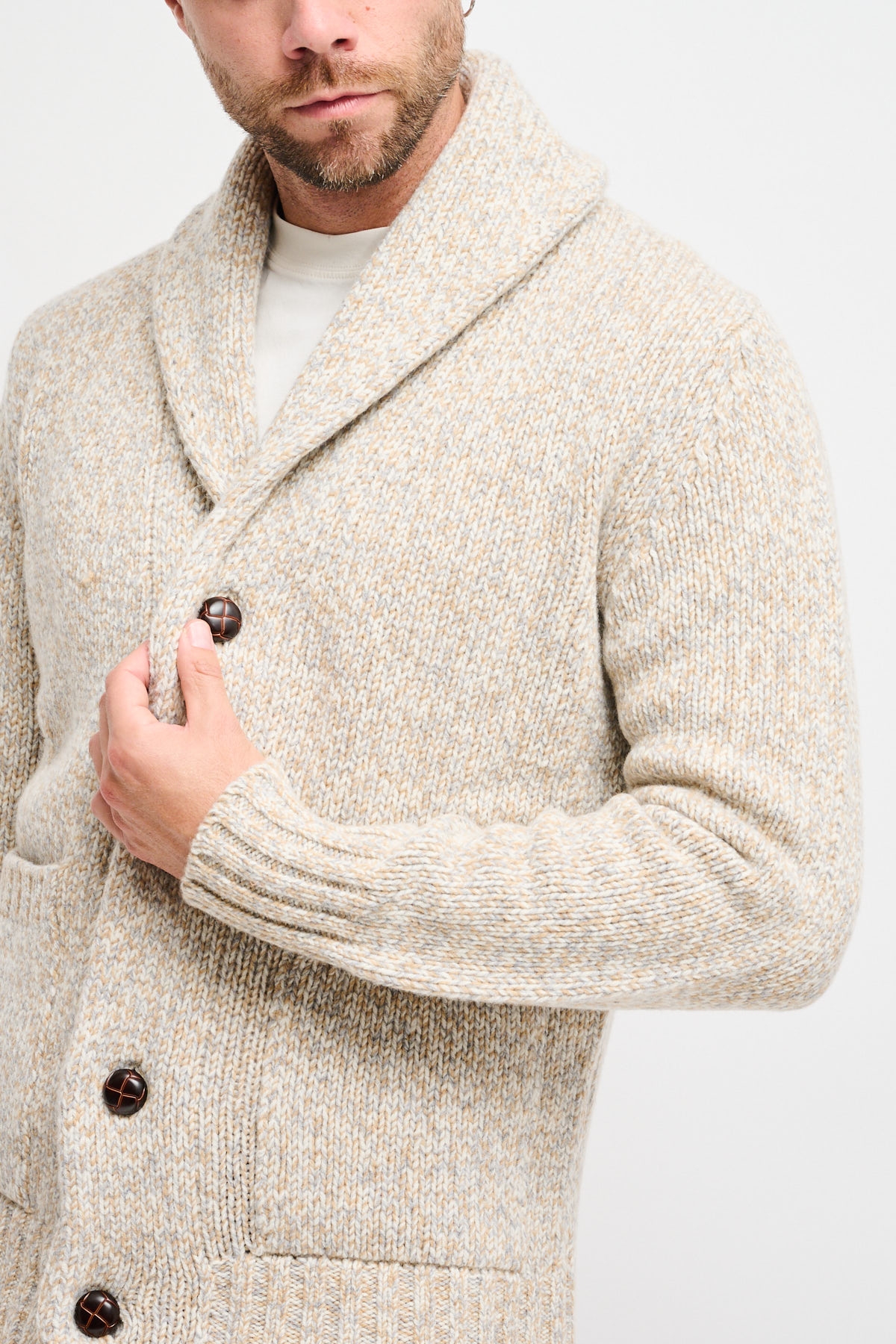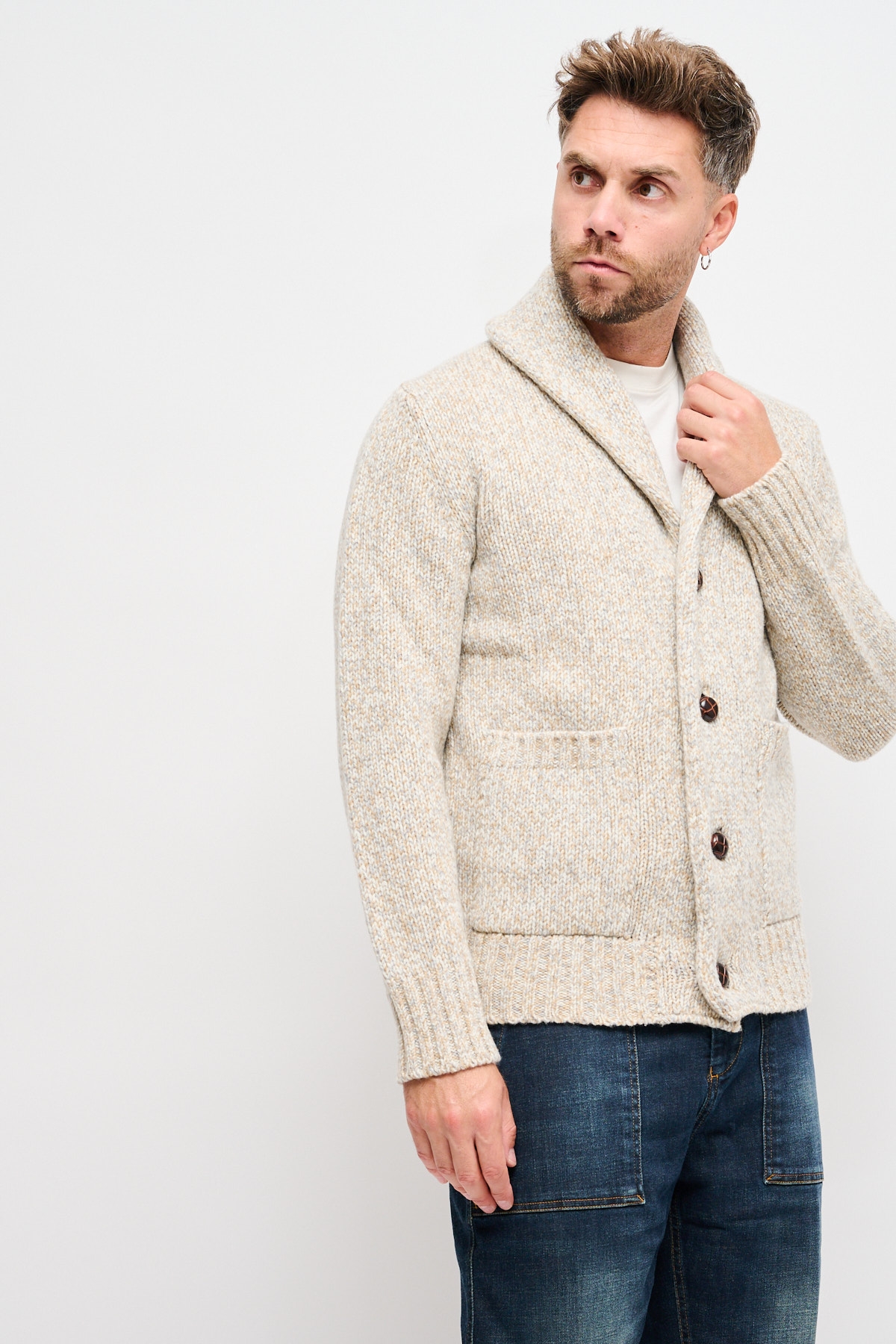 Realizzato con una ricca combinazione di lana e poliammide, questo cardigan offre un comfort termico superiore, rendendolo ideale per affrontare le giornate più fredde con stile. Il suo design classico e versatile si adatta perfettamente a qualsiasi look, dall'informale al raffinato. La chiusura con bottoni e la texture sofisticata aggiungono un tocco di eleganza senza tempo.