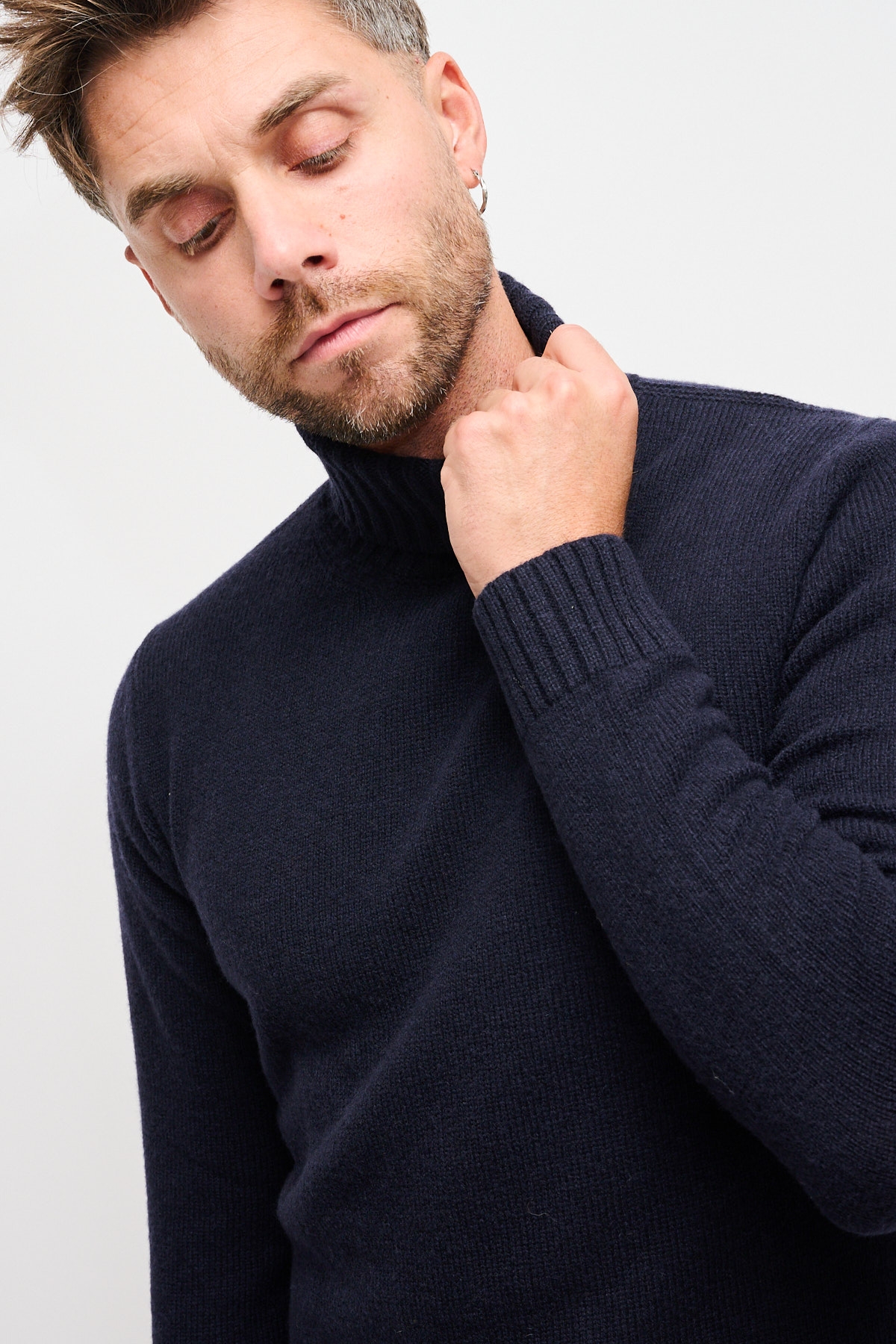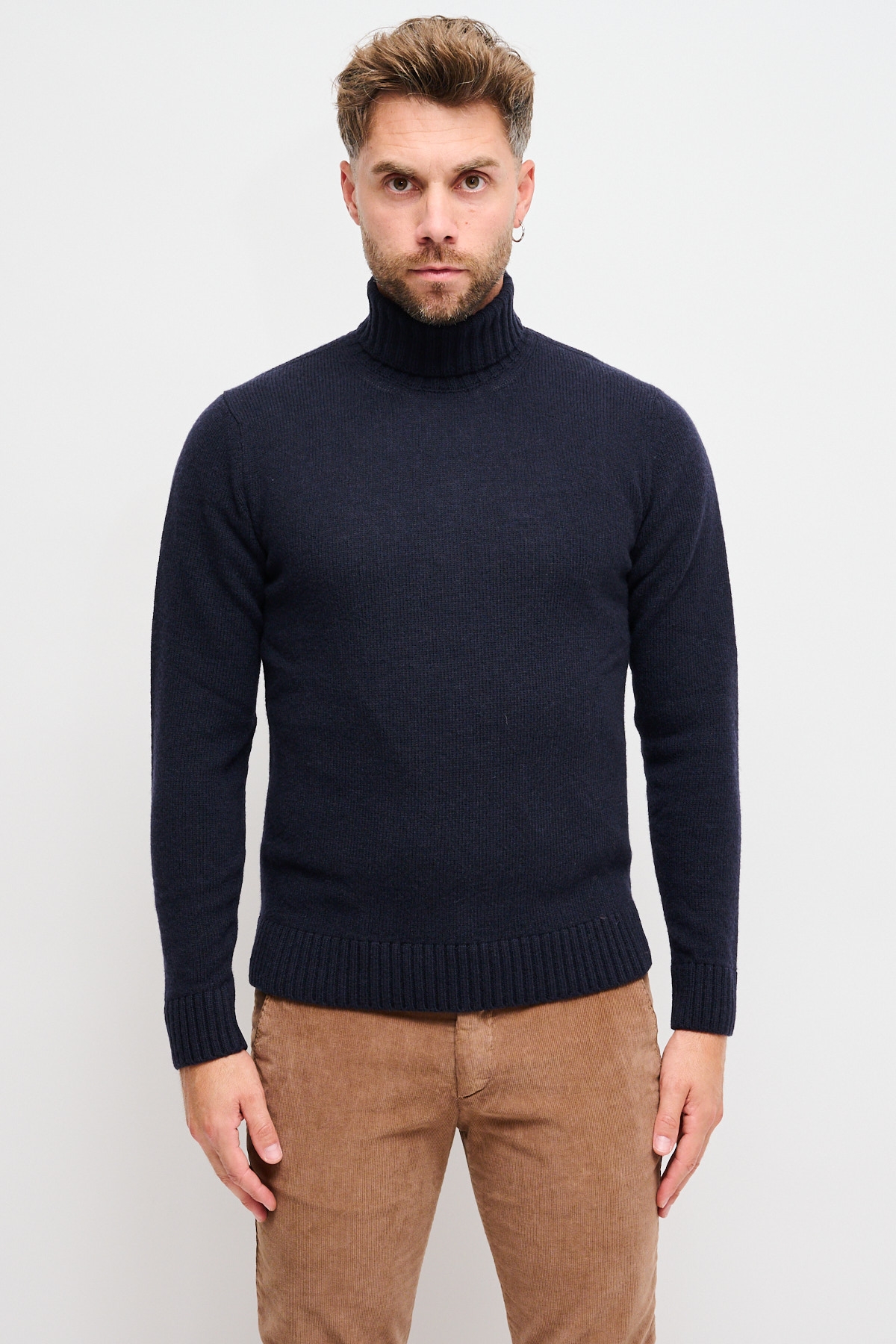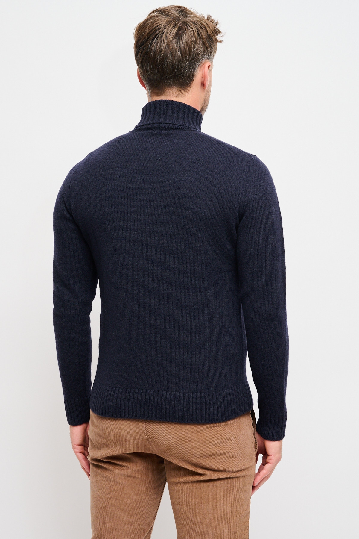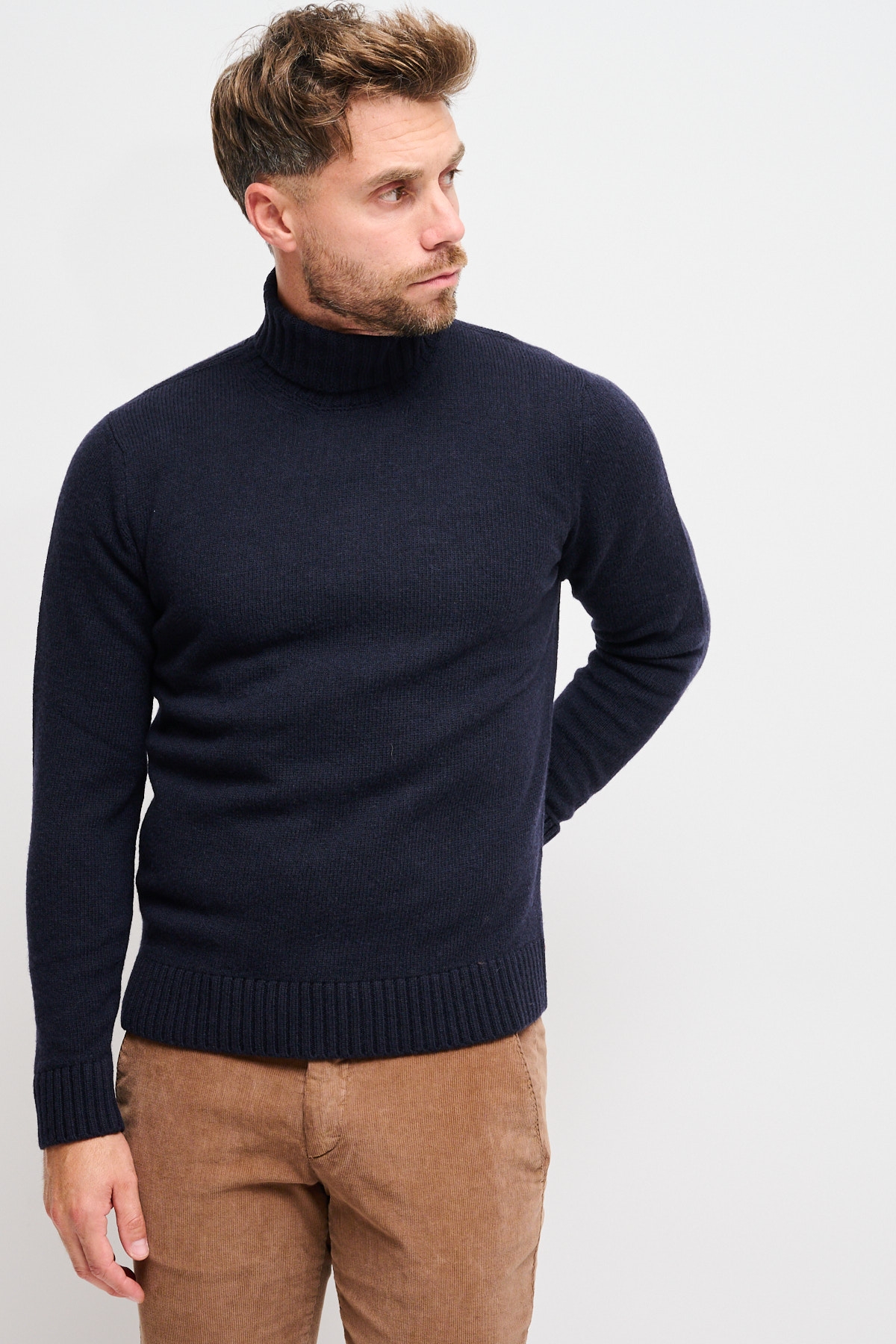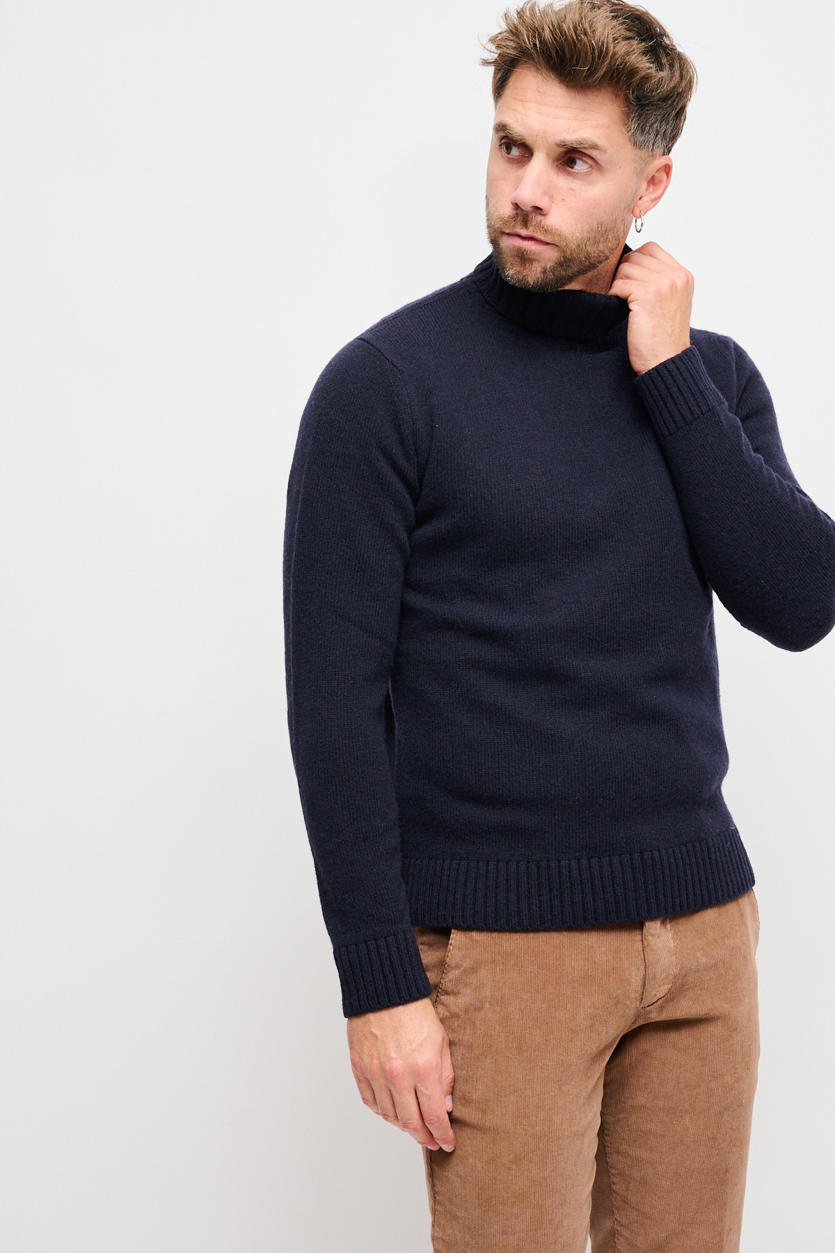 Maglioncino a collo alto realizzato in 100% lana vergine.