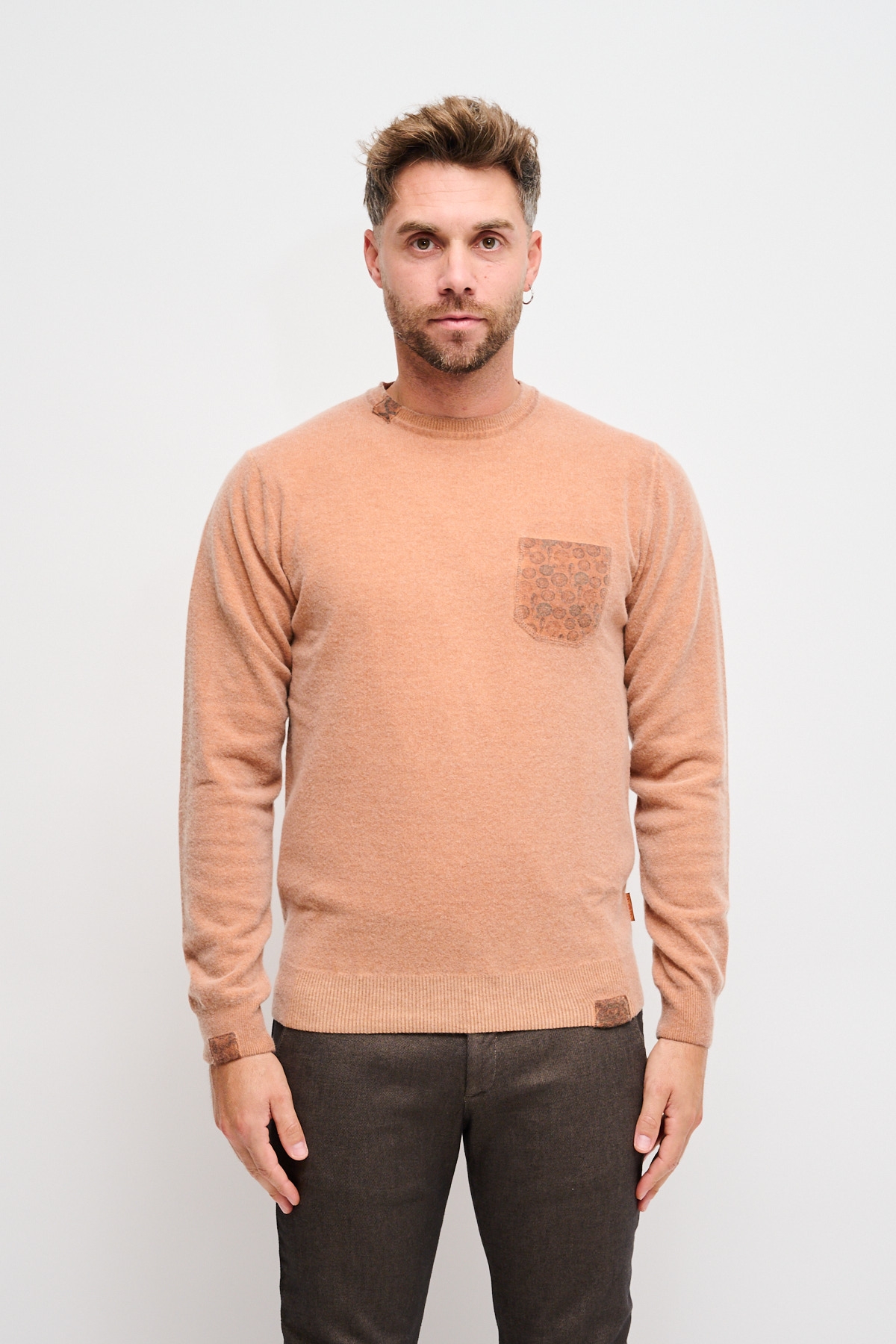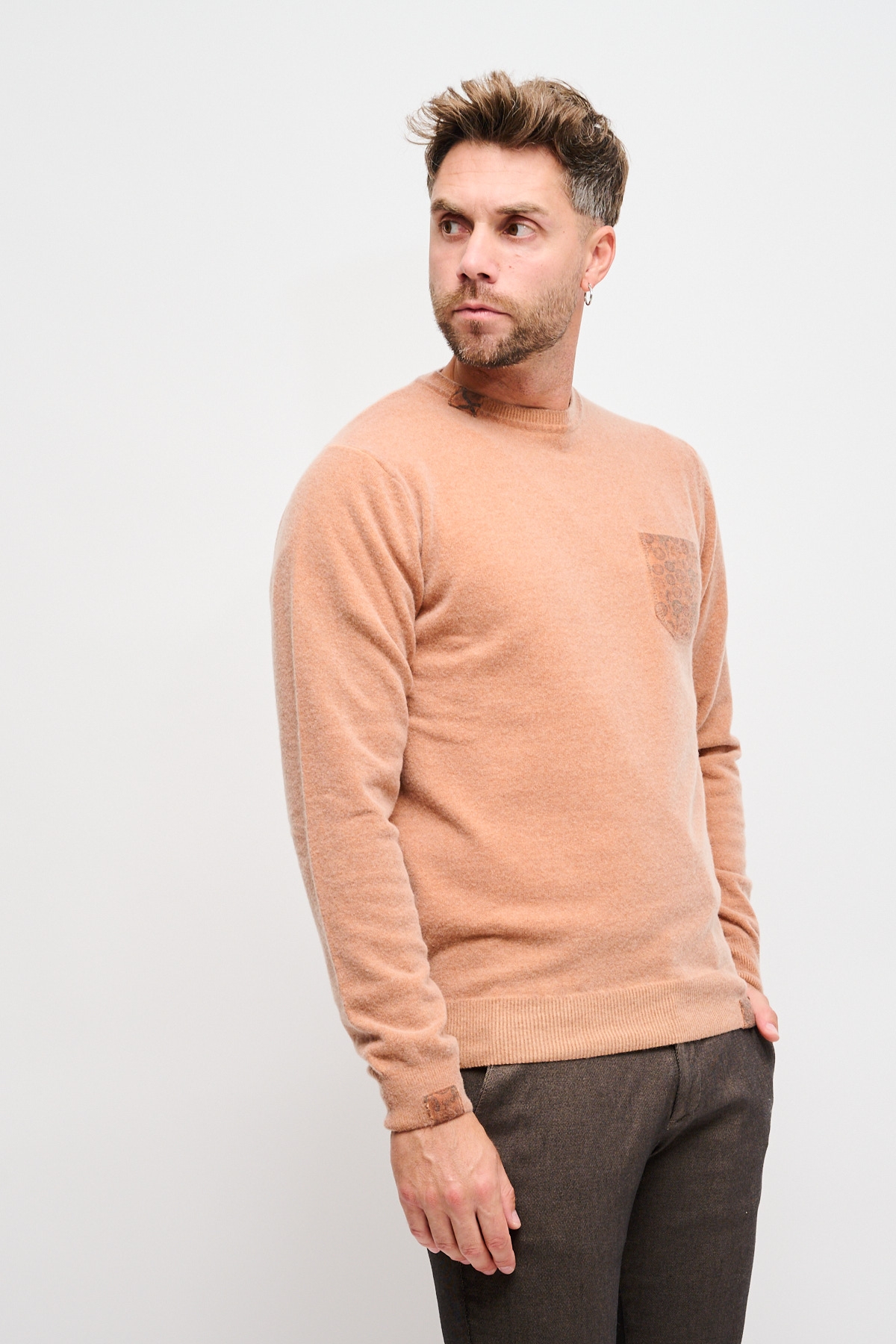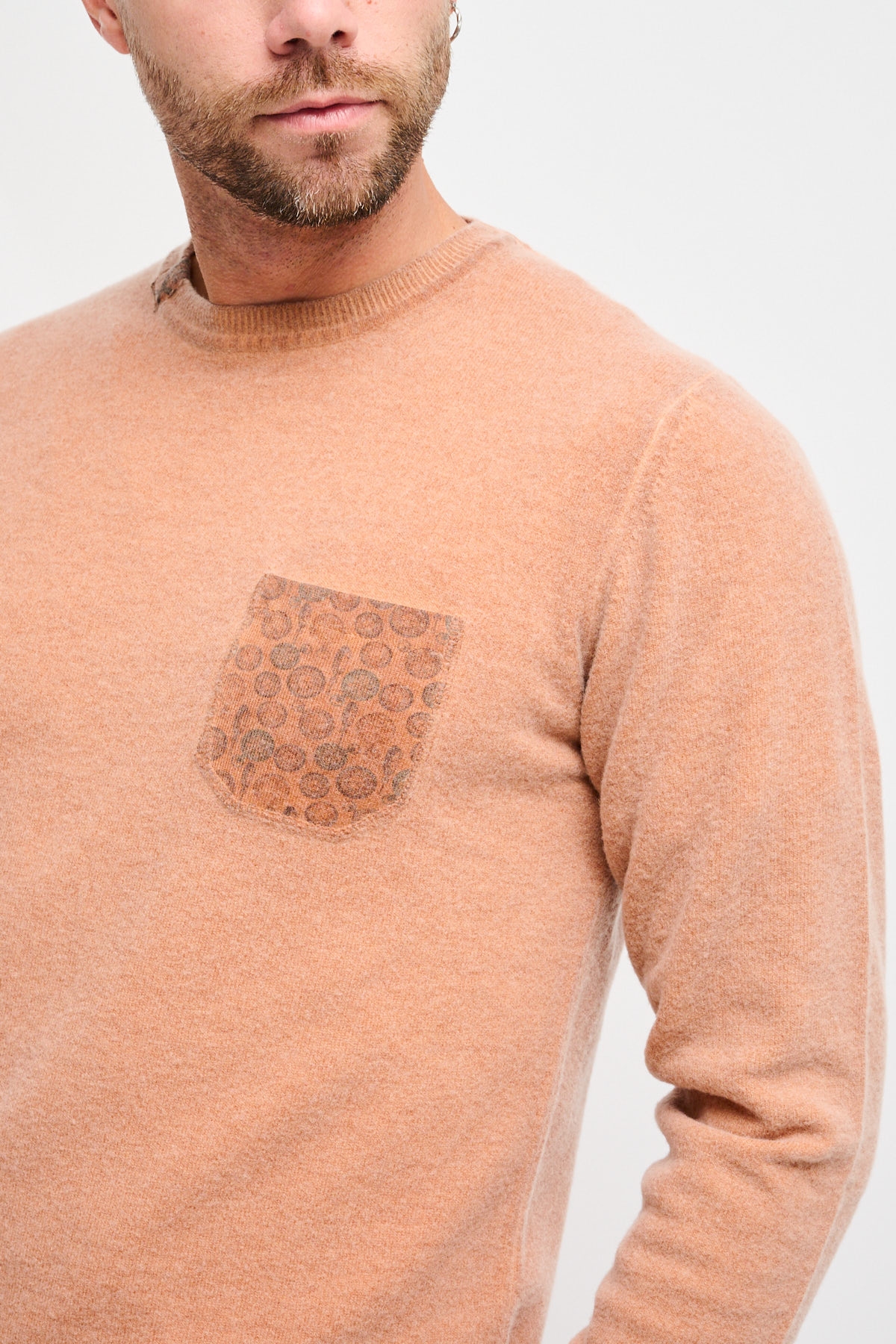 Maglia uomo in lana, tinta unita con girocollo tondo e caratterizzata da dettaglio taschina sul petto.