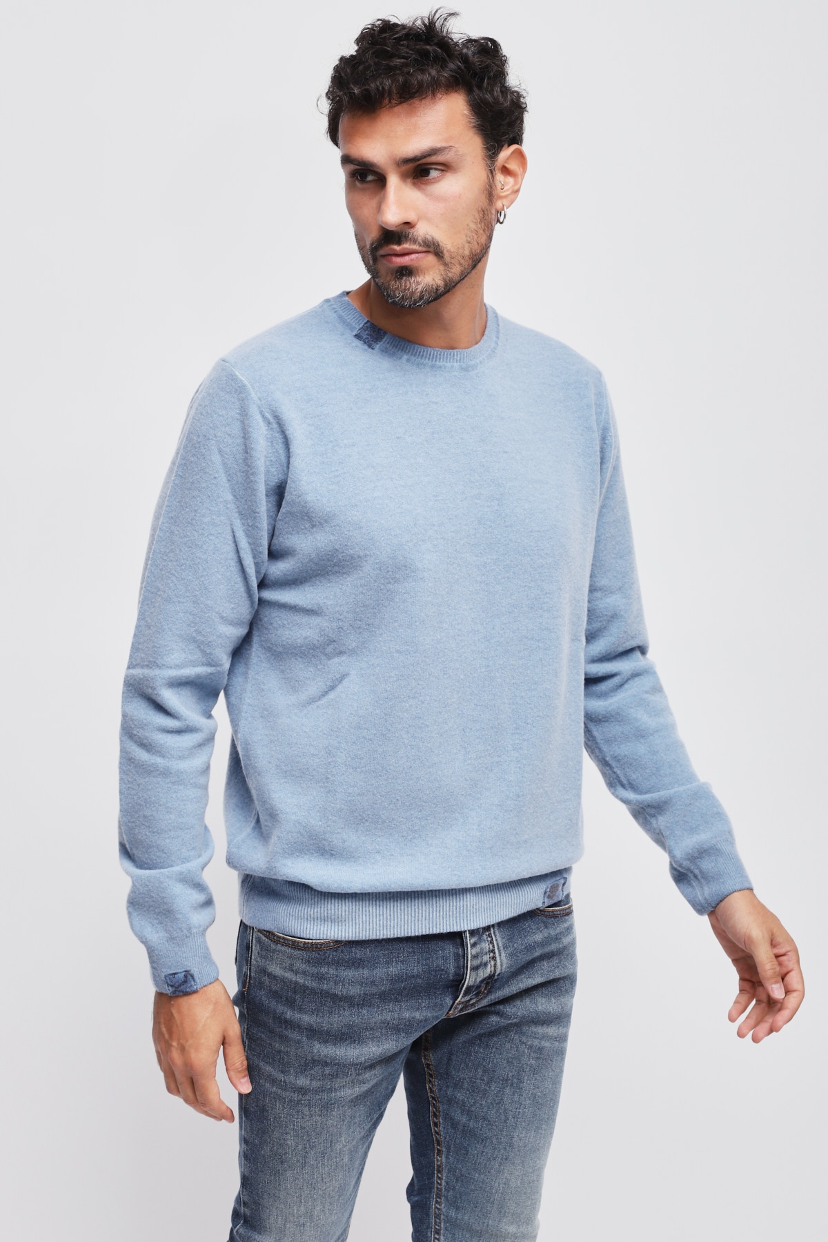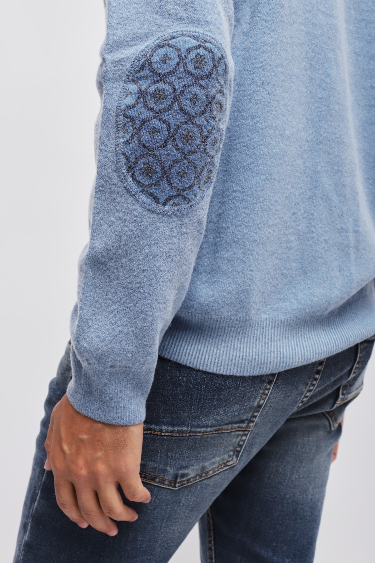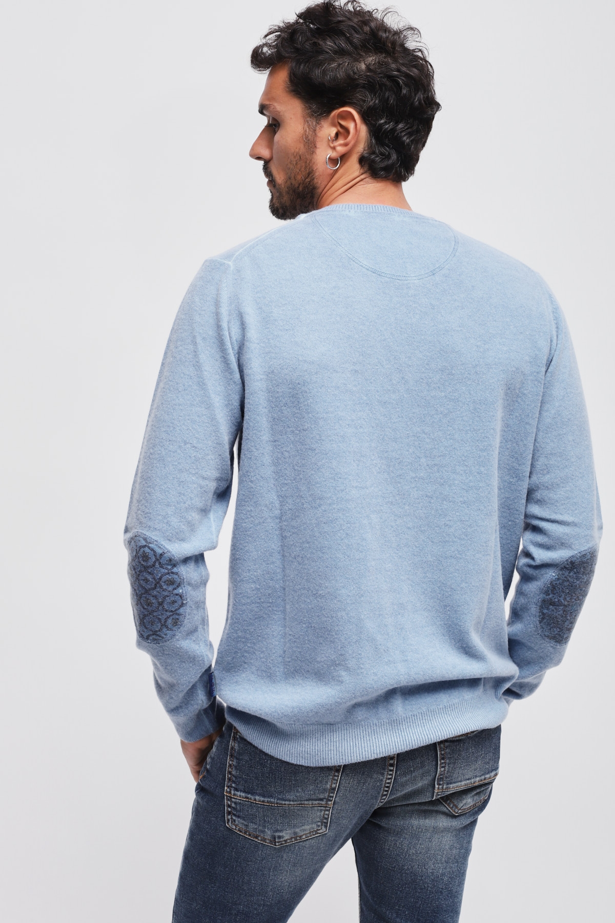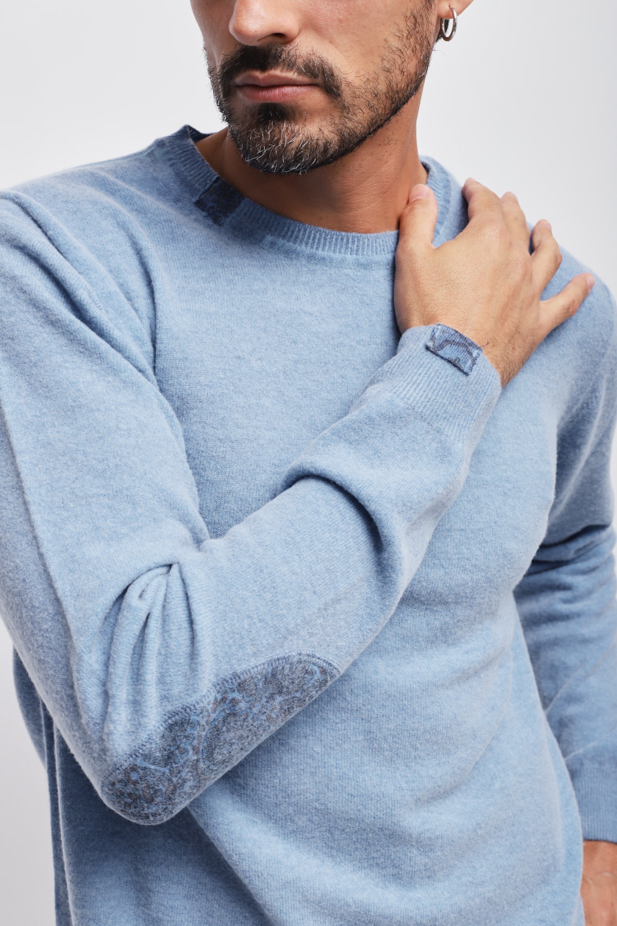 Maglia Uomo in lana, tinta unita con girocollo tondo e caratterizzata da dettagli a patch applicati sul capo.