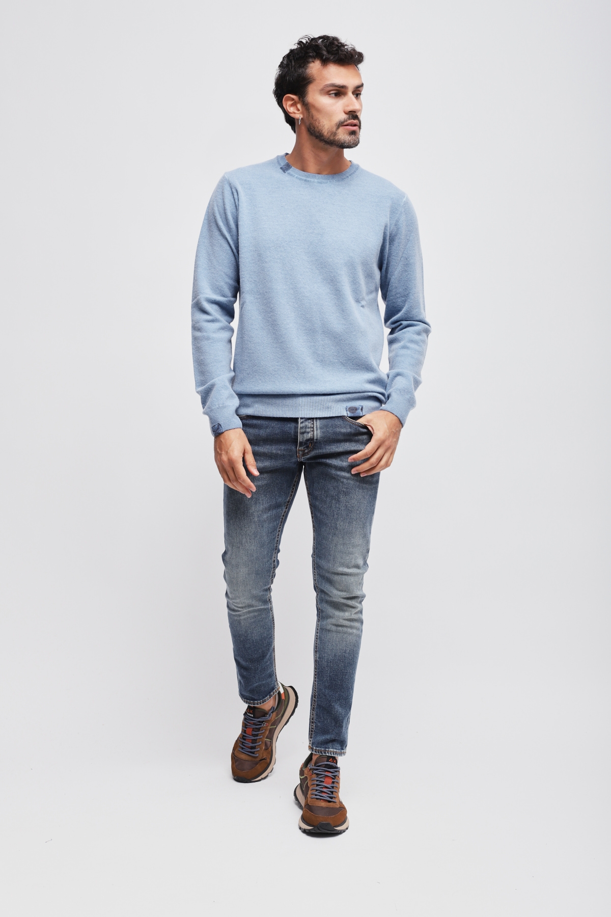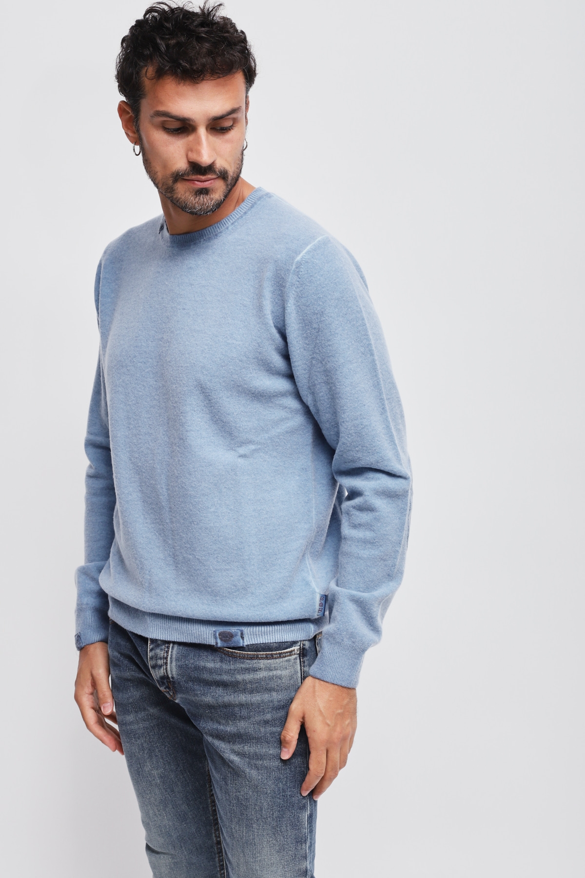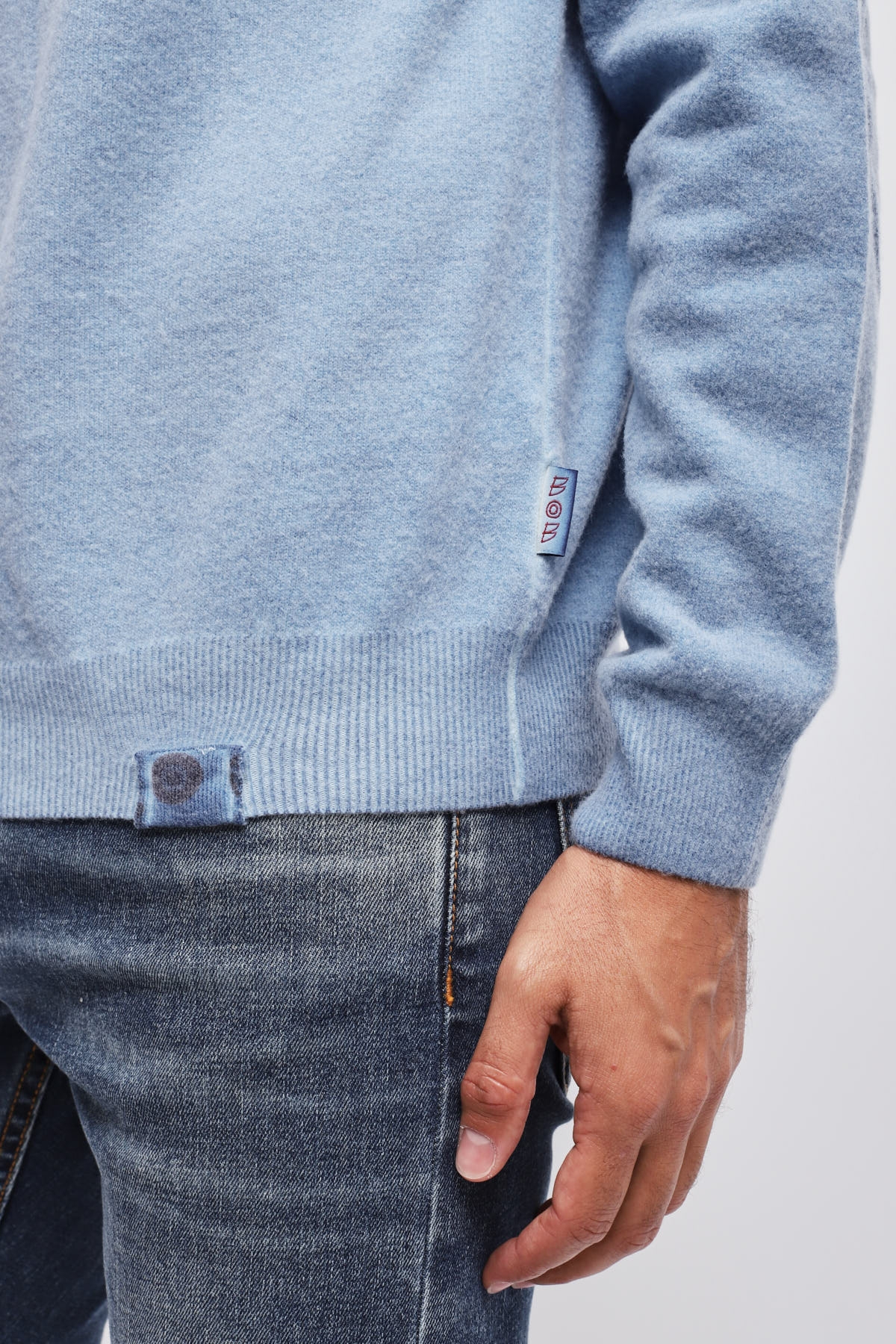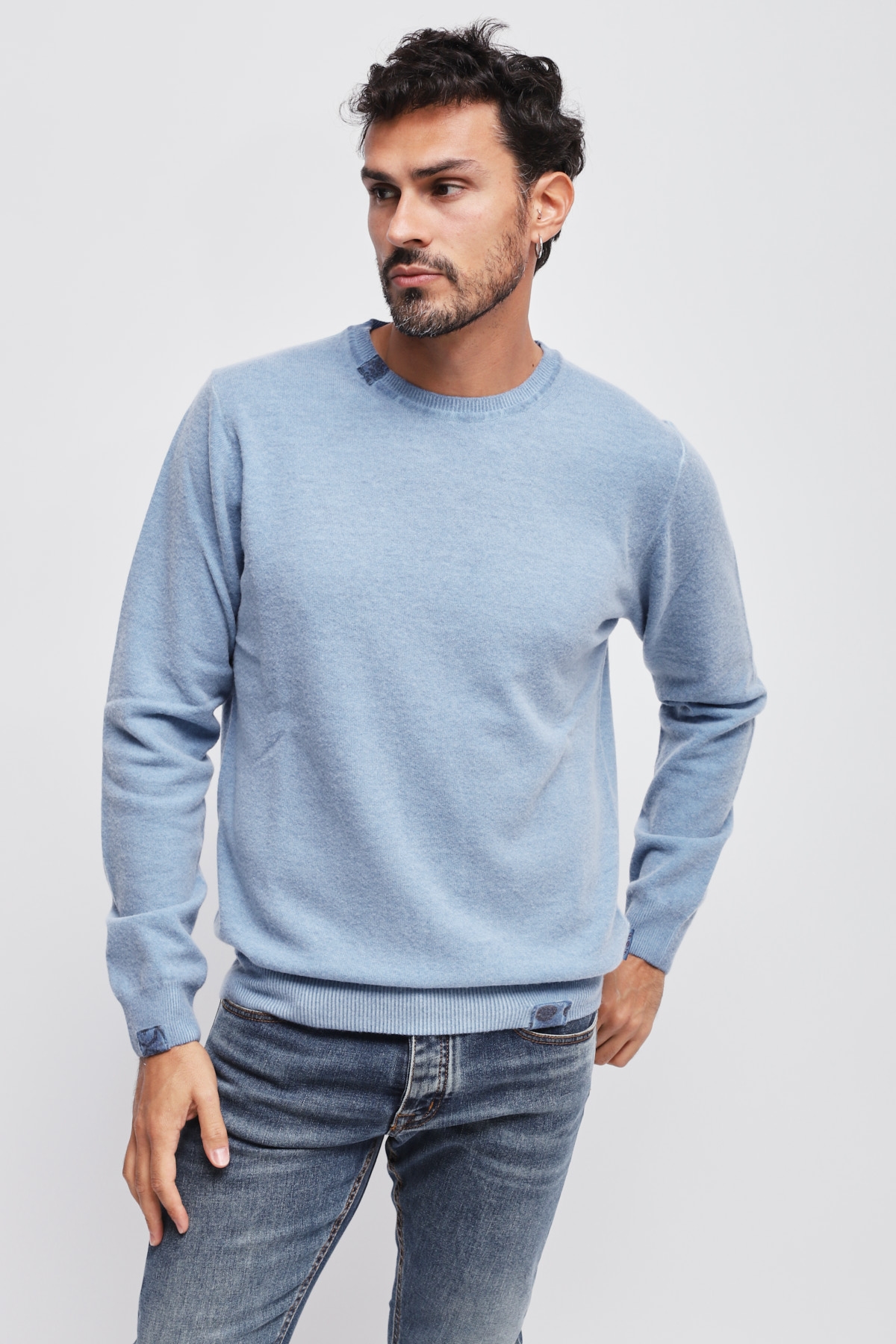 Maglia Uomo in lana, tinta unita con girocollo tondo e caratterizzata da dettagli a patch applicati sul capo.