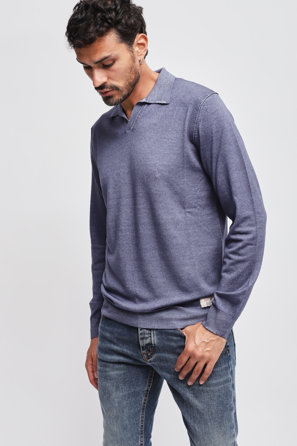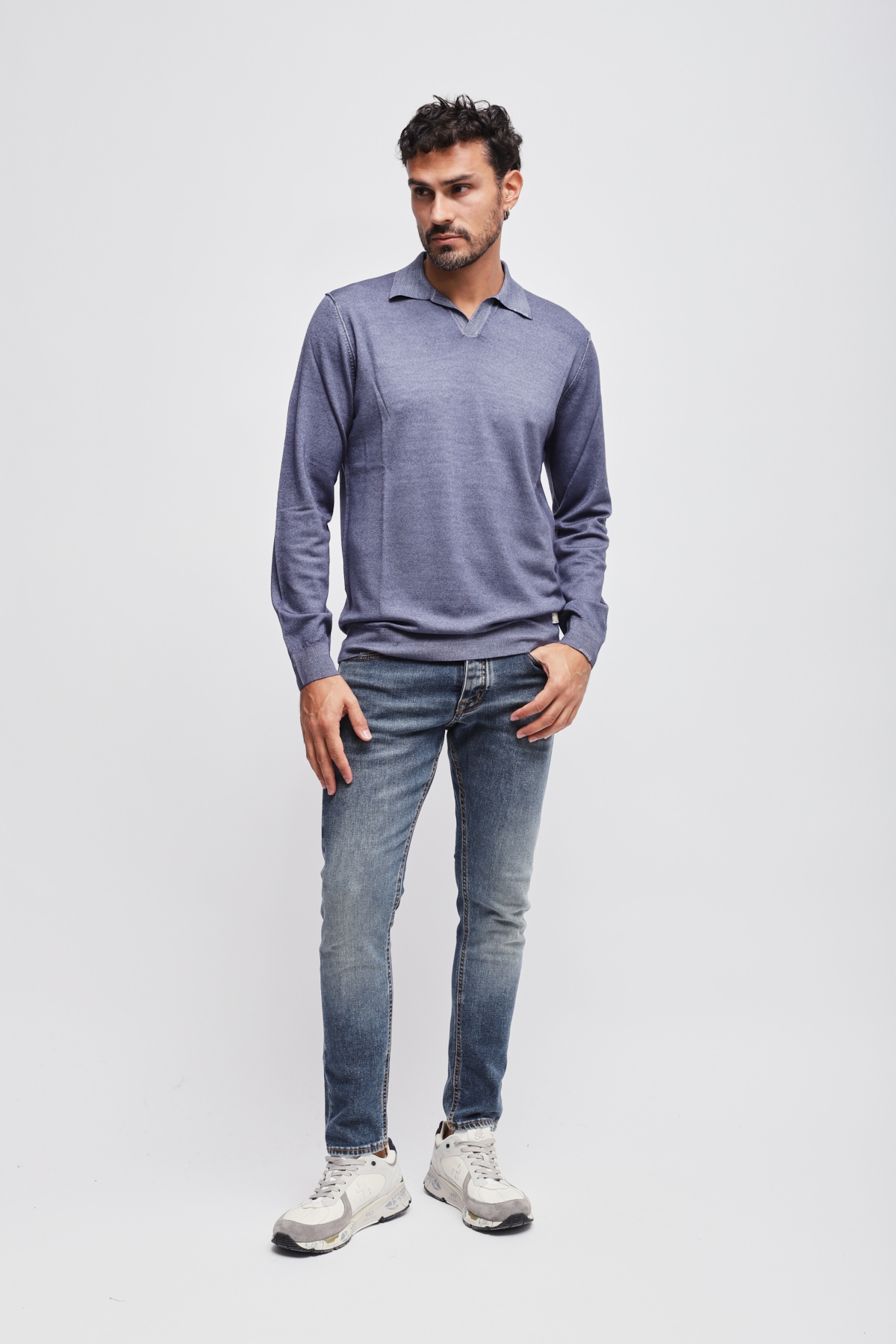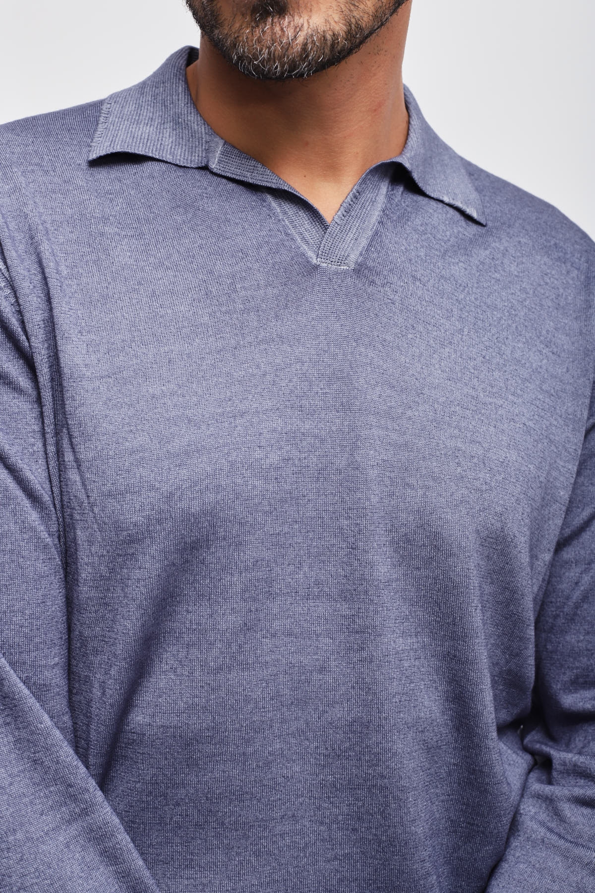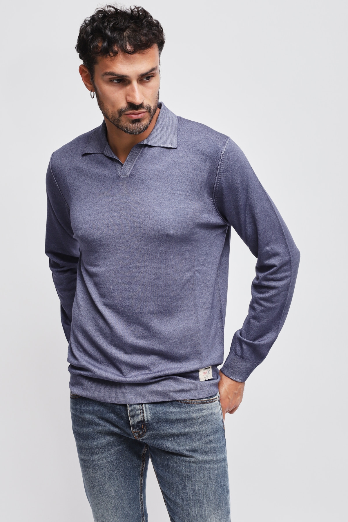 Polo a maniche lunghe, senza bottoni, in pura lana vergine merino.