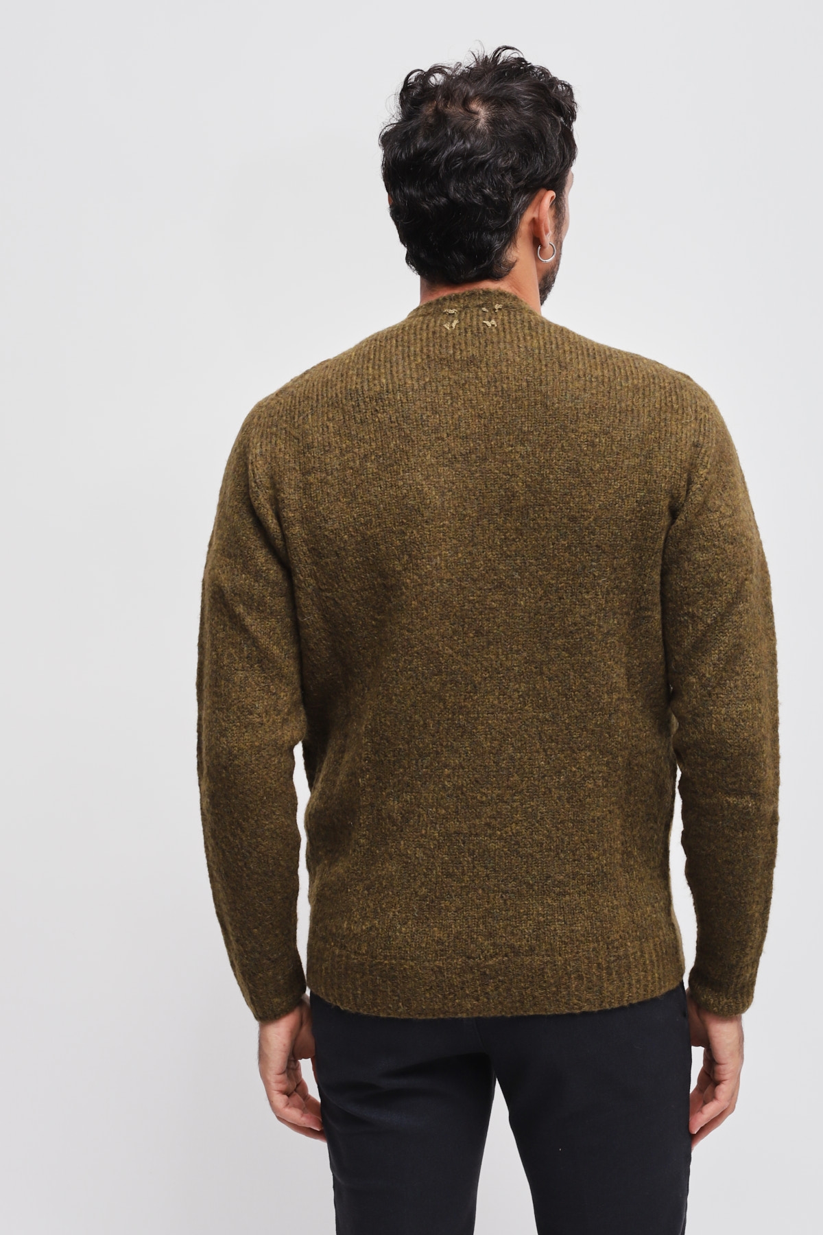 Maglia girocollo da uomo realizzata in morbidissima lana. Il collo e i polsini sono a coste, così come il fondo. Sono presenti piccoli dettagli ricamati a mano che contraddistinguono lo stile originale dei capi BoB Company.