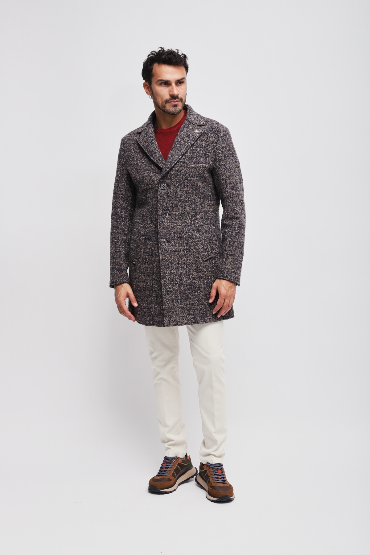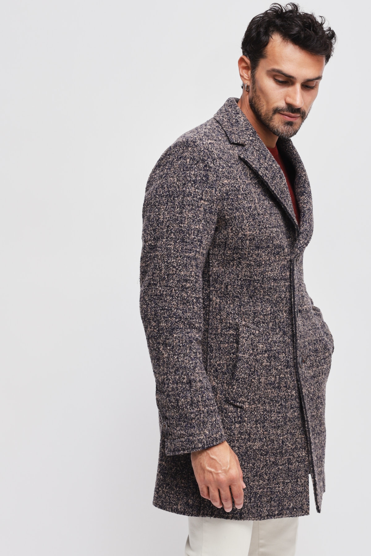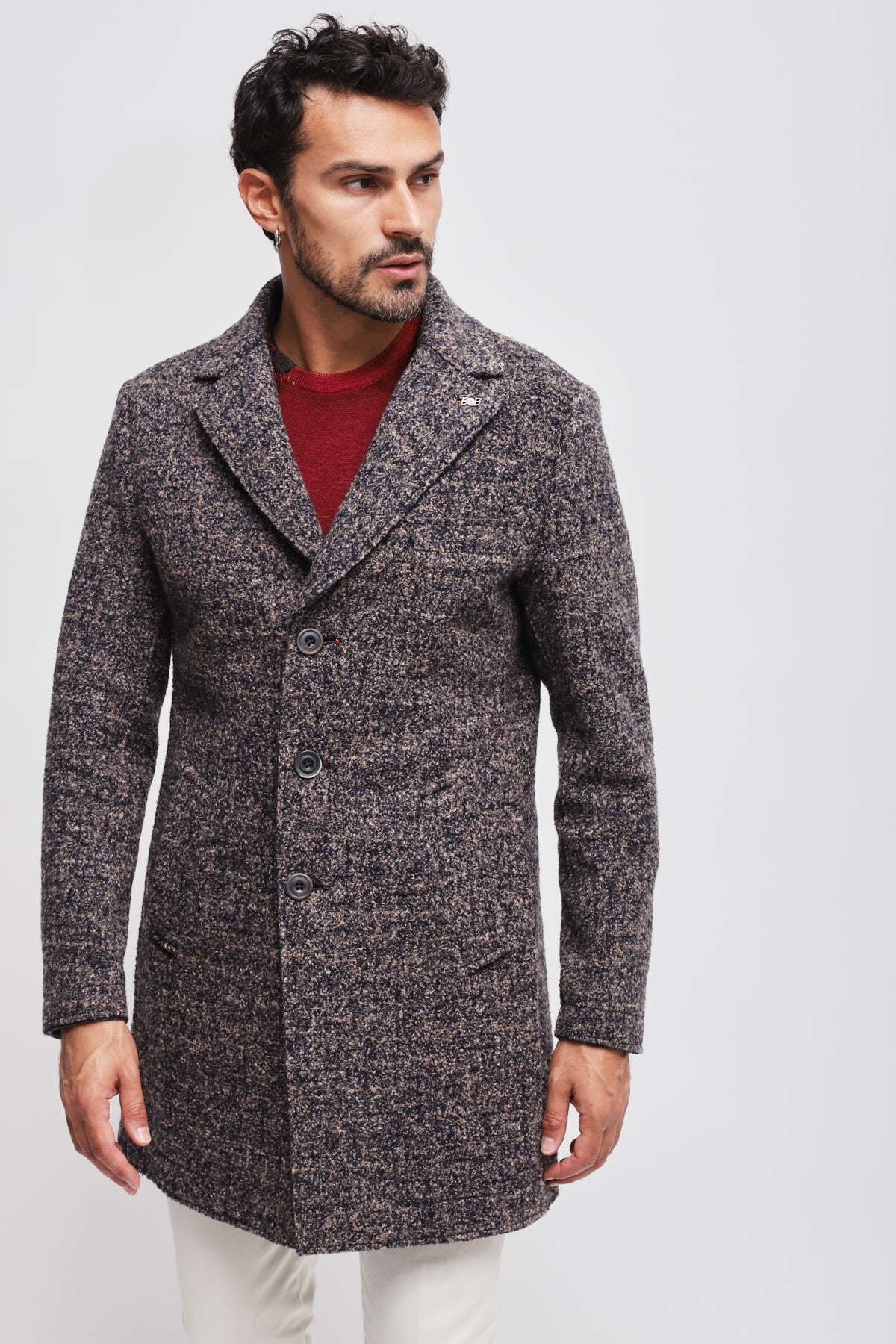 Il cappotto monopetto Andy di Bob Company è realizzato in 43% viscosa, 41% poliestere, 15% lana vergine e 1% elastan e presenta chiusura con bottoni e due tasche laterali a filetto. Vestibilità slim.