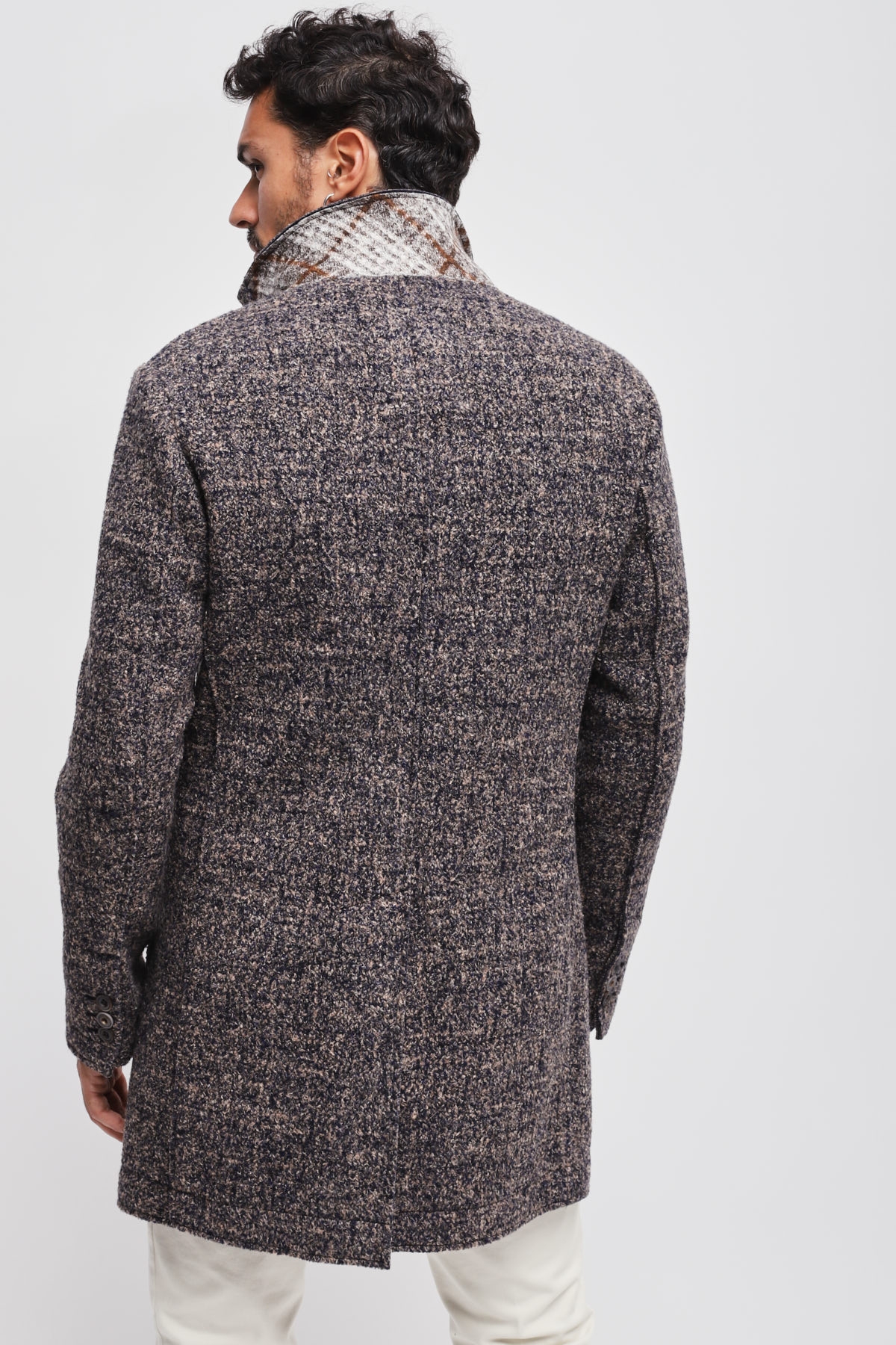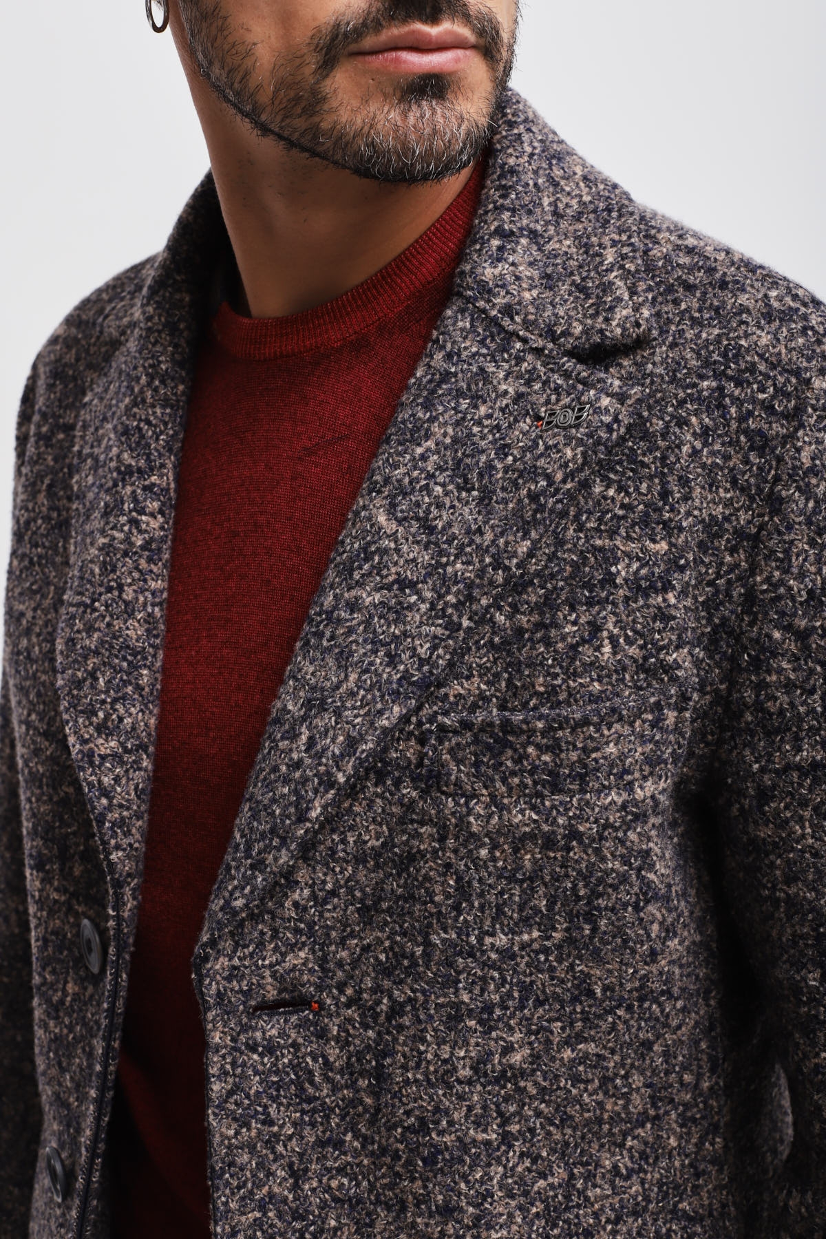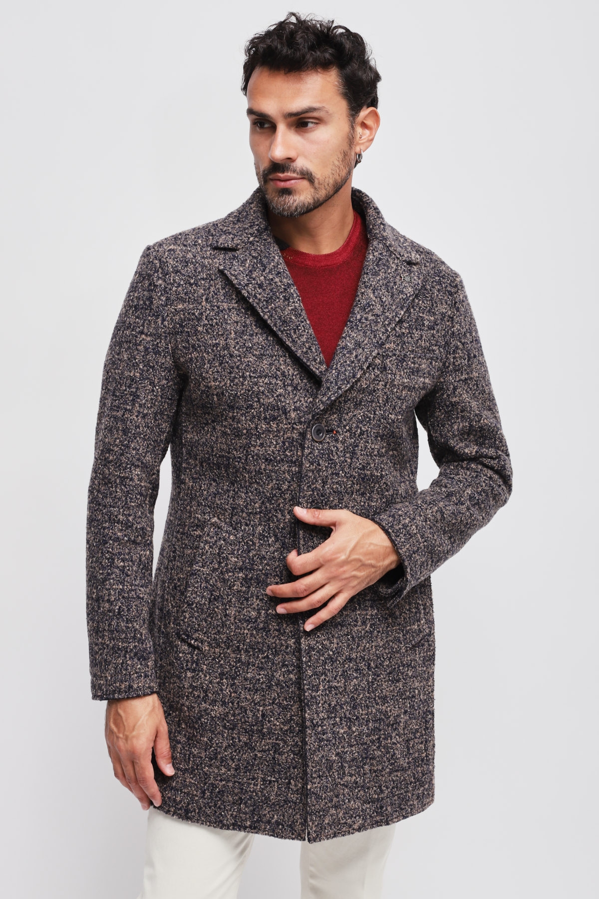 Il cappotto monopetto Andy di Bob Company è realizzato in 43% viscosa, 41% poliestere, 15% lana vergine e 1% elastan e presenta chiusura con bottoni e due tasche laterali a filetto. Vestibilità slim.