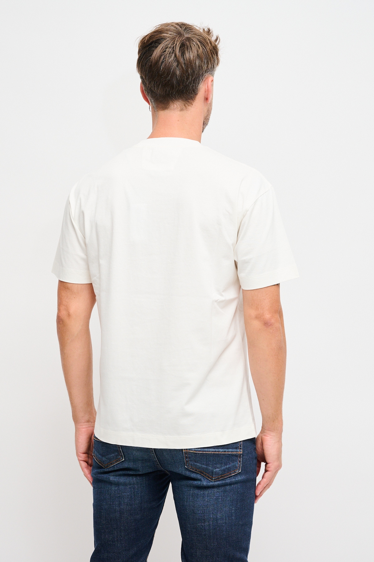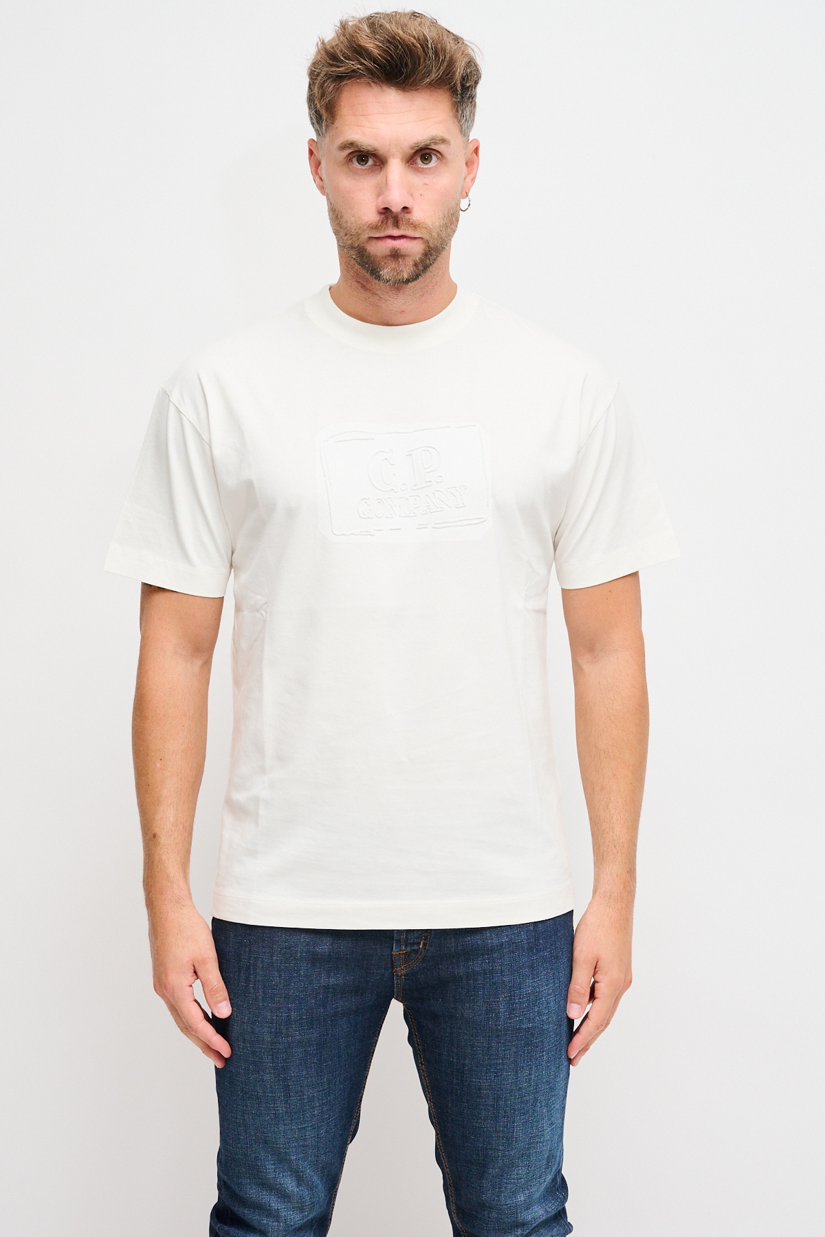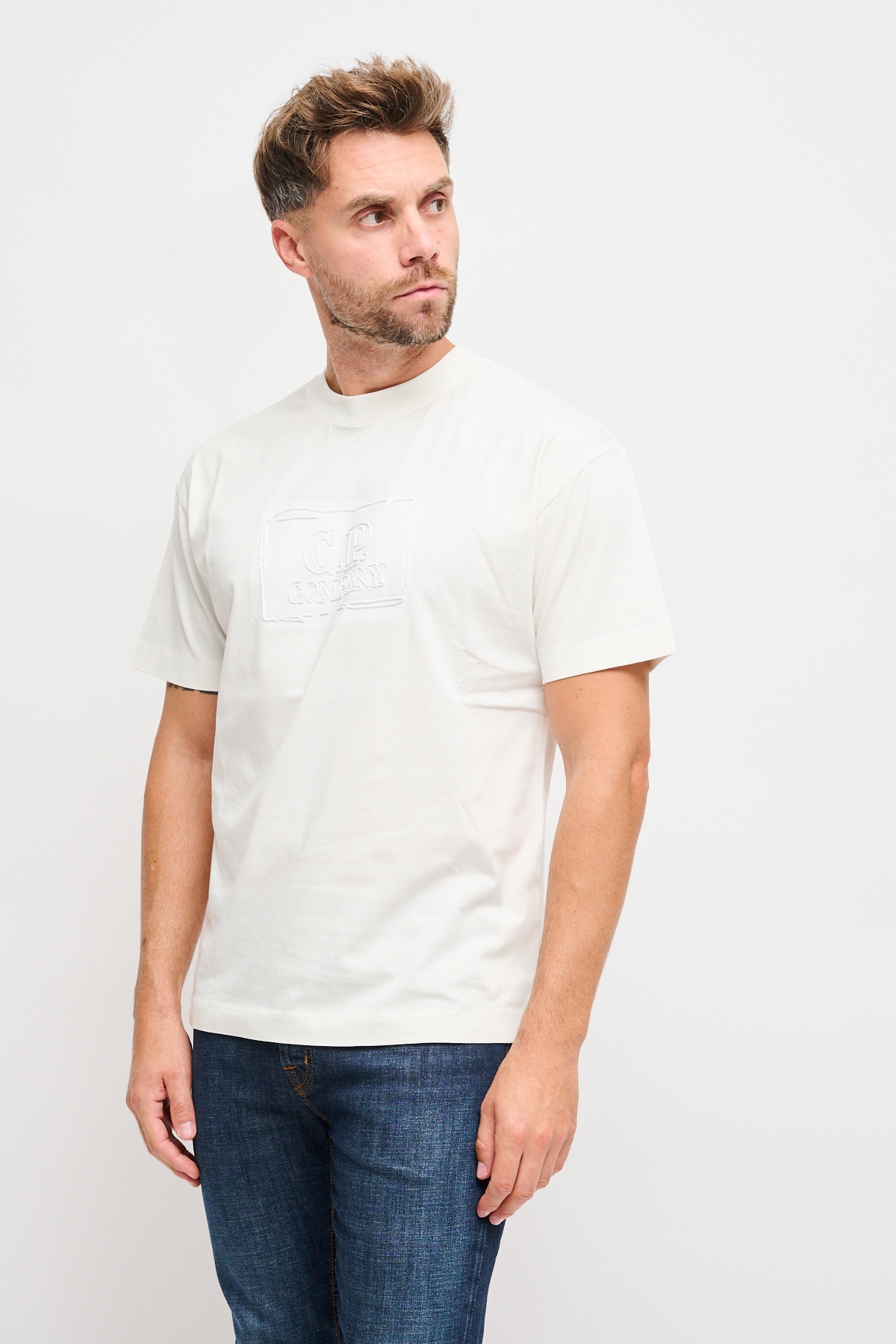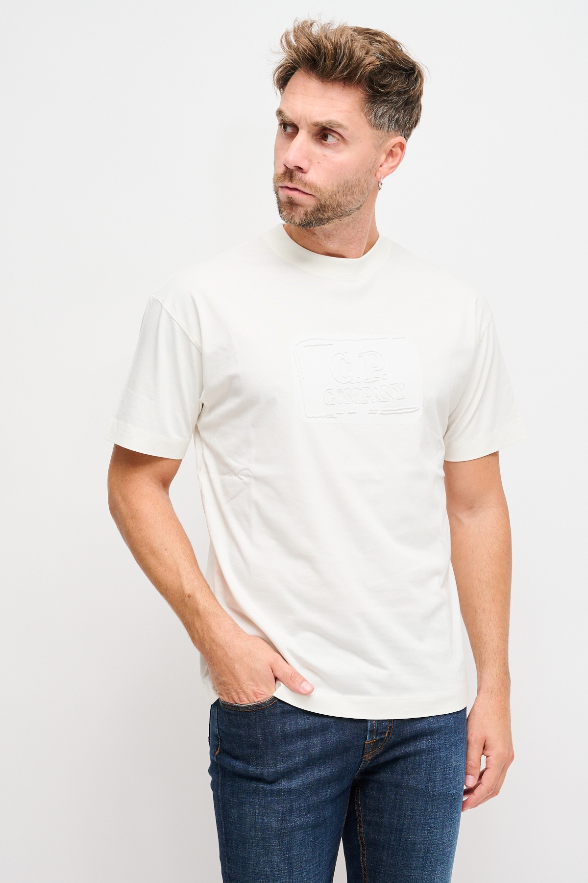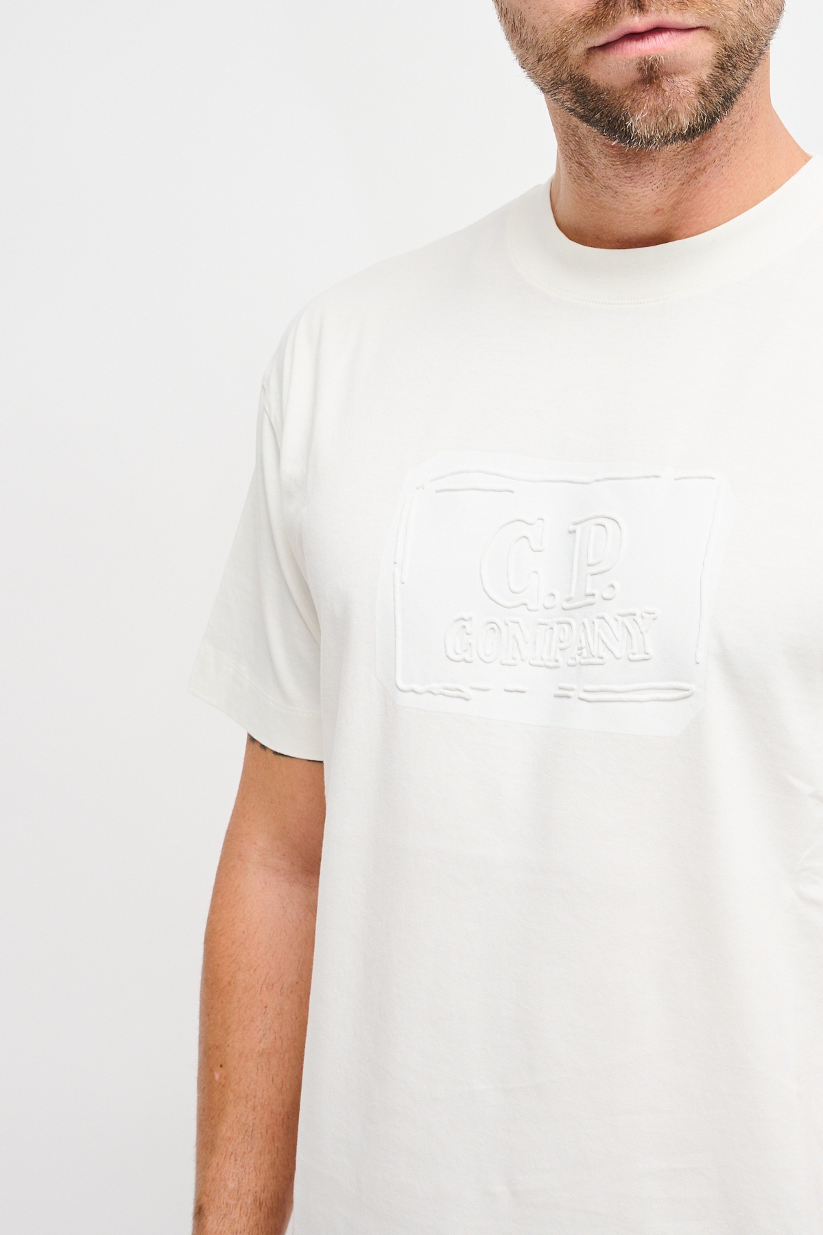 Ibridatori di silhouette militari, da lavoro e sportive d'archivio, l'italiano C. P. Company ha un'aura prolifica grazie alle sue interpretazioni anticonformiste di classici dell'abbigliamento maschile funzionale. Bianco - 100% cotone - Girocollo a coste - Dettaglio logo in rilievo