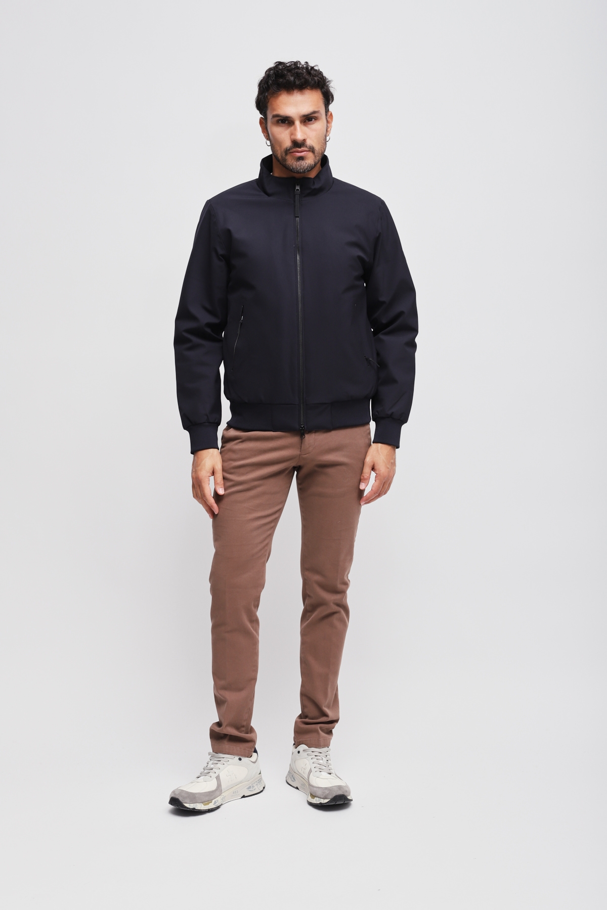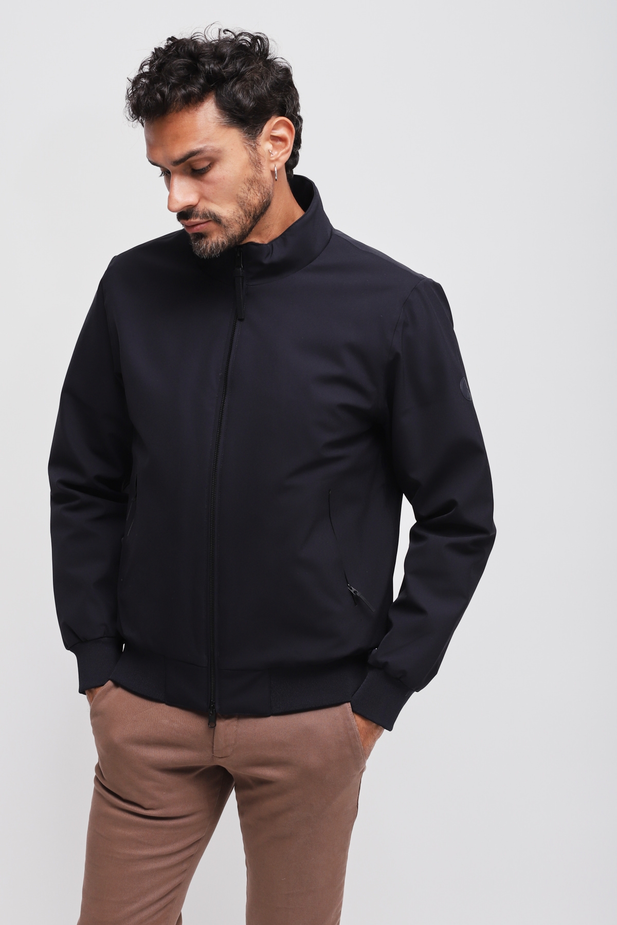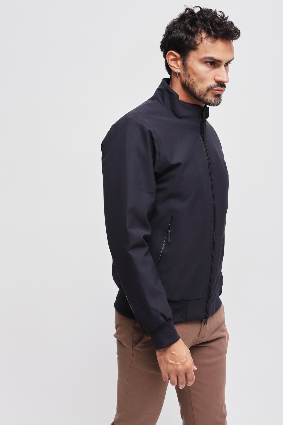 Giubbotto People of Shibuya in jersey stretch Blu scuro. Tessuto idrorepellente. Collo alto. Tasche con zip. Tasca interna. Chiusura con zip doppio cursore. Polsi e fondo in maglia a nido d'ape. Sfoderato.