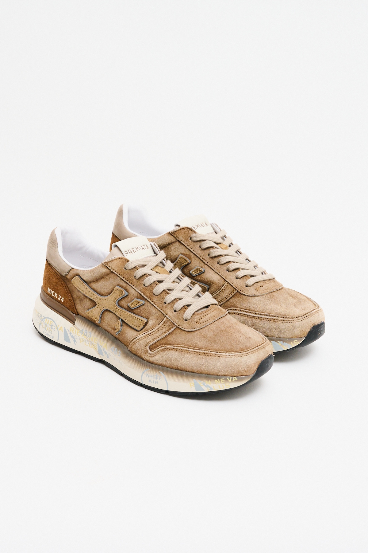 Le sneakers Mick sono realizzate con un raffinato mix di materiali e pellami di alta qualità, nelle eleganti tonalità del nero con dettagli ton sur ton. Questo modello, dal design casual e sofisticato, è arricchito dall'iconico logo Premiata e da uno spoiler sulla suola che aggiunge carattere. La suola, alta 4,2 cm, e il fusbet interno da 28,5 cm offrono un comfort ideale e un look moderno e versatile.