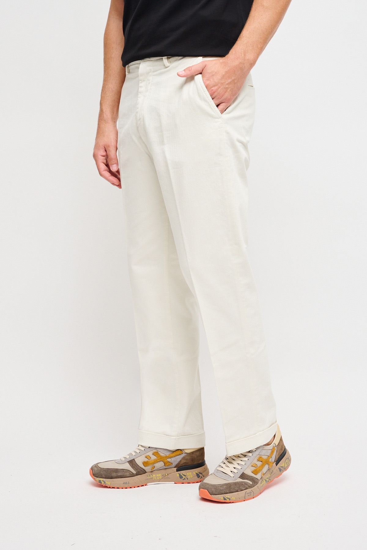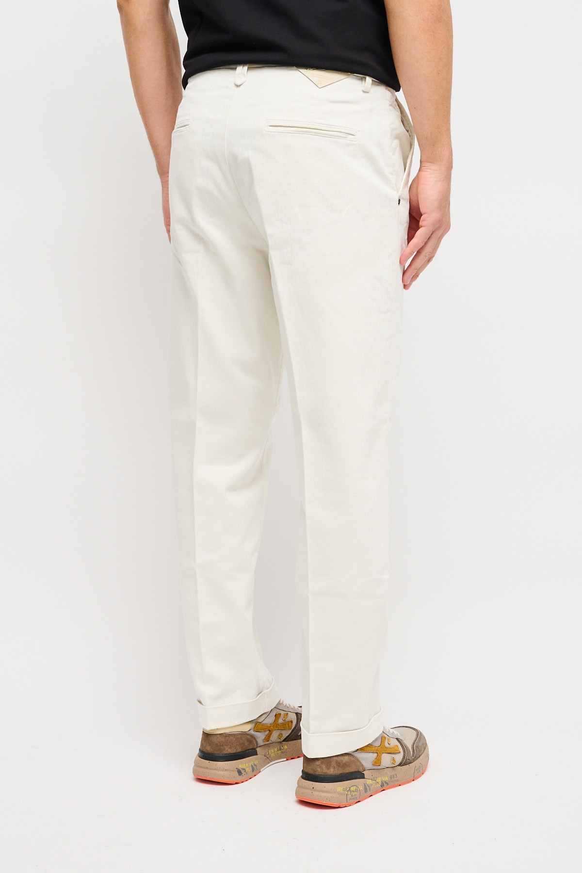Realizzati in resistente twill di cotone, questi pantaloni offrono una vestibilità comoda sui fianchi con una leggera affusolatura sull'orlo per un tocco moderno. Progettati con dettagli pratici come tasche oblique, due tasche posteriori applicate e chiusura con bottone e zip con passanti per cintura, sono un capo versatile pensato per l'uso quotidiano.