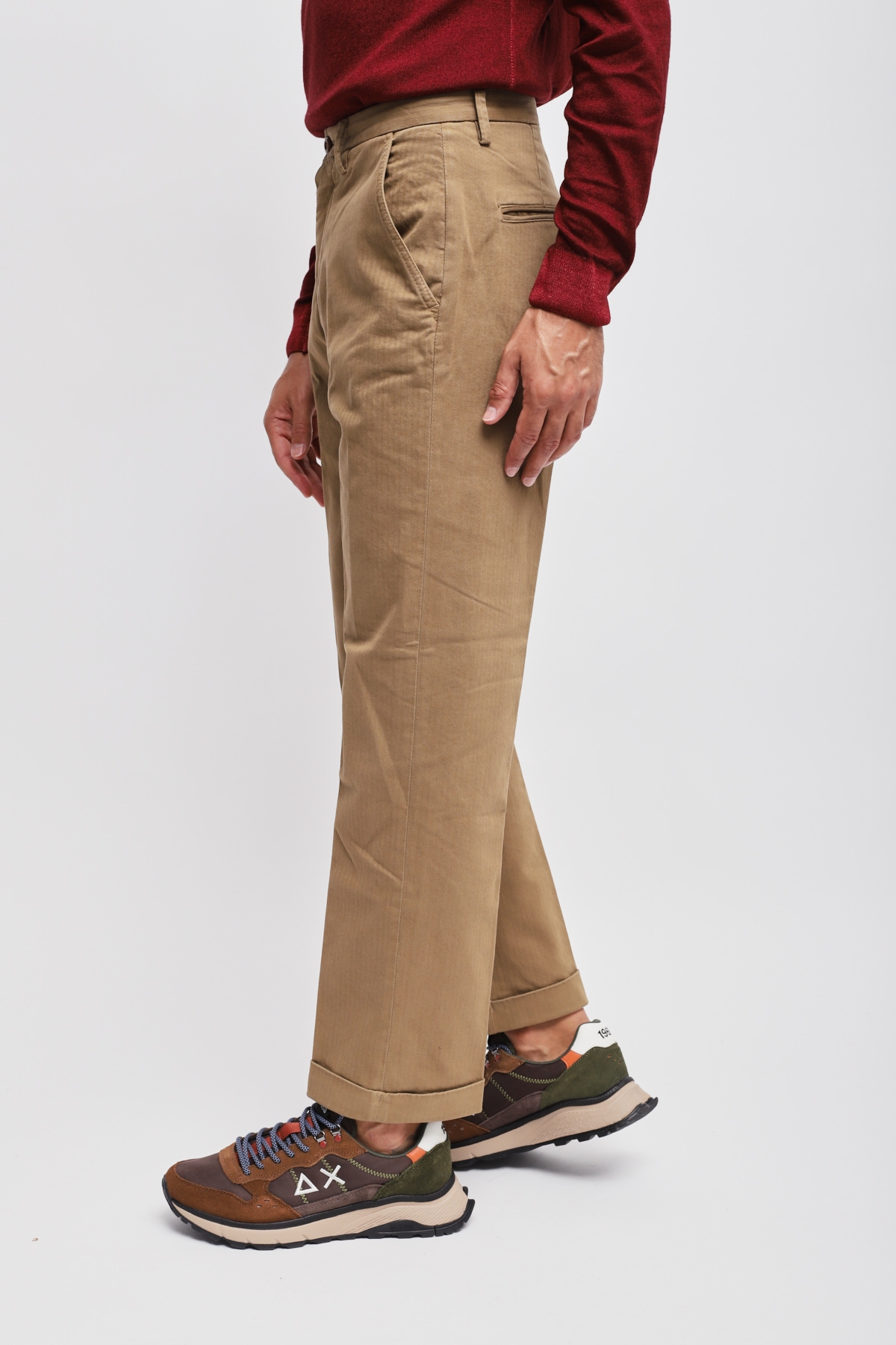 Realizzati in resistente twill di cotone, questi pantaloni offrono una vestibilità comoda sui fianchi con una leggera affusolatura sull'orlo per un tocco moderno. Progettati con dettagli pratici come tasche oblique, due tasche posteriori applicate e chiusura con bottone e zip con passanti per cintura, sono un capo versatile pensato per l'uso quotidiano.