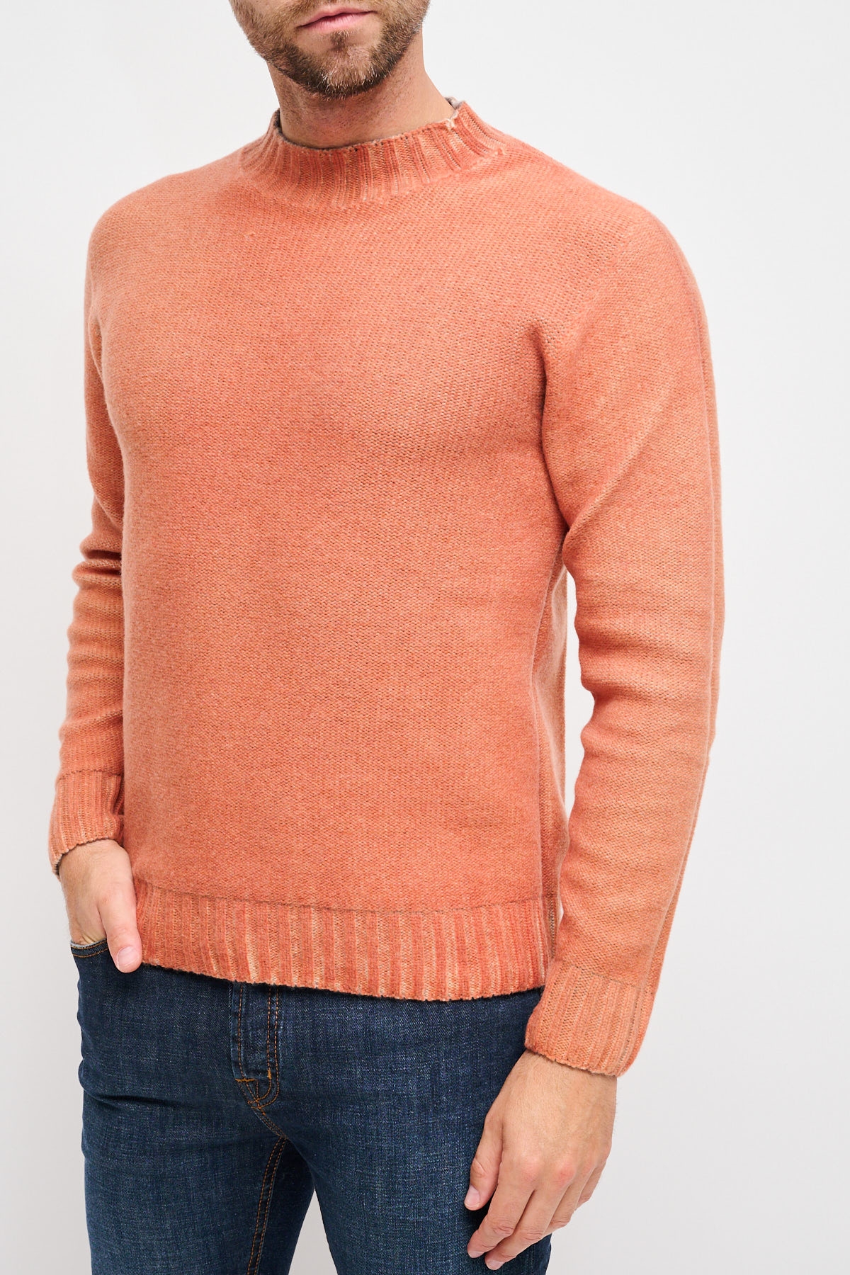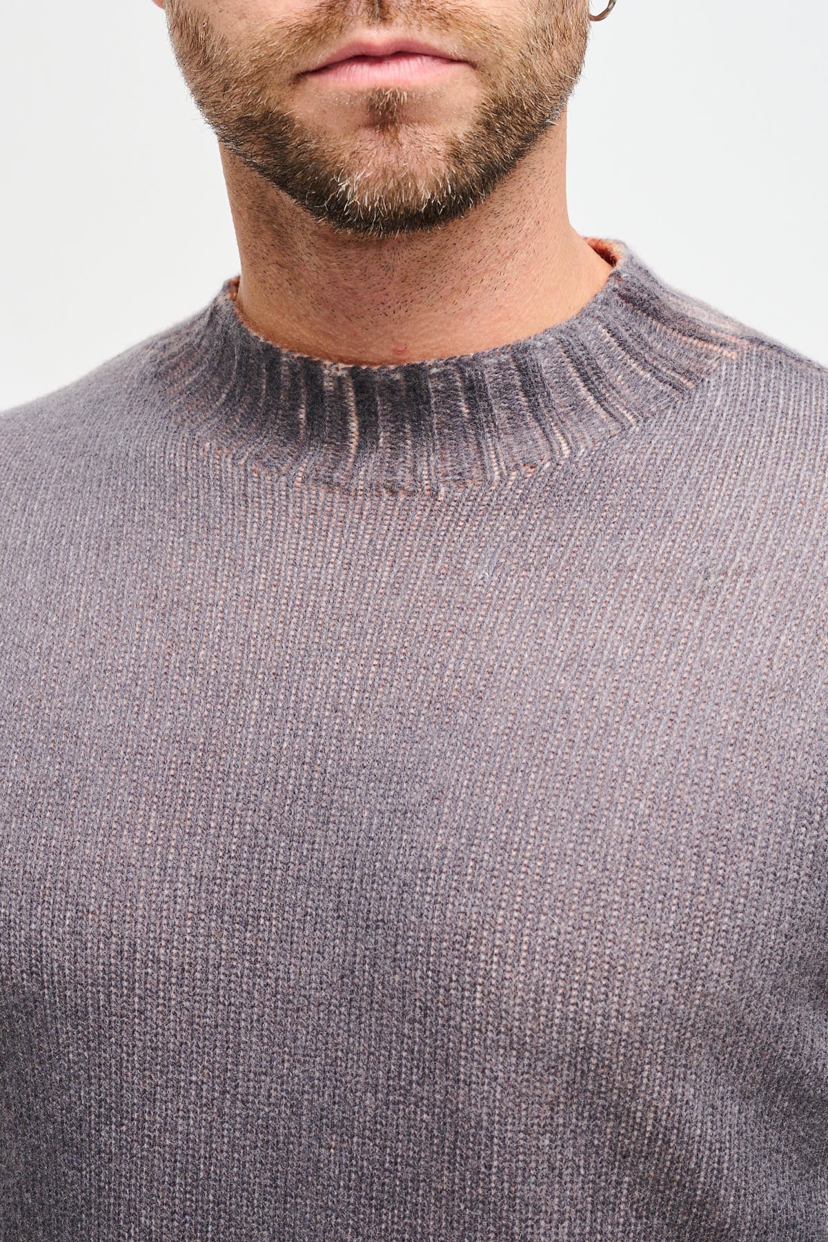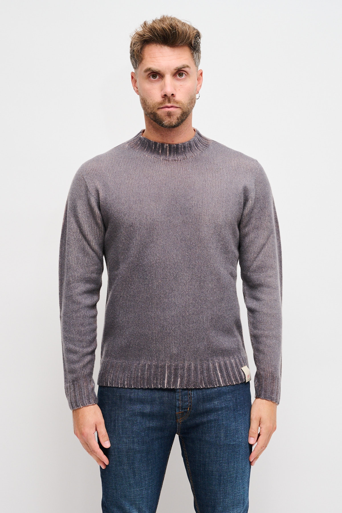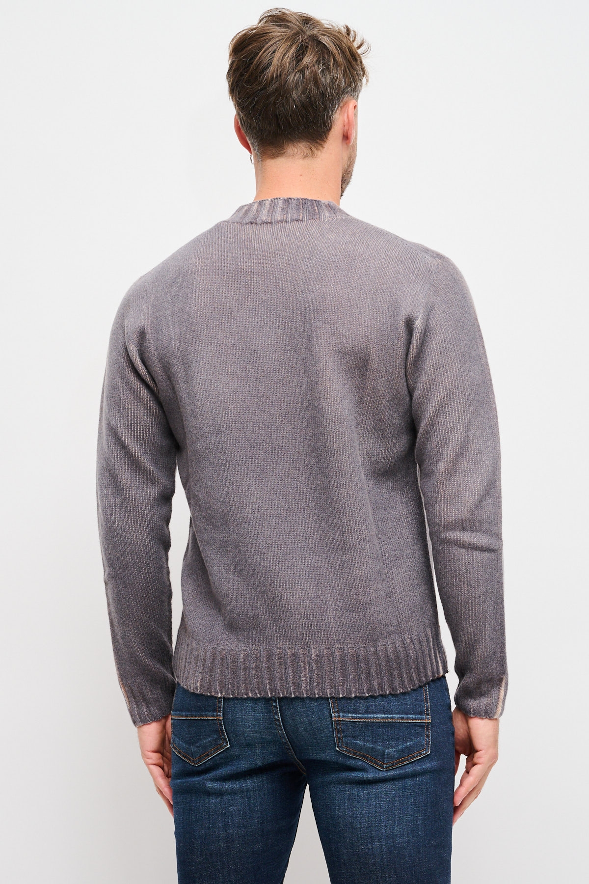 Maglia in lana sottile, dipinta a mano, tinta unita con girocollo tondo e dettaglio ricamato in contrasto applicato sui bordi a costine del capo. vestibilità regular.