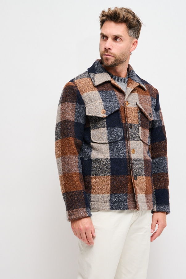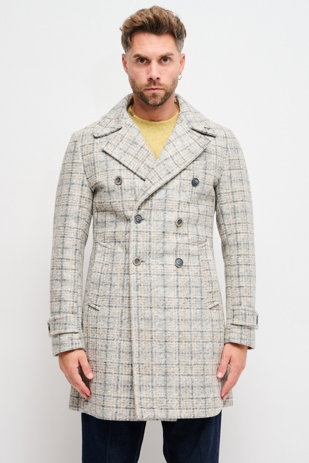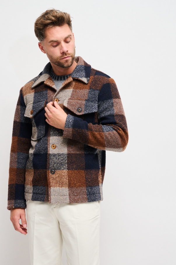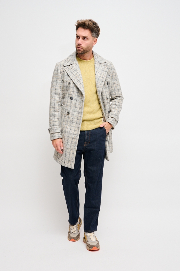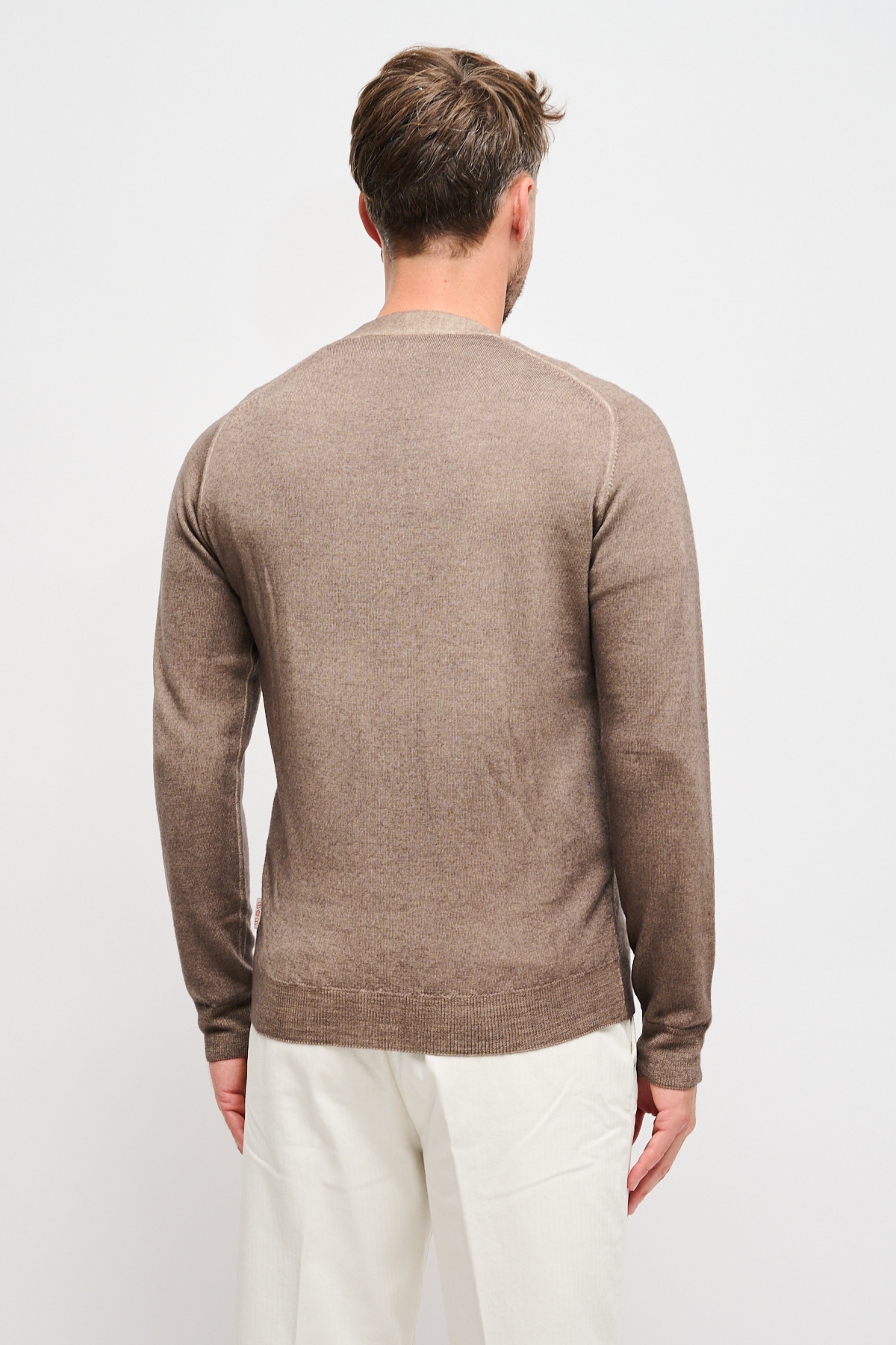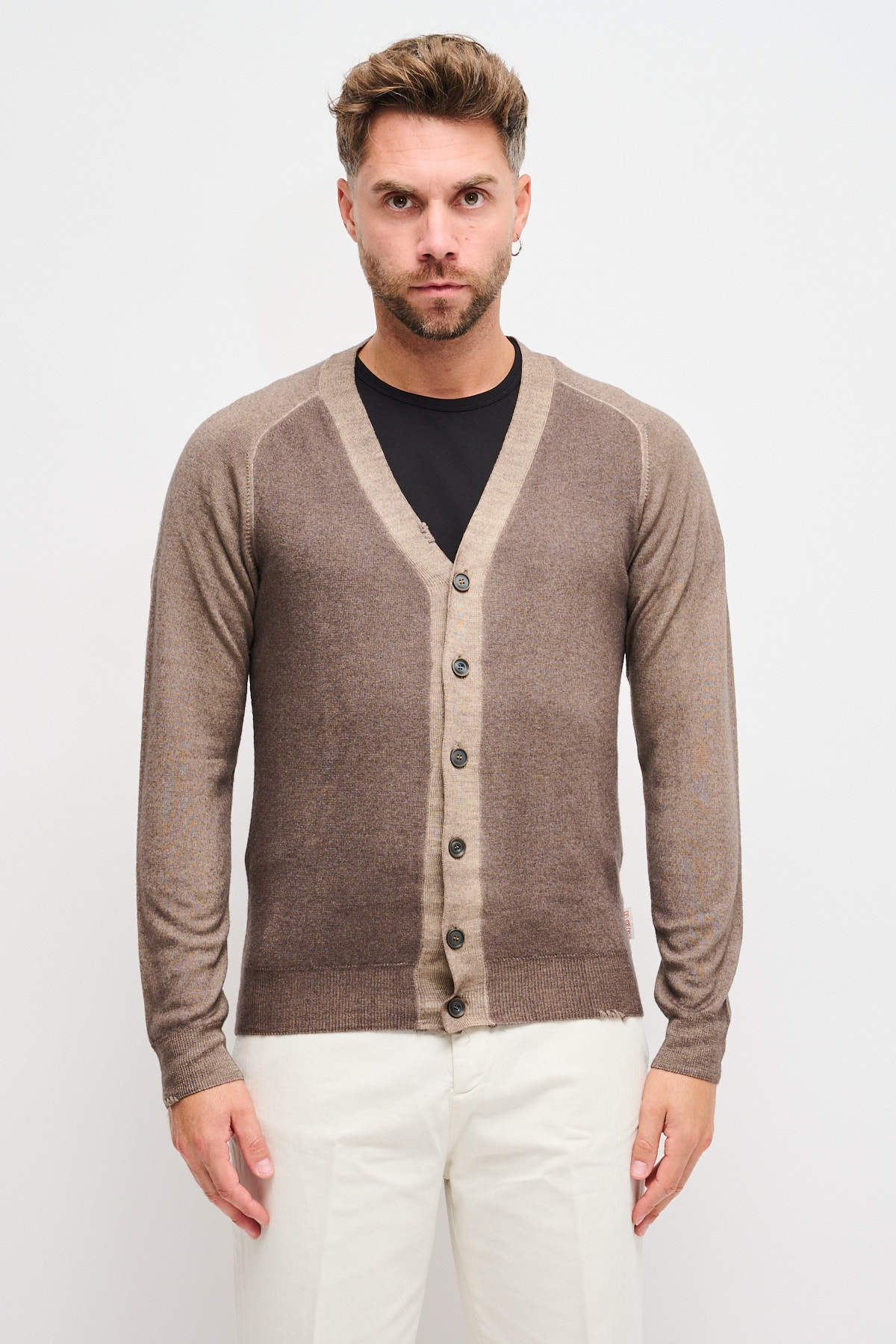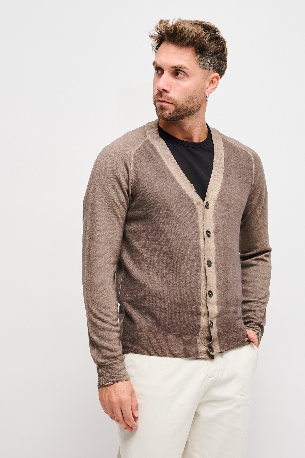 Cardigan doppio filato realizzato con lana tinta in capo.