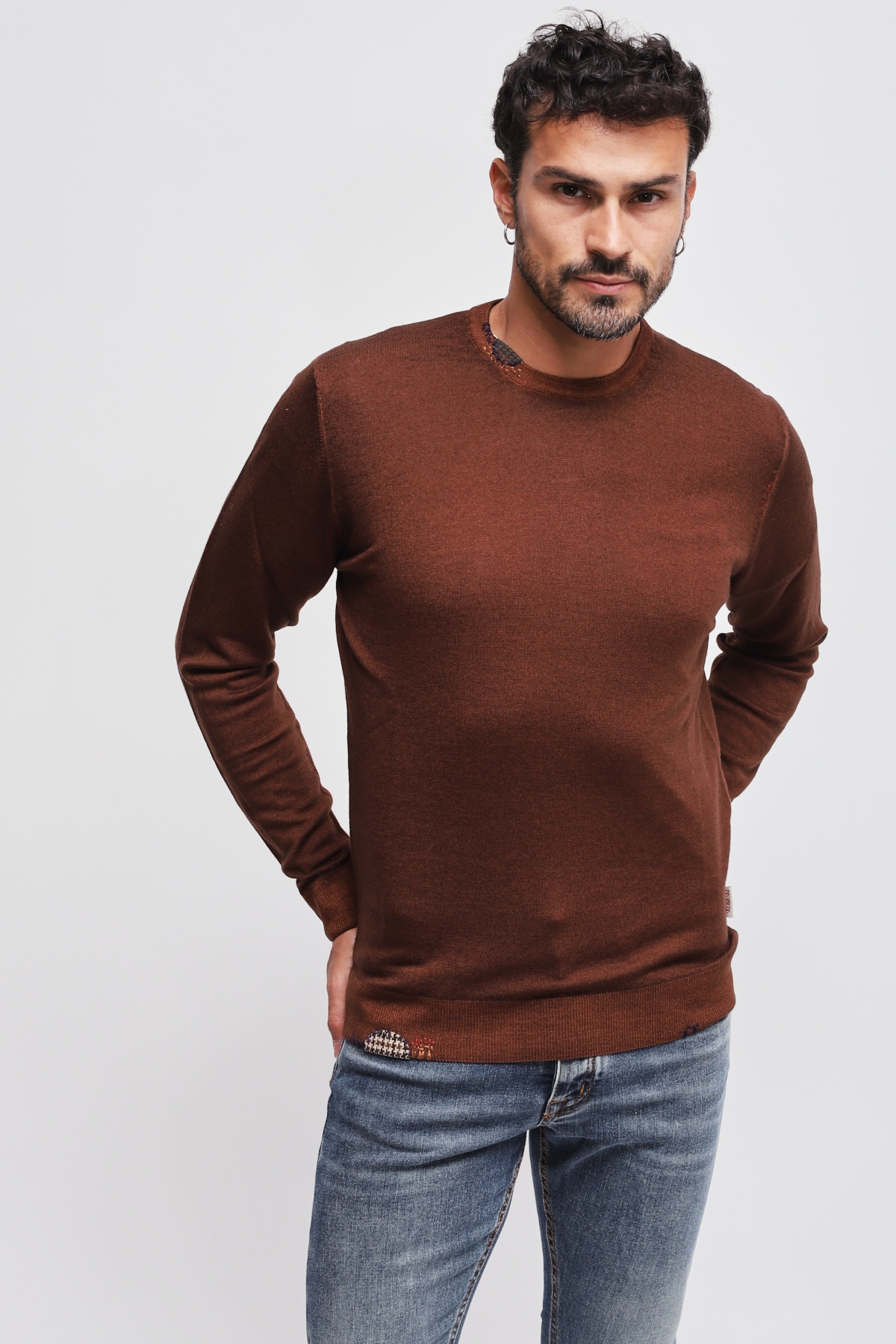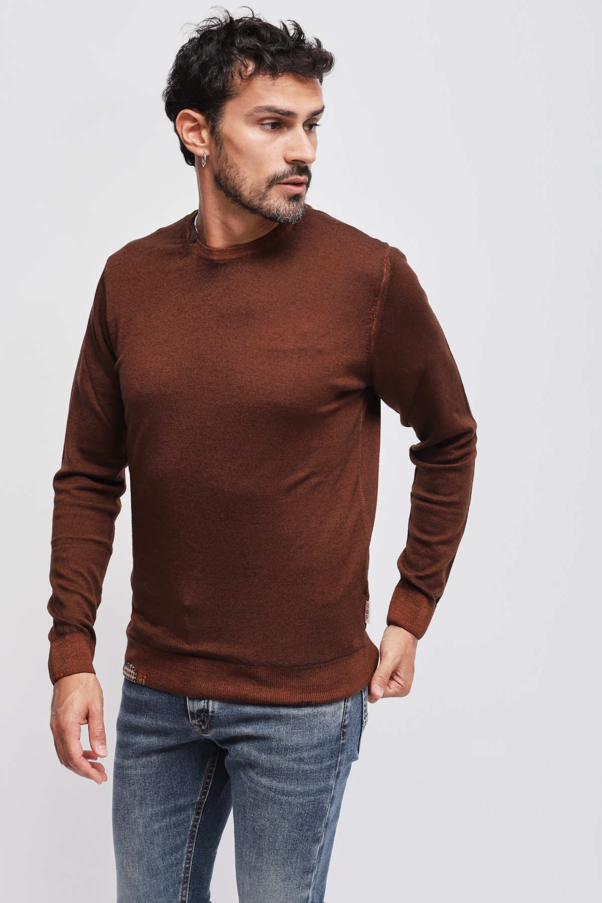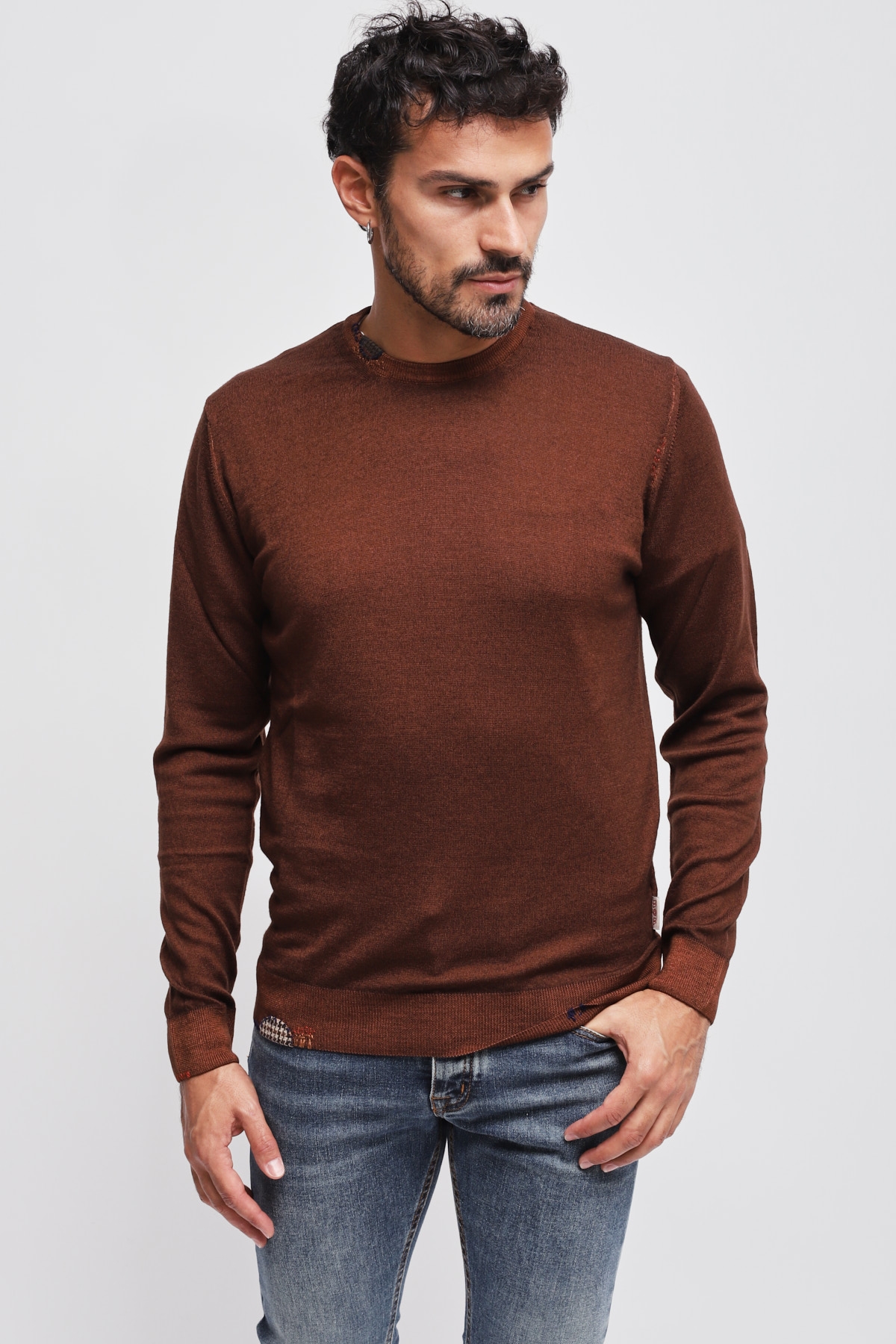Maglia in lana sottile, tinta unita con girocollo tondo e dettaglio ricamato in contrasto applicato sui bordi a costine del capo. vestibilità regular.