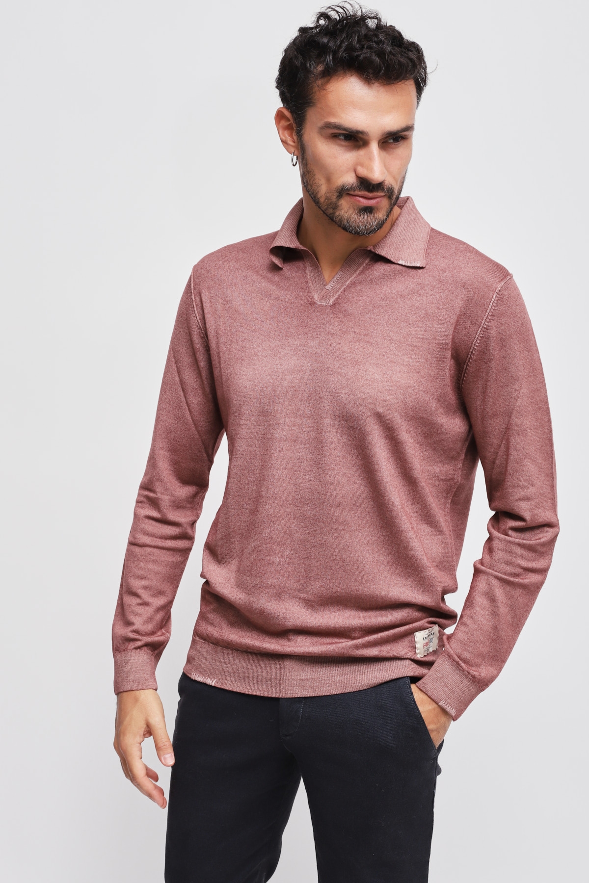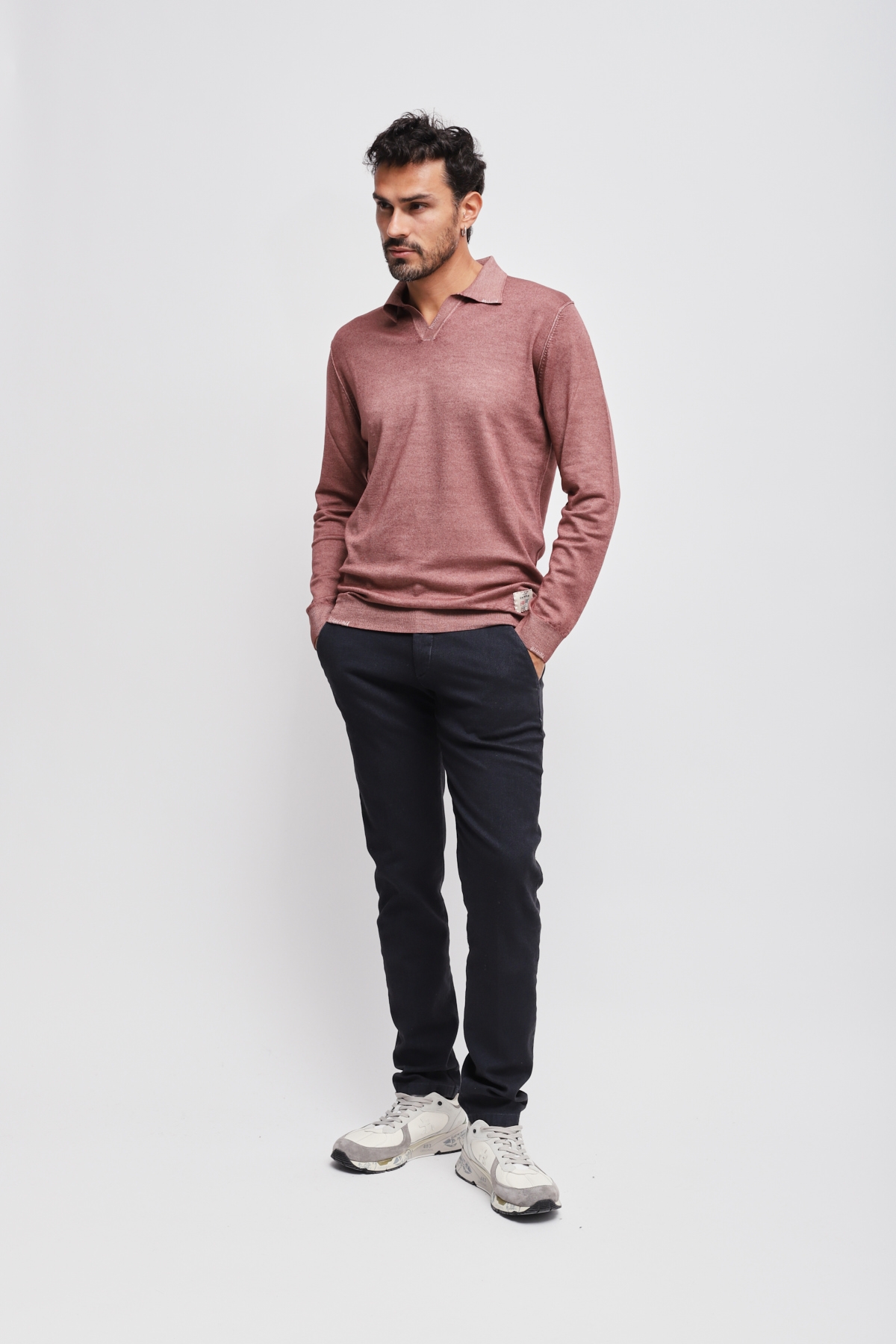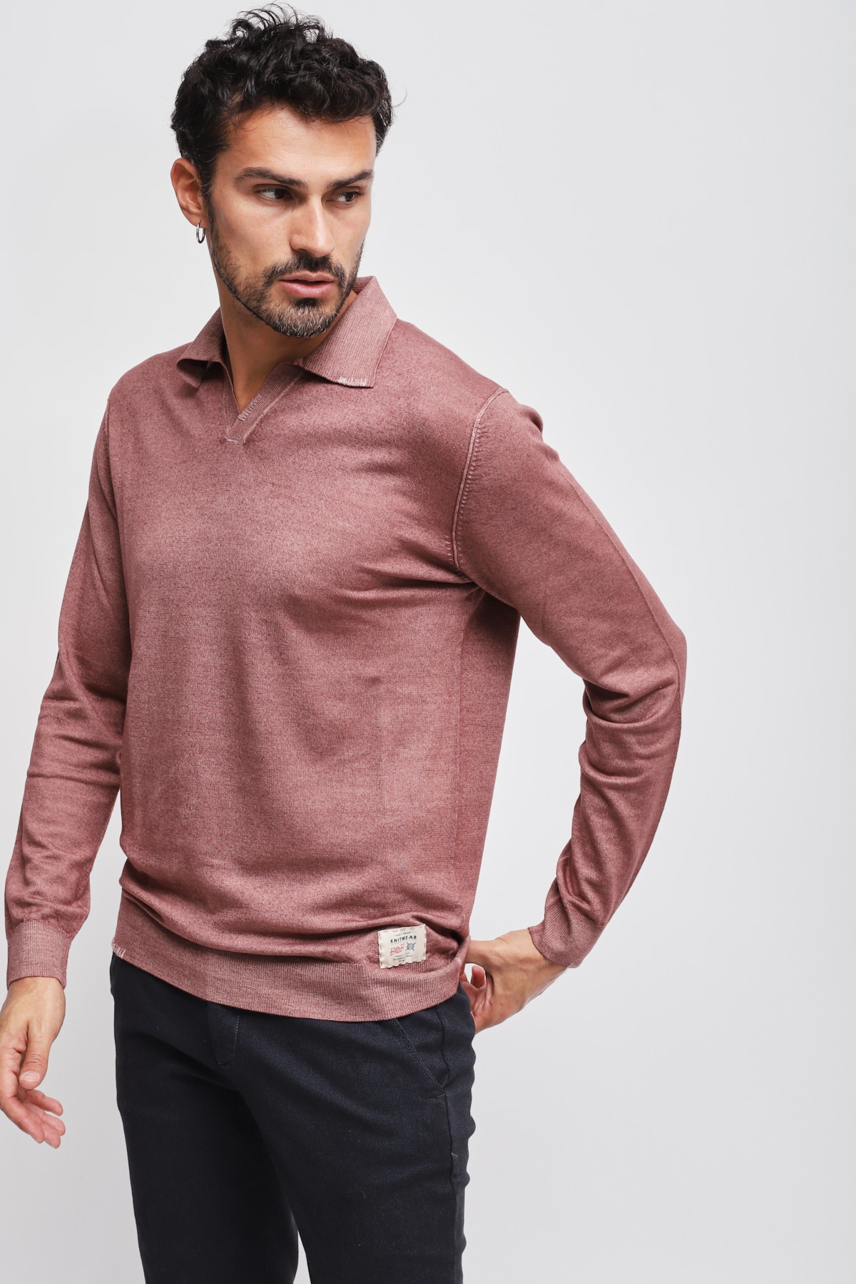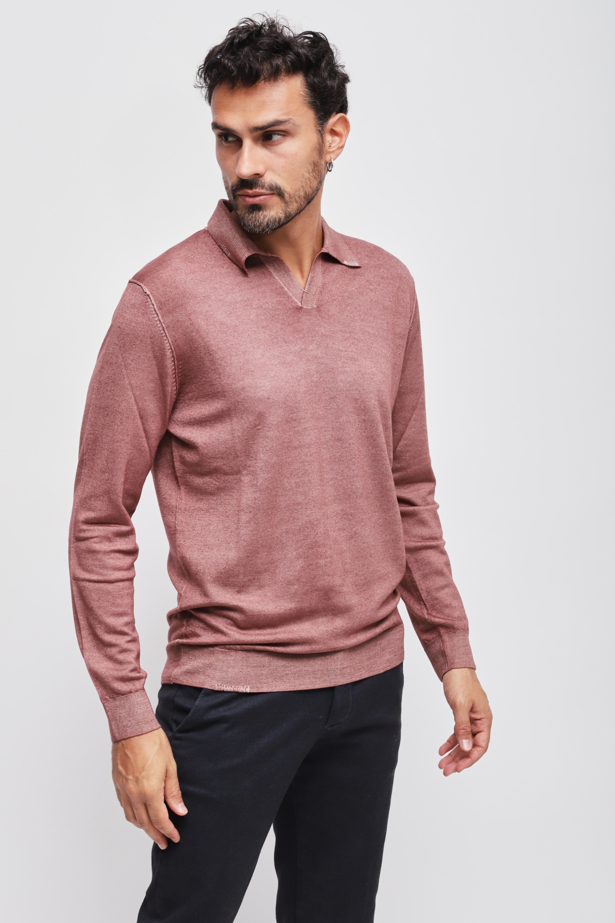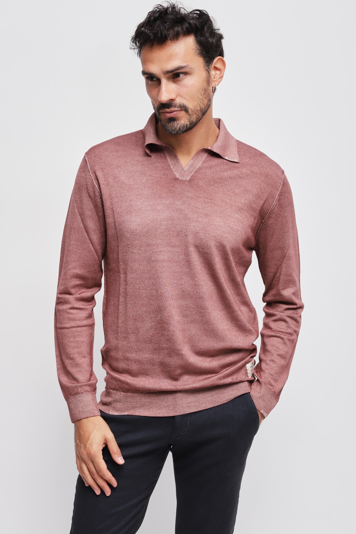 Polo a maniche lunghe, senza bottoni, in pura lana vergine merino.