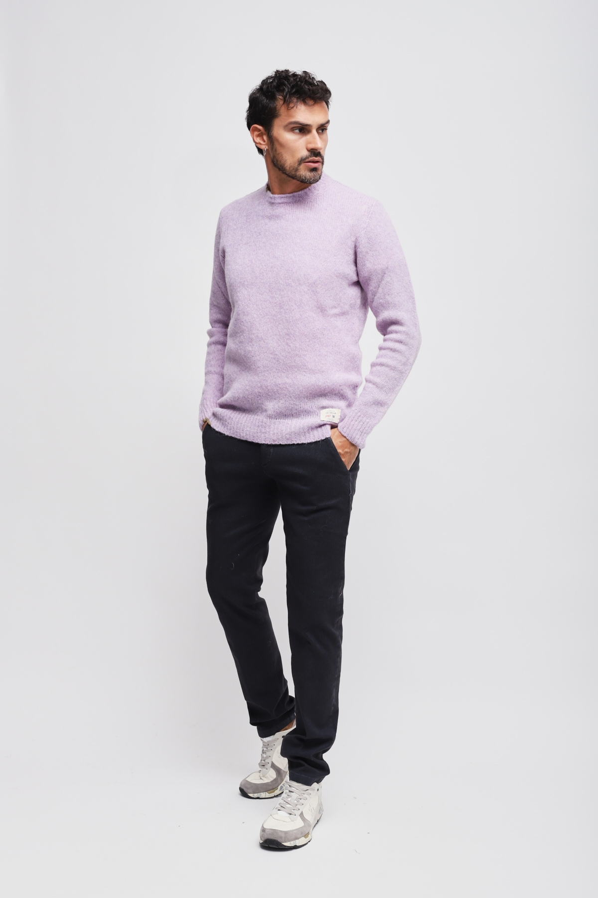 Maglia girocollo da uomo realizzata in morbidissima lana. Il collo e i polsini sono a coste, così come il fondo. Sono presenti piccoli dettagli ricamati a mano che contraddistinguono lo stile originale dei capi BoB Company.
