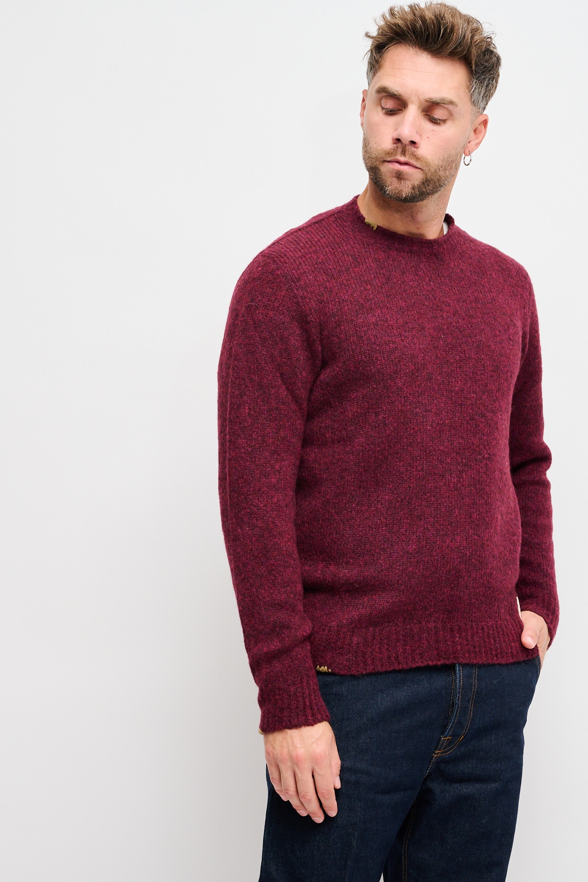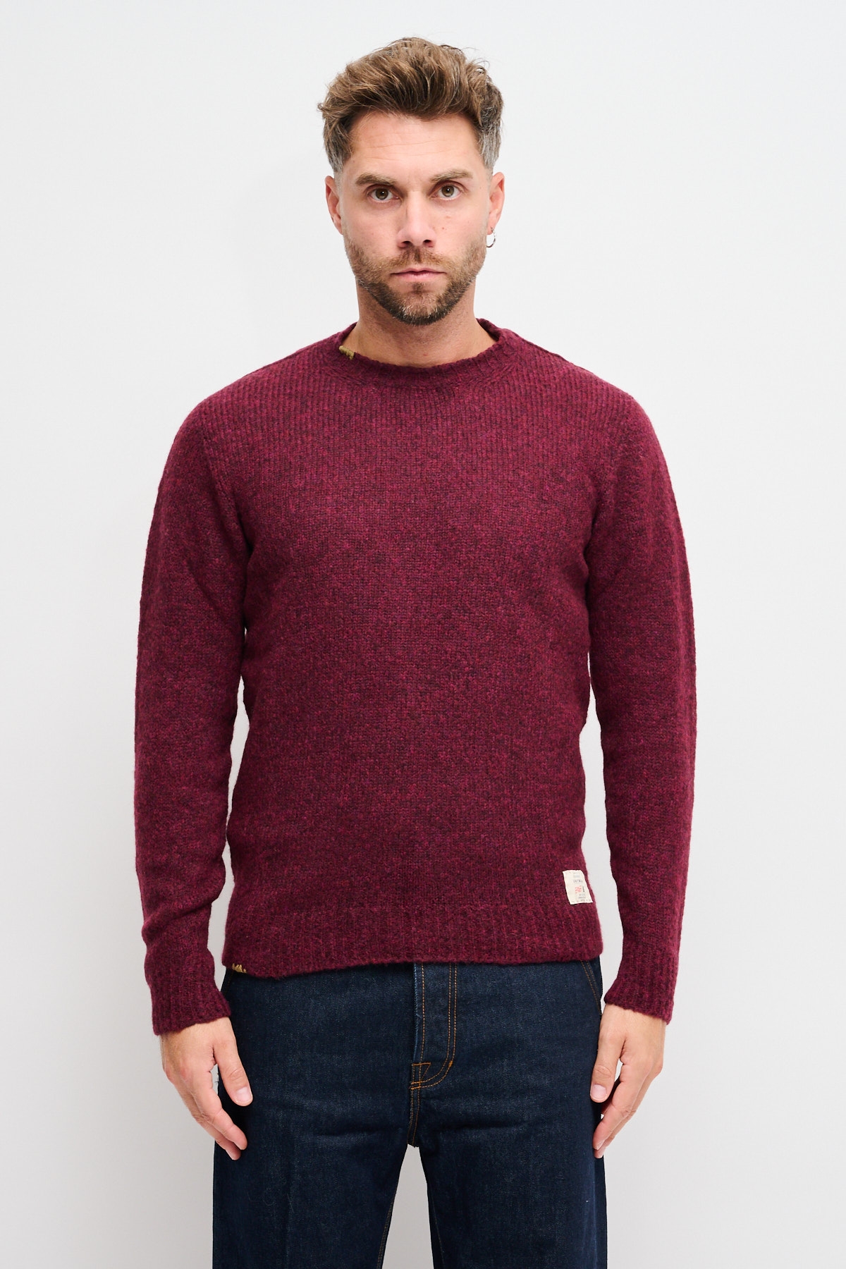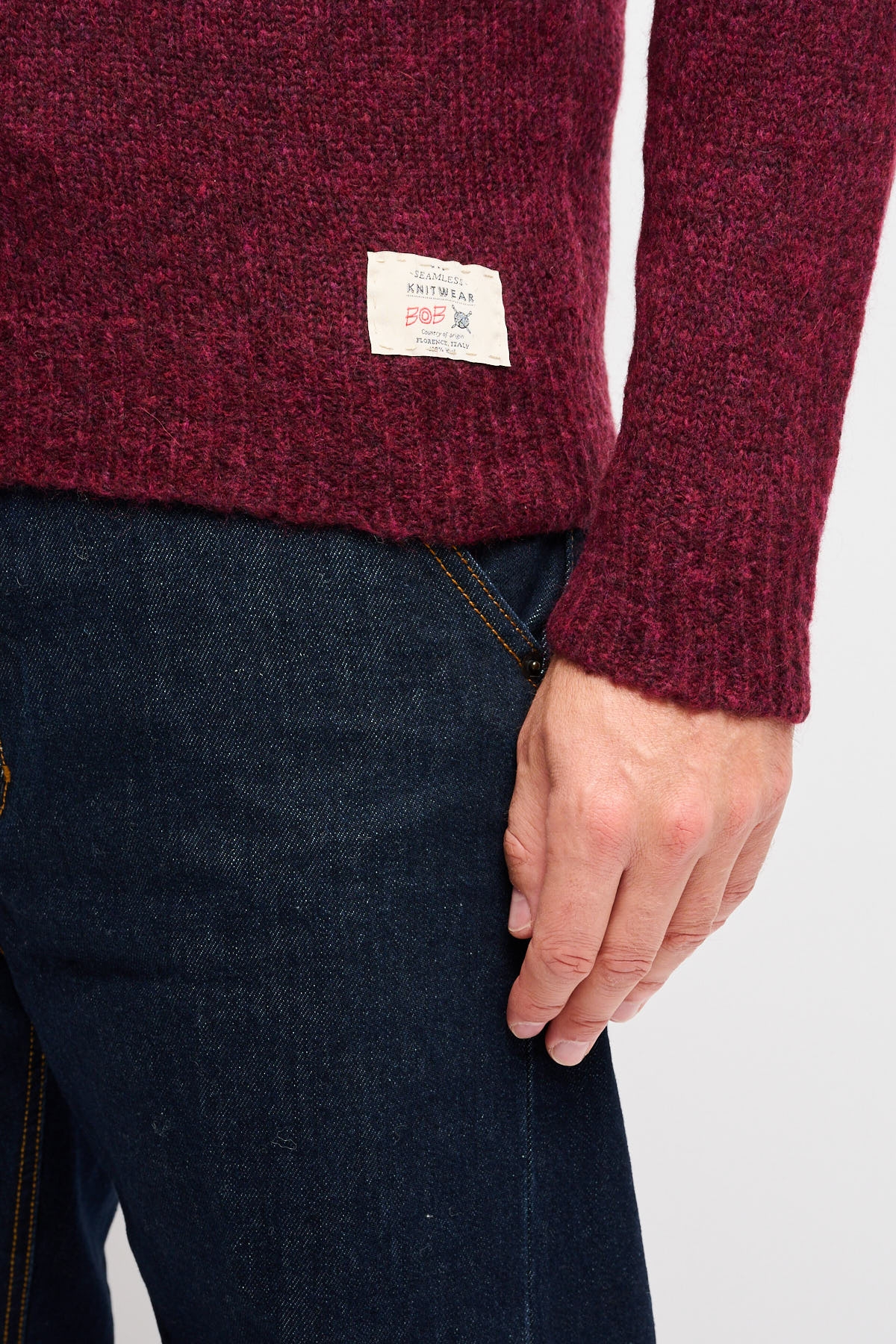 Maglia girocollo da uomo realizzata in morbidissima lana. Il collo e i polsini sono a coste, così come il fondo. Sono presenti piccoli dettagli ricamati a mano che contraddistinguono lo stile originale dei capi BoB Company.