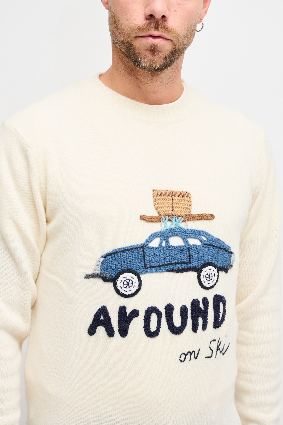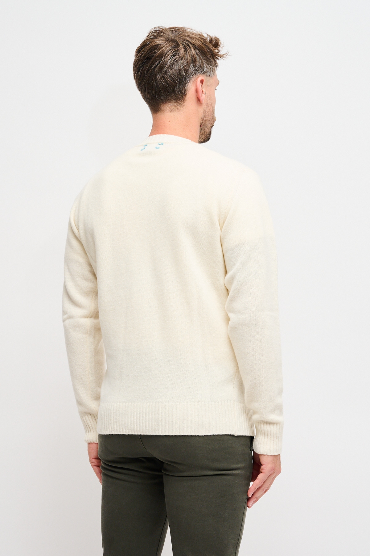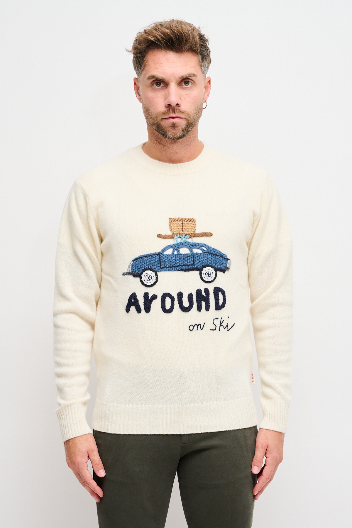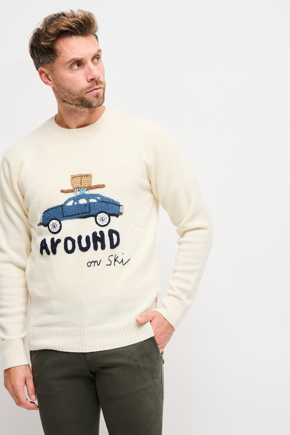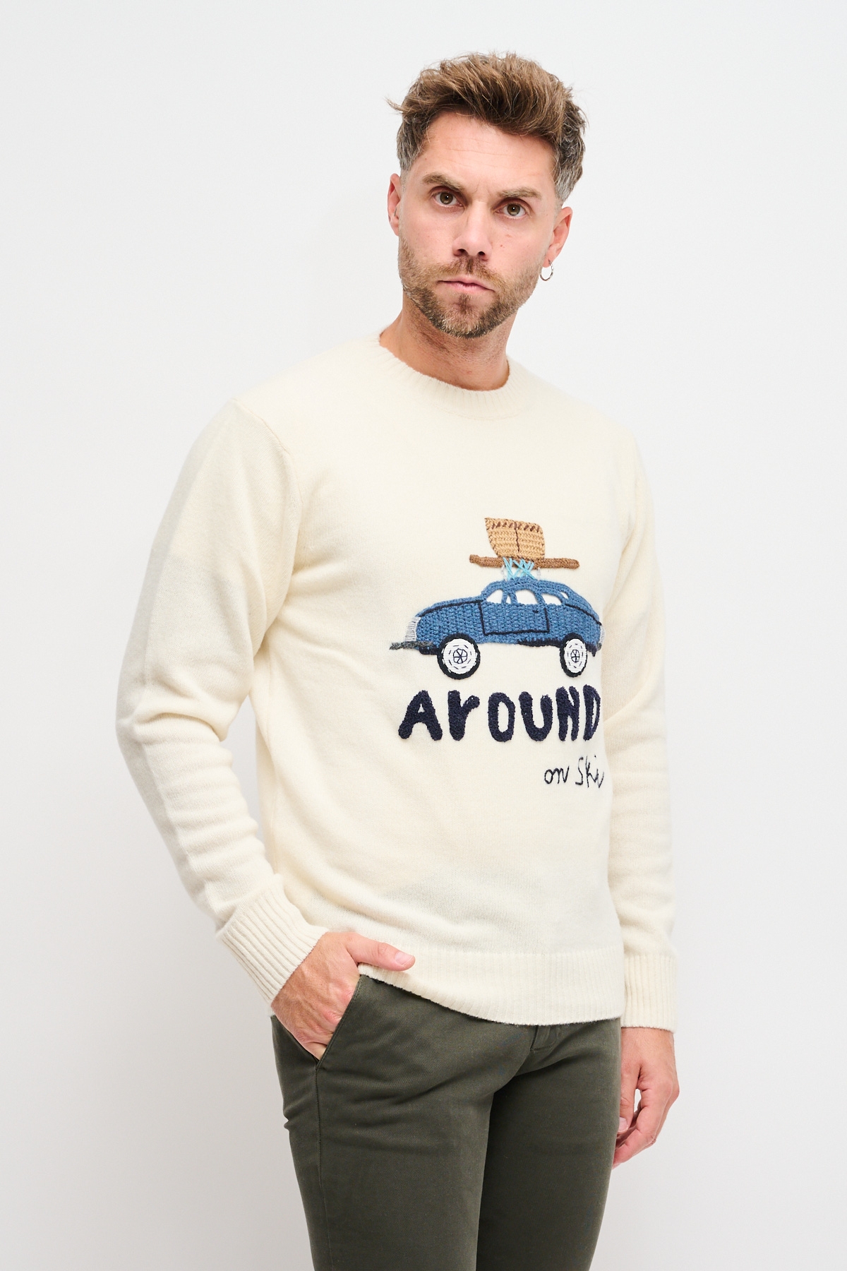 Maglia girocollo con disegno in rilievo sul davanti, elegante e versatile per look casual-chic.