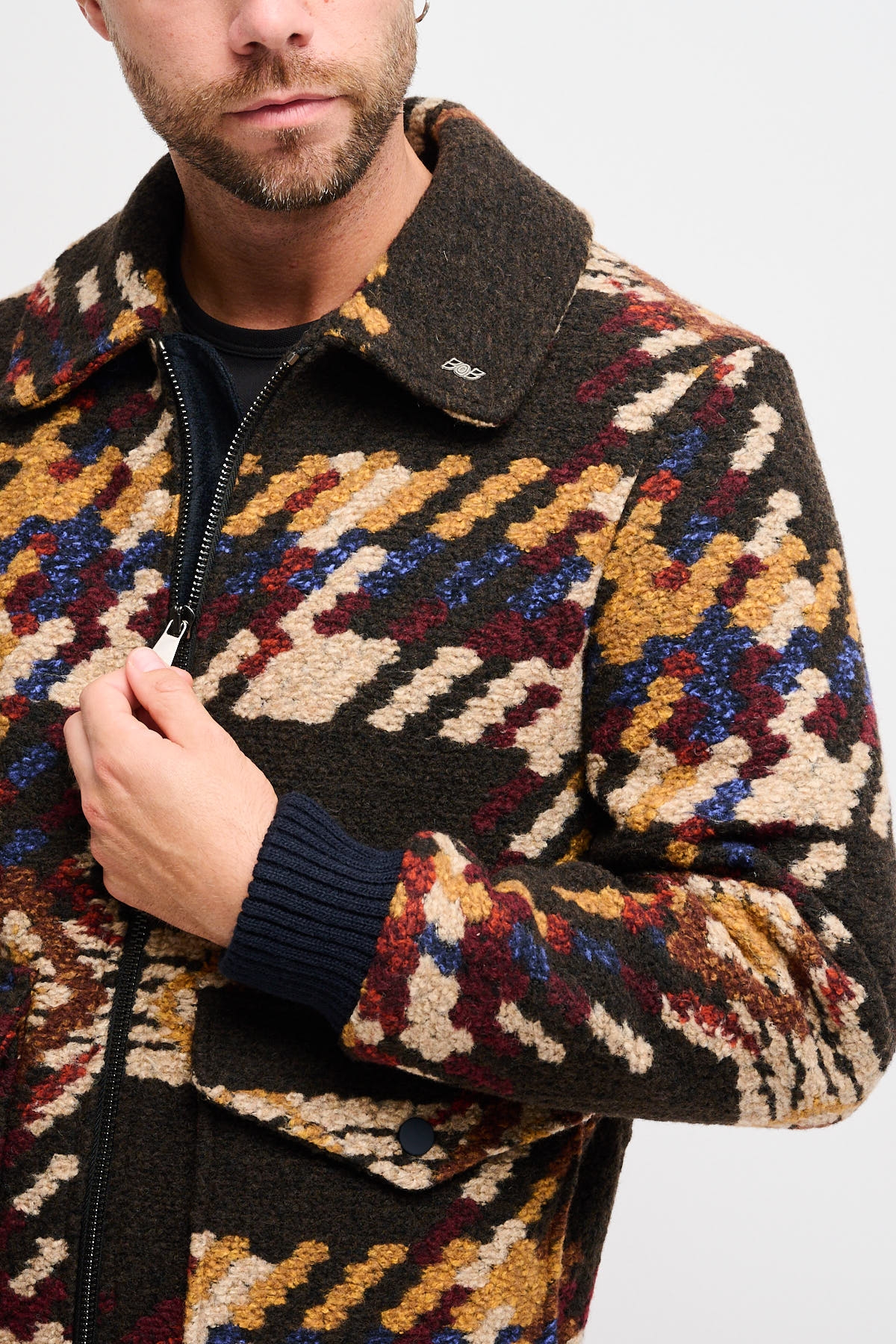 Questo blouson presenta un aspetto vintage, con un motivo nativo americano. Questo capospalla presenta un design unico che offre un'interpretazione moderna di motivi tradizionali, con