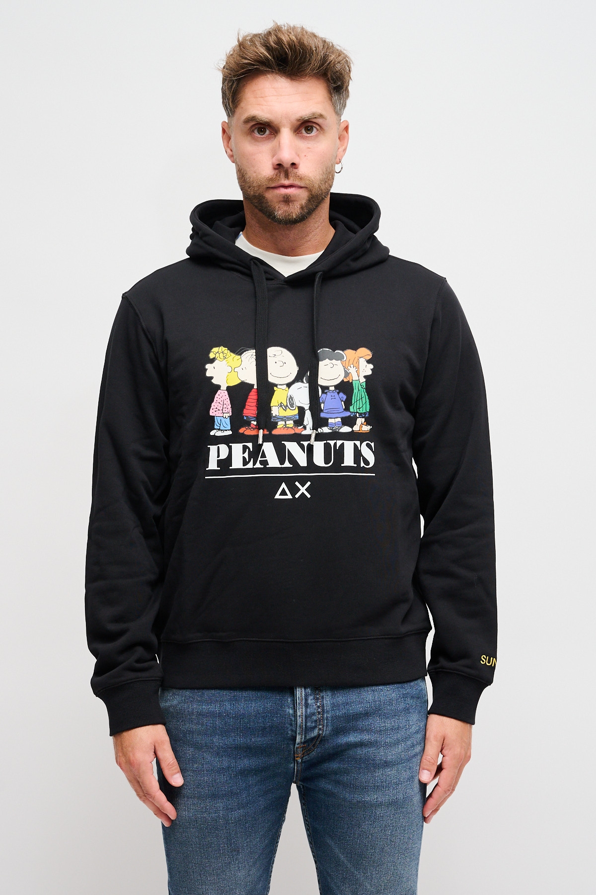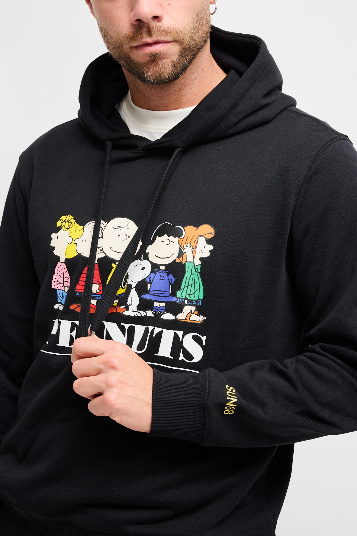 Felpa uomo con i Peanuts. Calda e stupenda felpa con la stampa di tutti i personaggi dei Peanuts prodotta in esclusiva da SUN68.