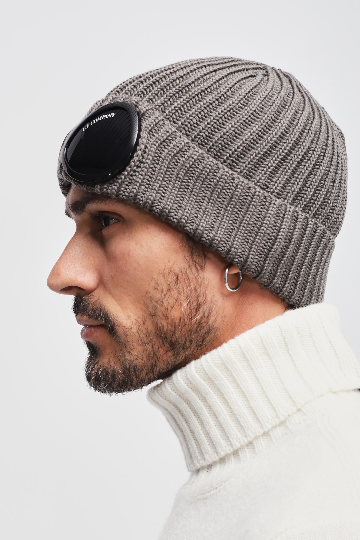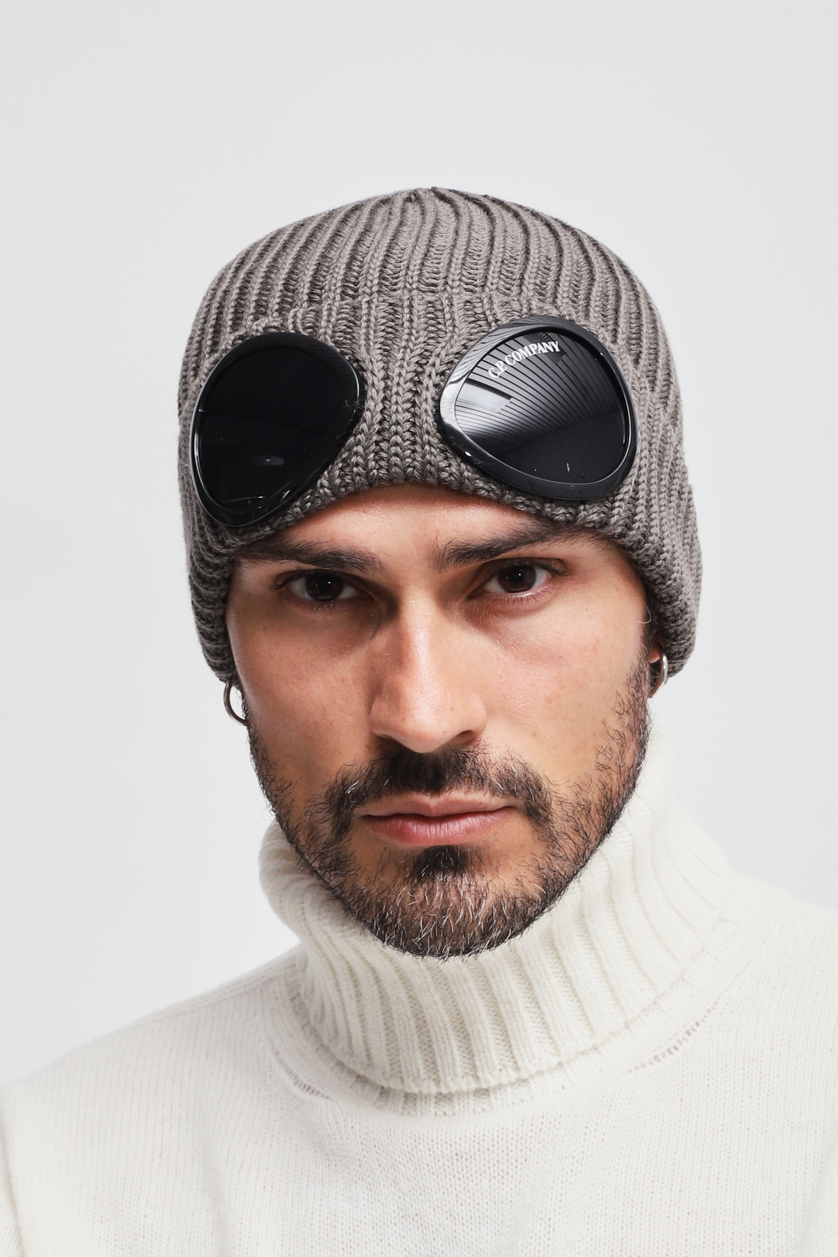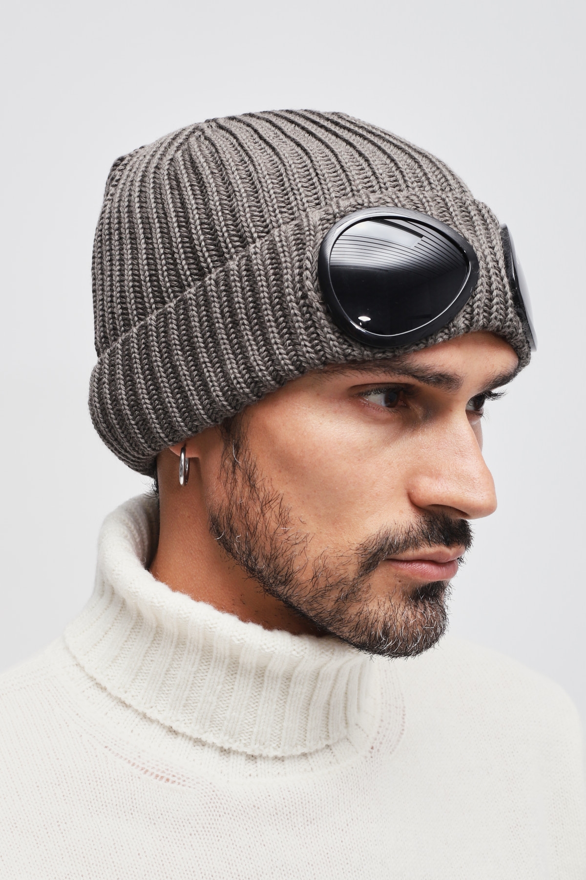 La Extra Fine Merino Wool Goggle Beanie è una cuffia di C.P. Company con lavorazione in maglia a costine spesse e Goggle sul risvolto.