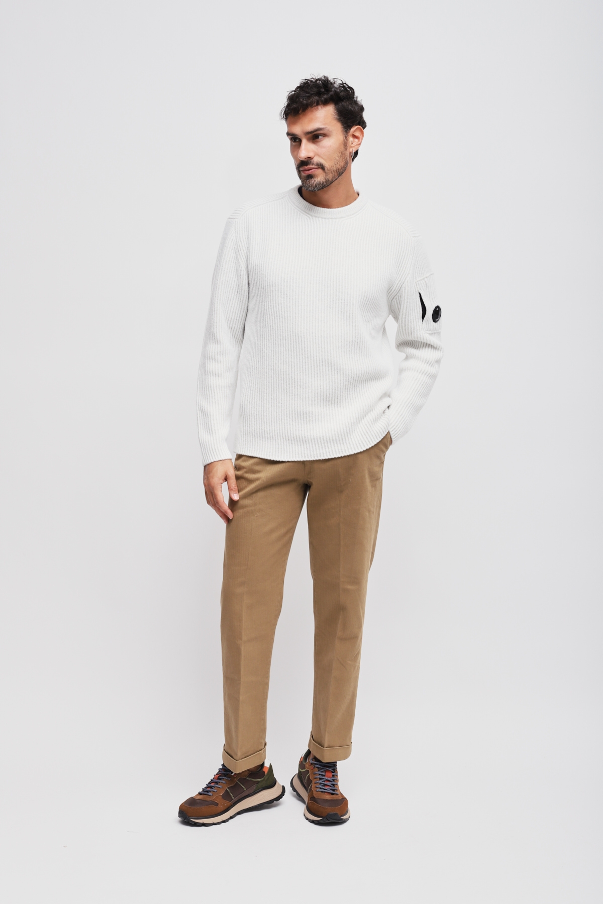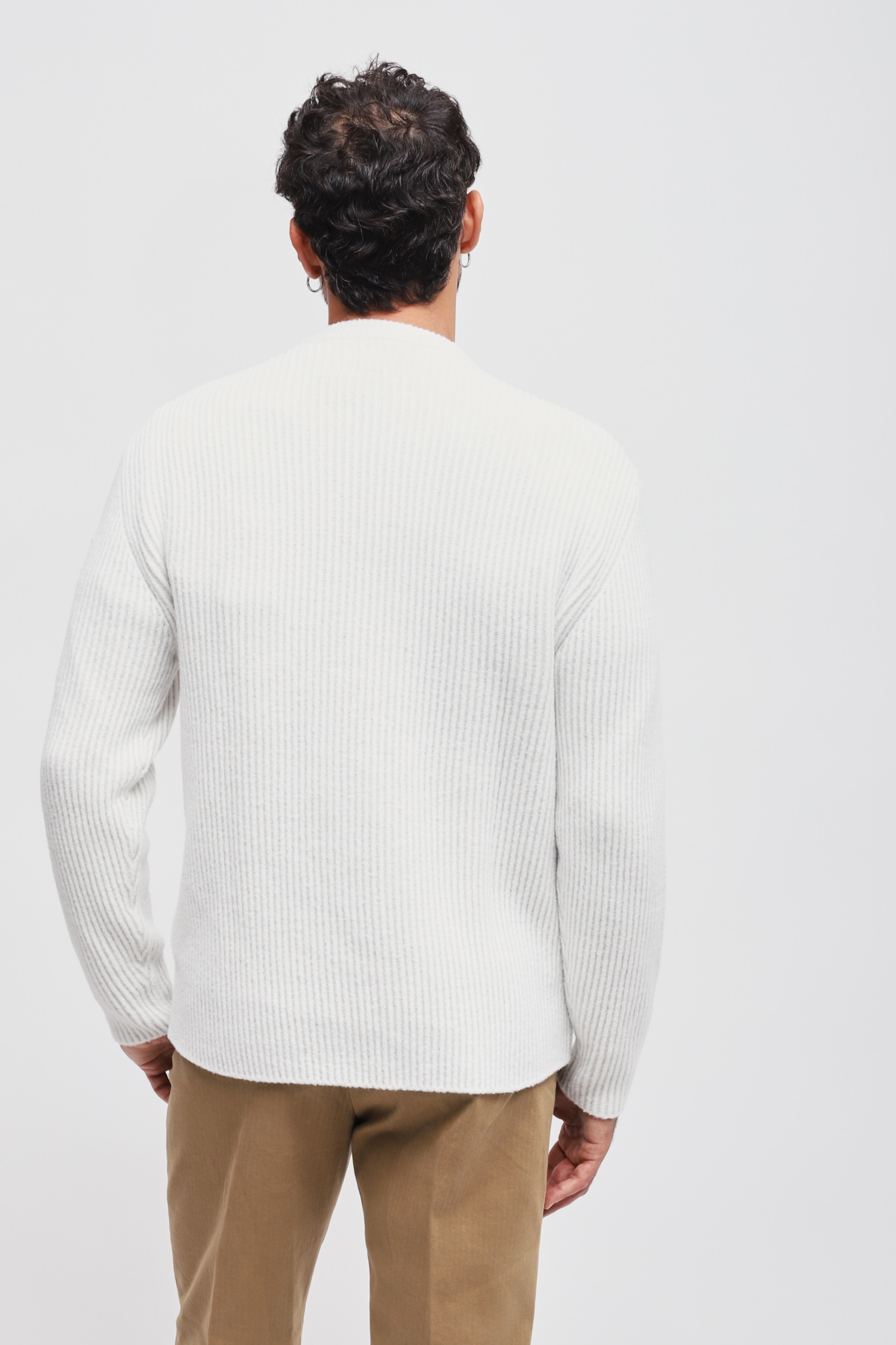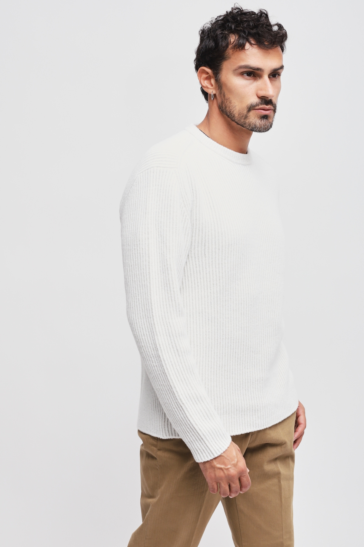 Maglione girocollo realizzato in lambswool con lavorazione Vanisé. Ciniglia di poliestere a contrasto. Finezza 7.