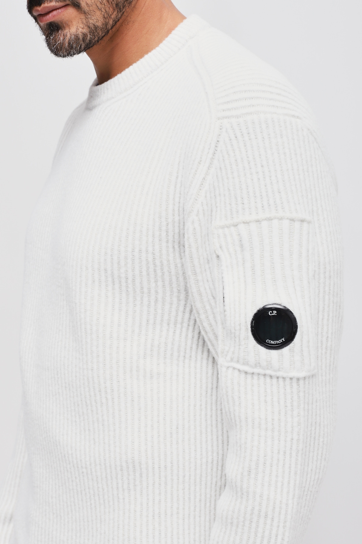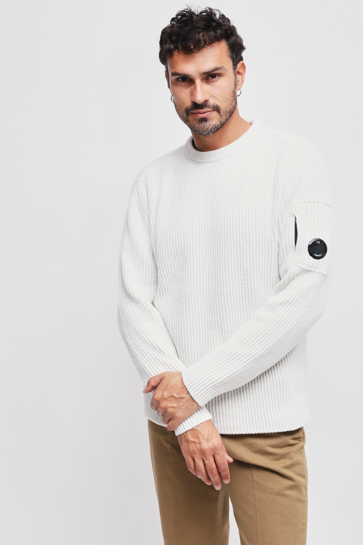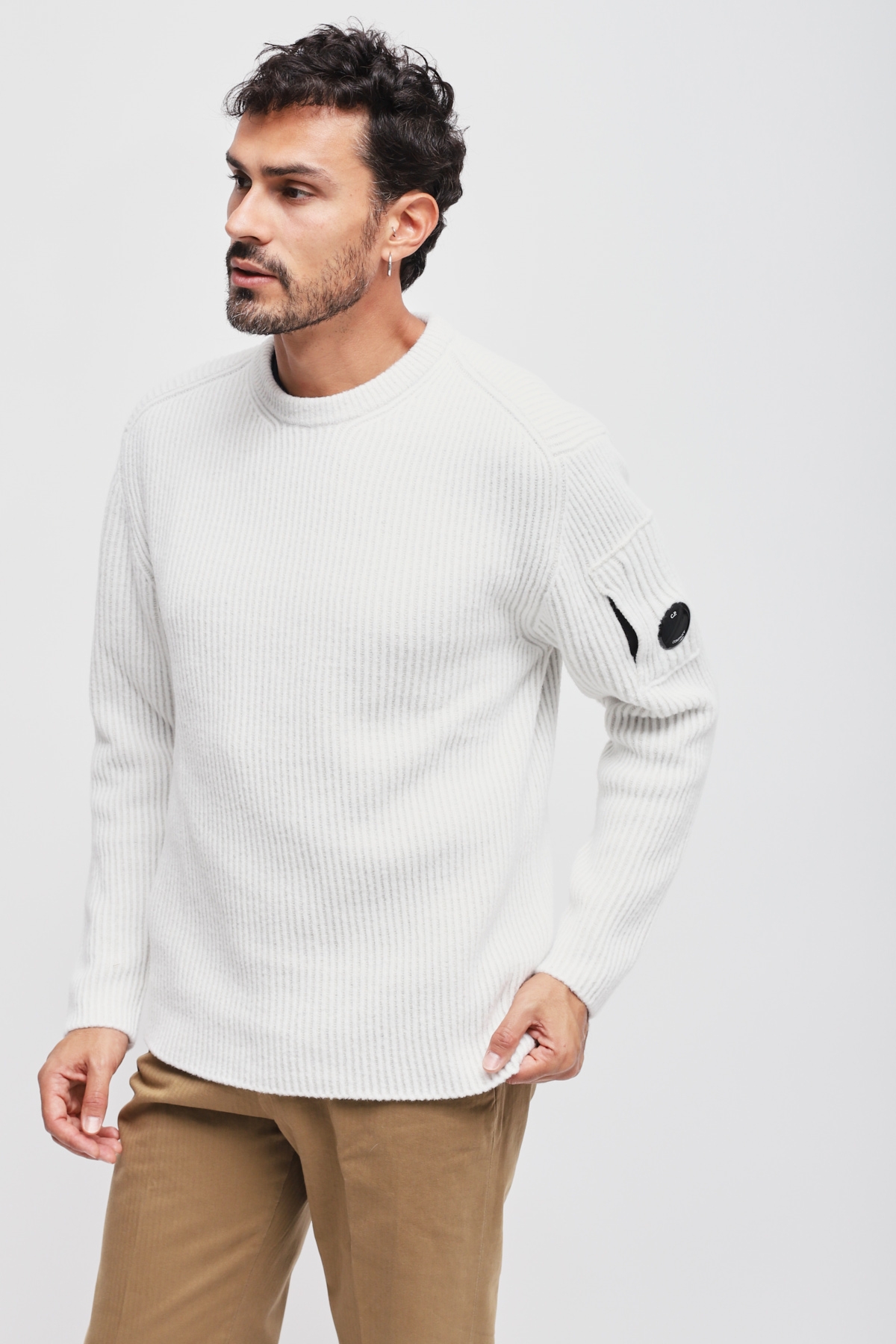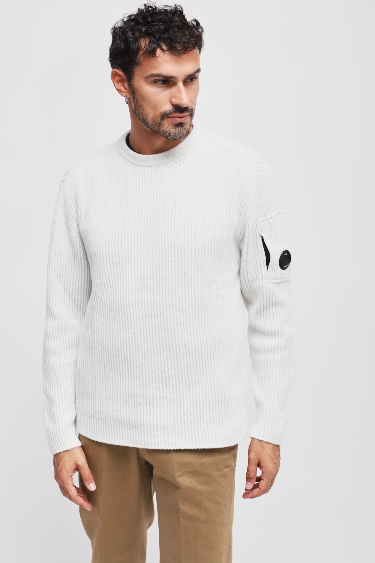 Maglione girocollo realizzato in lambswool con lavorazione Vanisé. Ciniglia di poliestere a contrasto. Finezza 7.