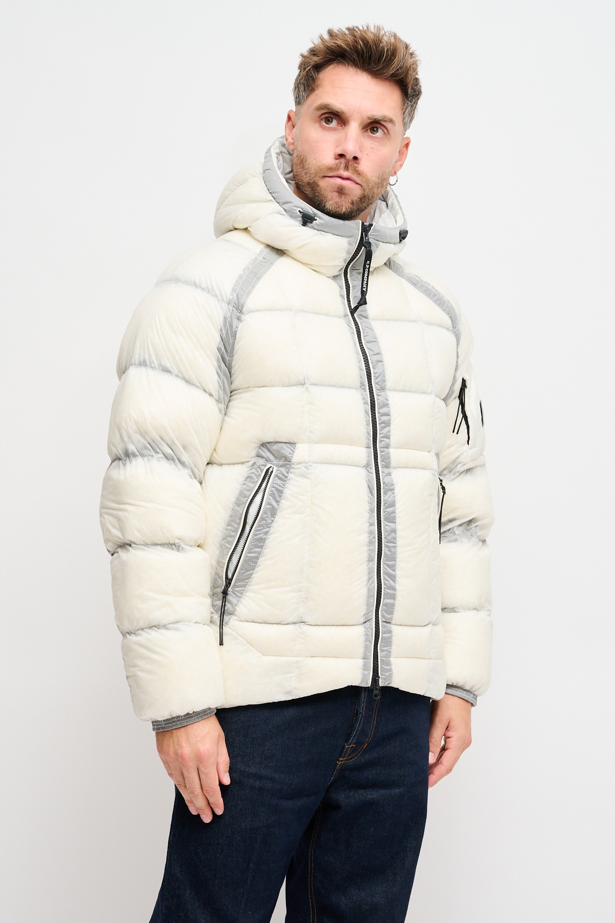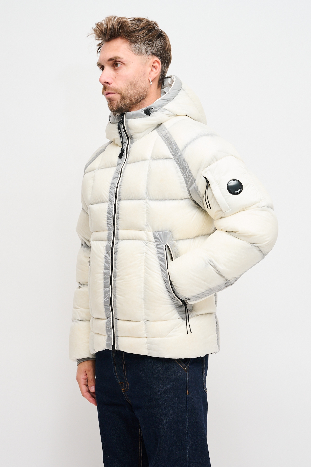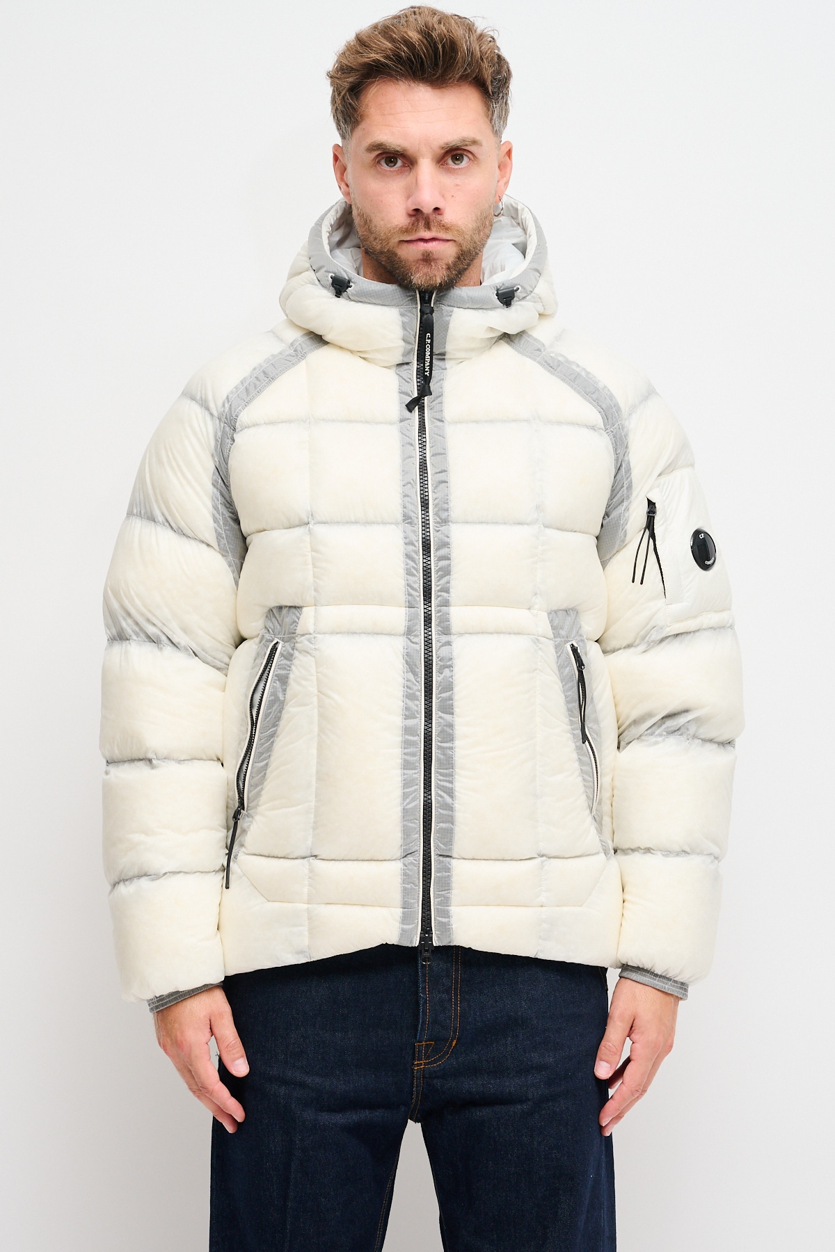 Piumino con cappuccio realizzato in D.D. Shell, un nylon micro-ripstop opaco 7 denari. La leggerezza e la trasparenza del materiale mette in risalto la costruzione, mentre il processo di iniezione a piuma diretta assicura un isolamento ideale. Il modello presenta cappuccio regolabile, chiusura full zip a doppio cursore, tasche laterali con zip, cuciture a contrasto, polsini elasticizzati, fondo regolabile con coulisse e l’iconica Lente di C.P. Company. Regular fit.